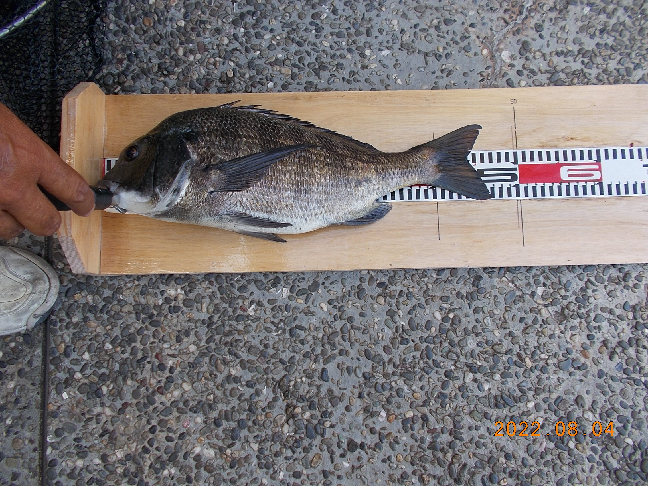 雷雲が去り釣りを再開してからも釣果は劇的に伸びる訳ではなく、ポツリポツリといった調子で、少ないながらも釣れています。他に、チヌ 36cm がイソメのブッコミ釣りで上がっています。