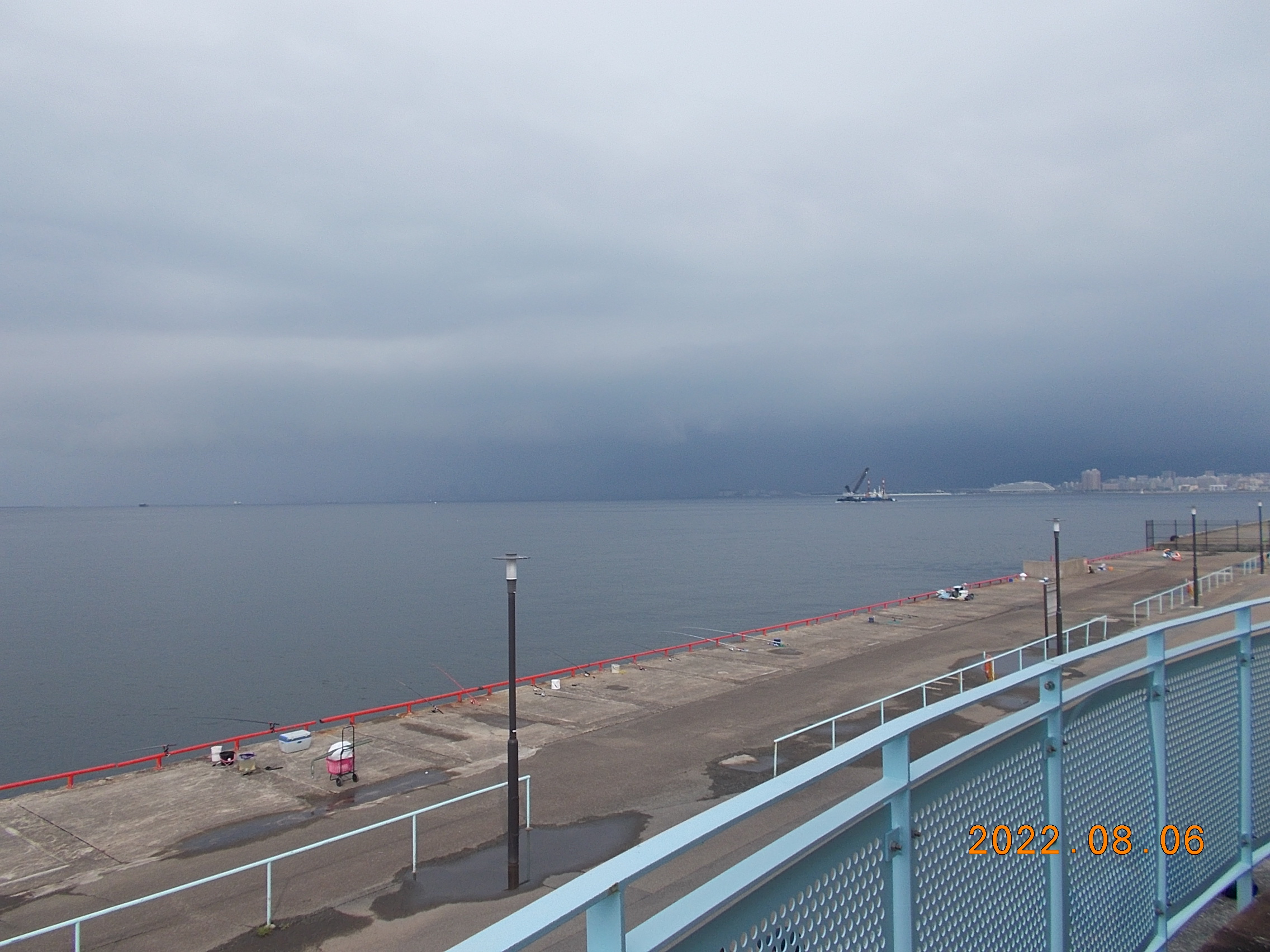 ここ最近好調だったサビキ釣りが一休み状態に入ったかのようなスタートです。そこへ雷雲の接近と、トホホな午前中となっています。雷は大変危険なため、一時釣りを中断して避難して頂いている状態です。
