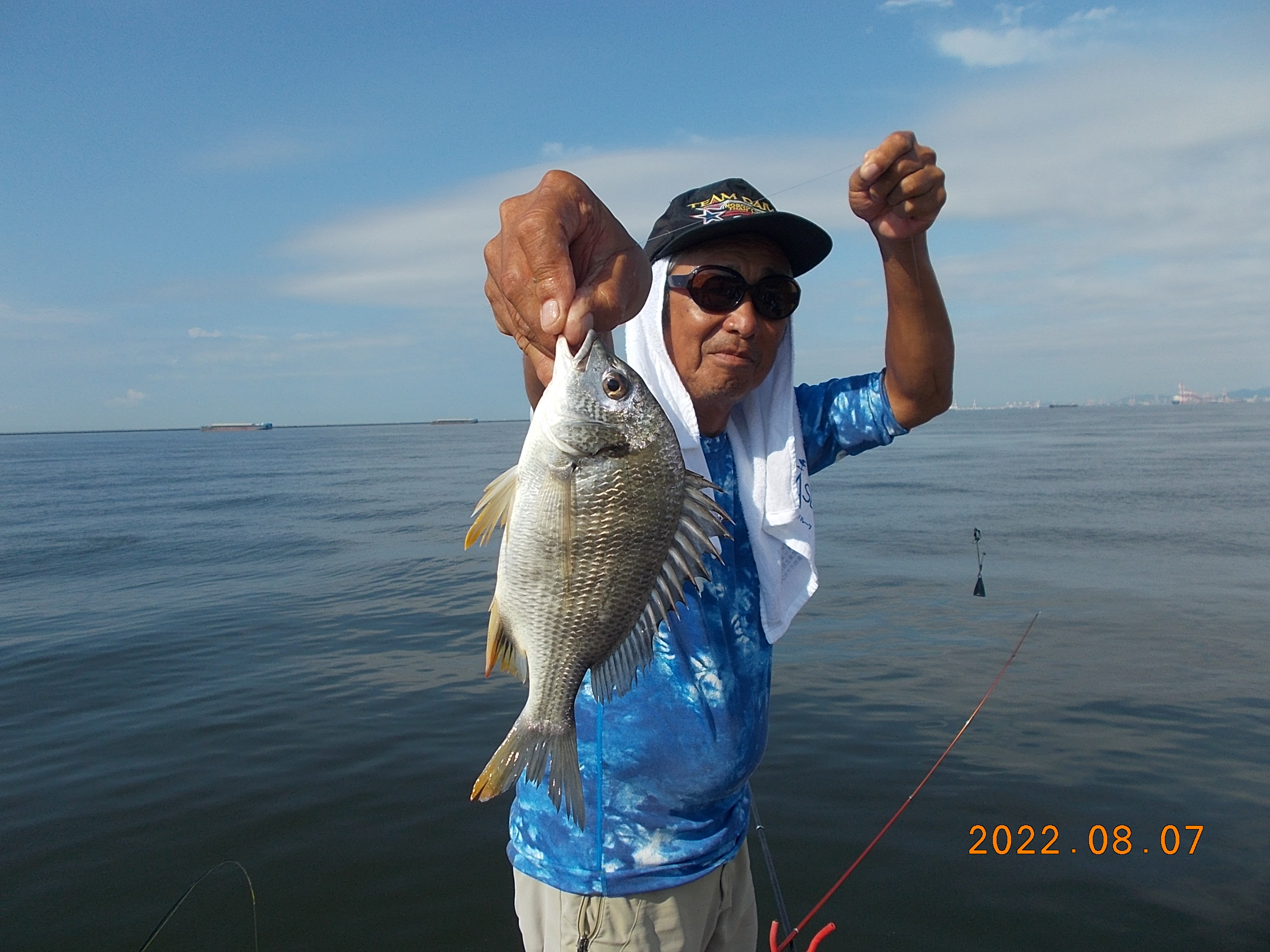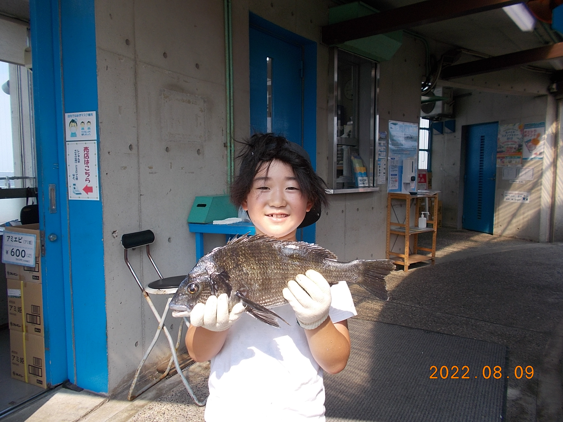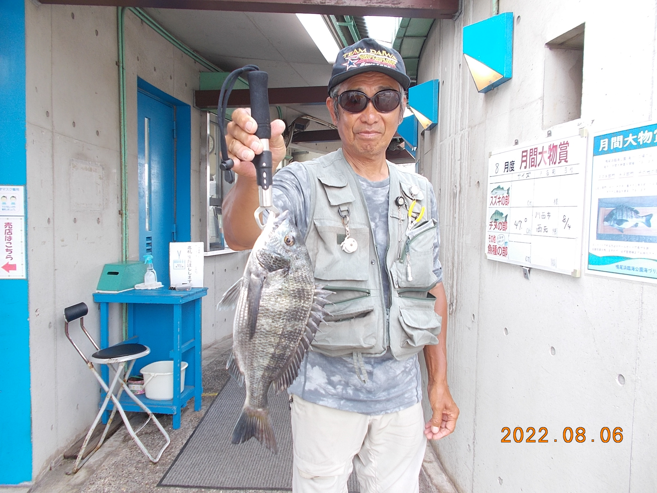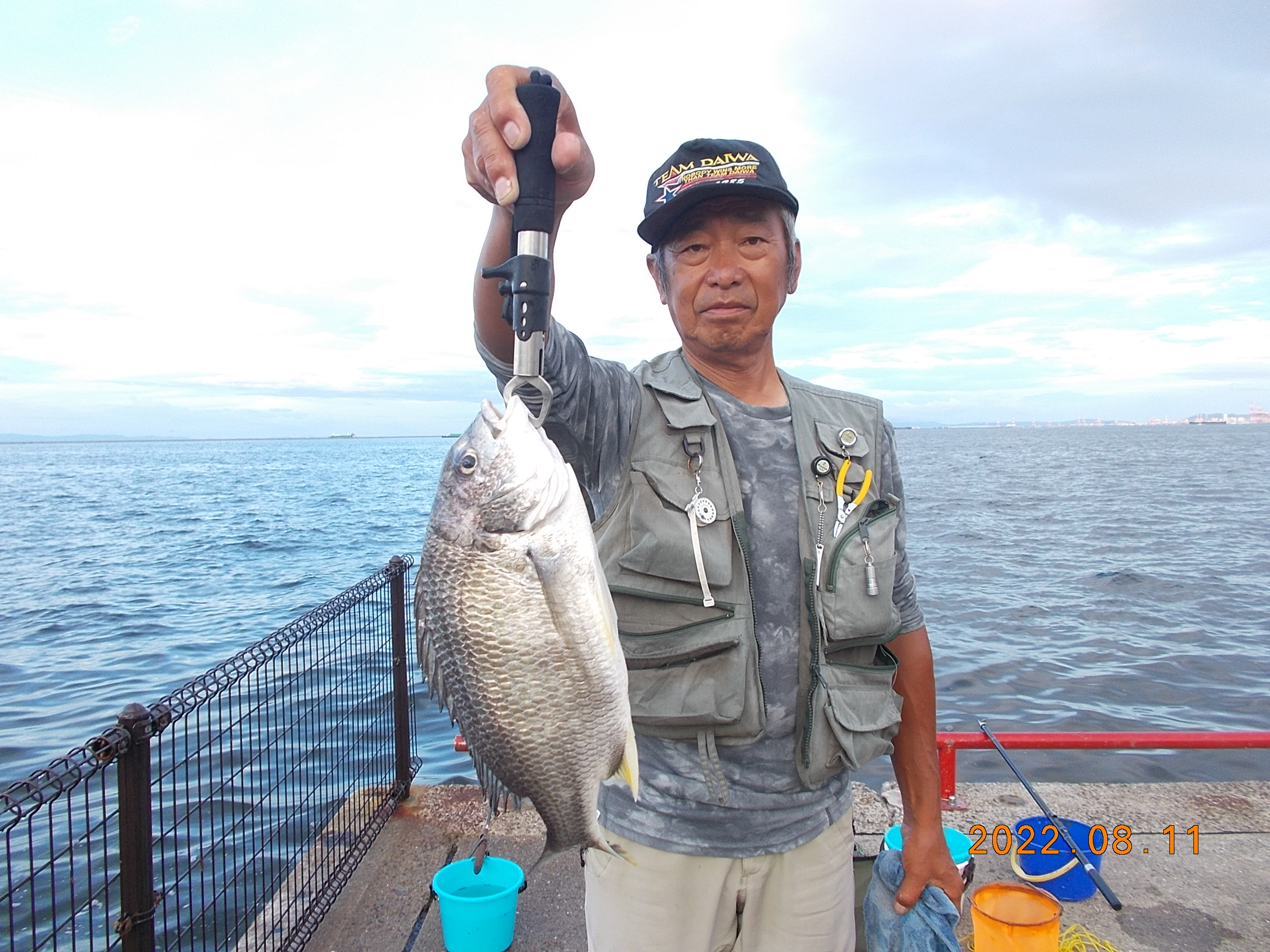 今朝は、平日にもかかわらず多くのお客様がご来場頂いています。それに応えるように、朝からサビキ釣りで皆さん良く釣っていらっしゃいます。今日も開場から2時間程で釣果が落ちてきたので、子供たちが退屈そうにしています。西側では、虫エサで42cmのチヌが上がり、残念ながら大物賞には届かずでした。また、東側で朝からダンゴ釣りをされている方が35~40cmのチヌを5匹釣られています。