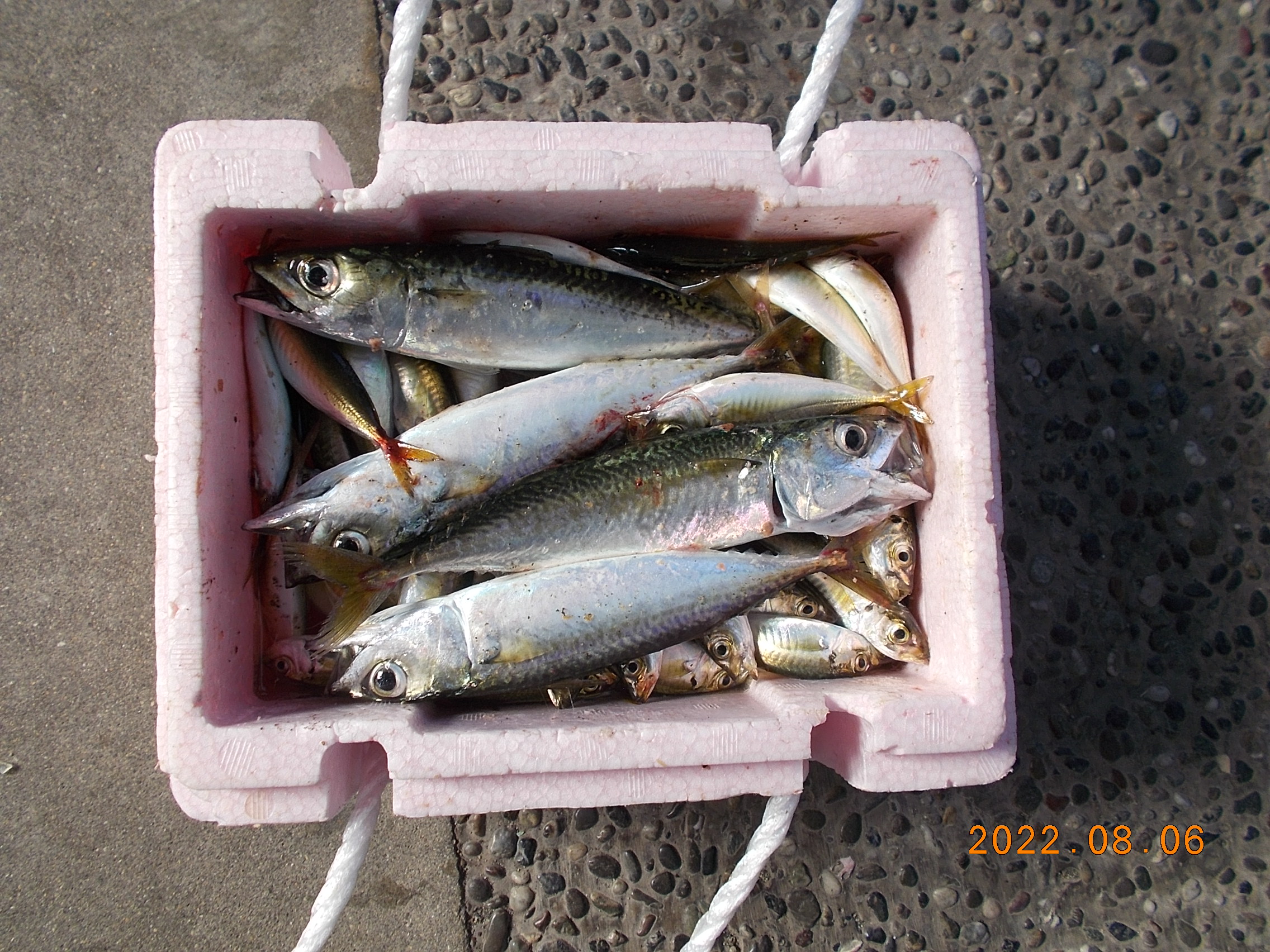 波が高く。白波が立ってるにもかかわらず、今日はサビキ釣りが夕方から良く釣れました。カタクチイワシに、サッパ、豆アジにサバ等、沢山釣れました。子供さんも大喜びで、ニコニコしながら、帰って行かれました。楽しい夏休みの思い出になればいいのになぁと思います。