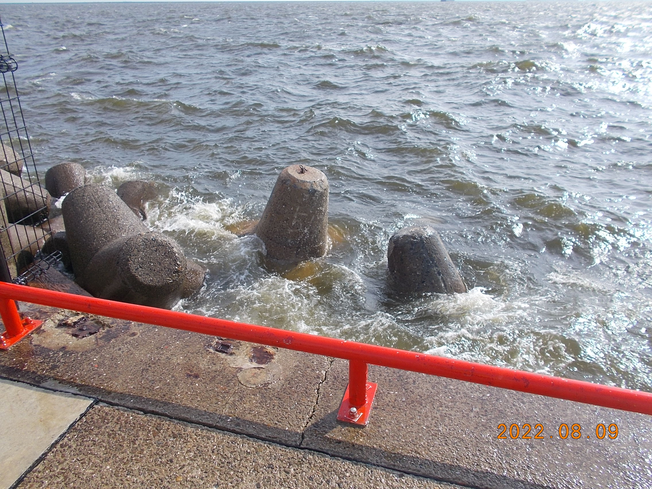 午後3時過ぎから風が強く時折潮が打ち上っています。