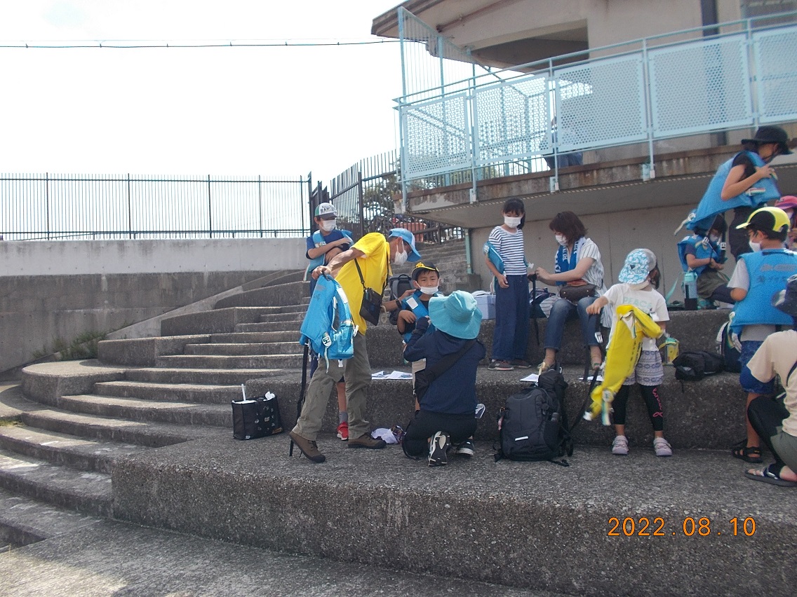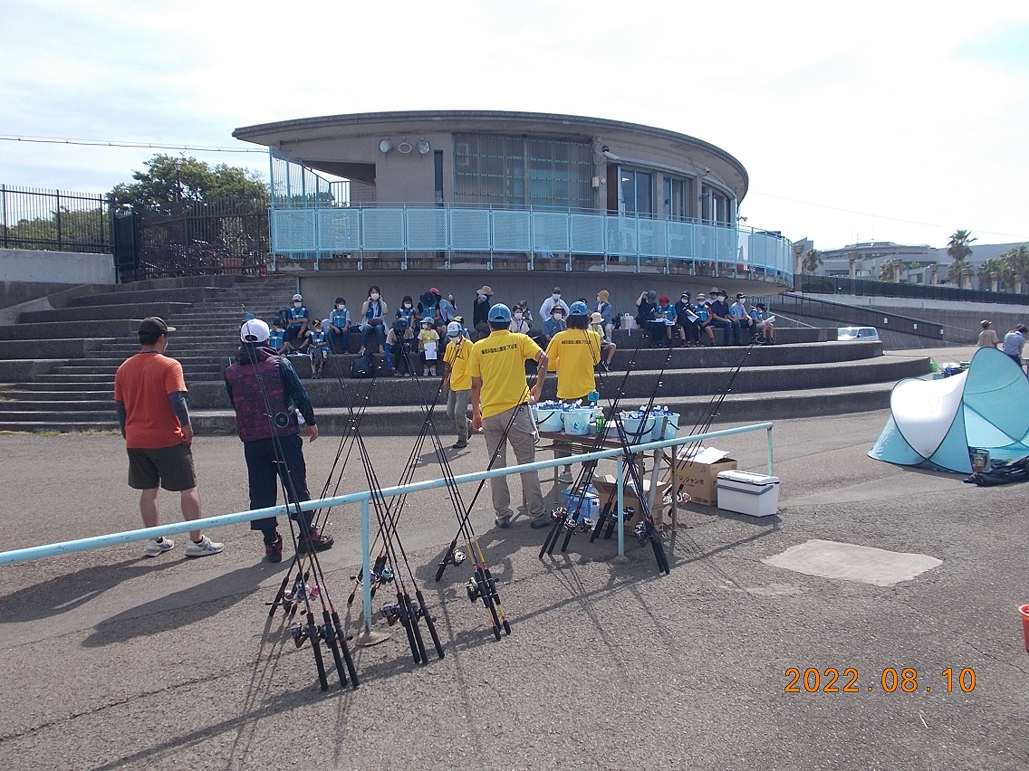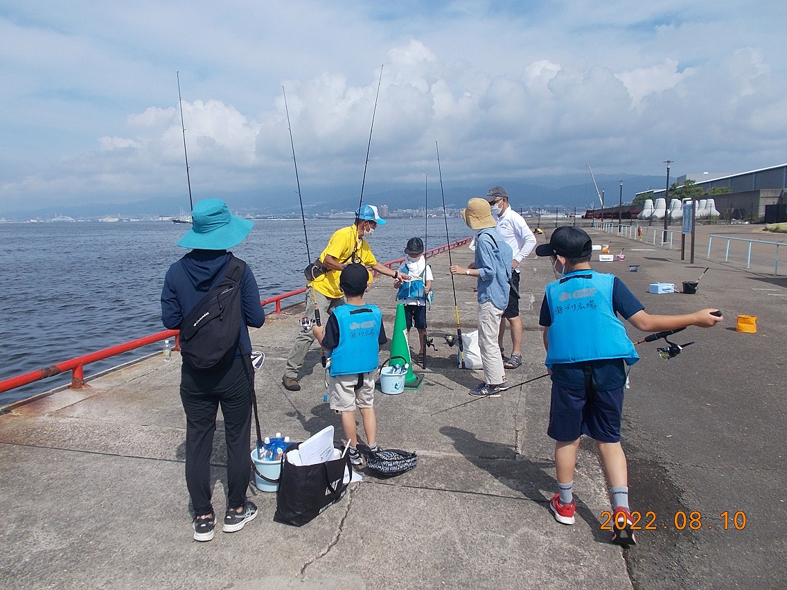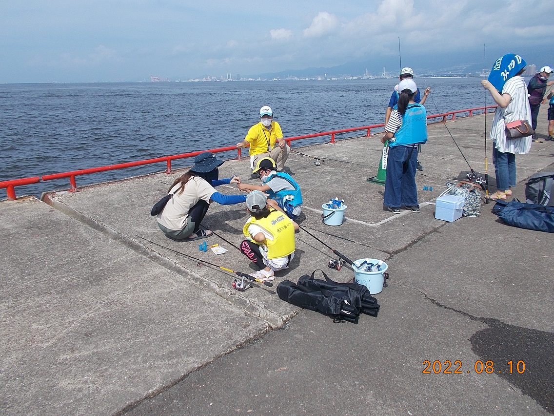 ライフジャケット着用の仕方と釣れたら危険な毒魚の説明、釣り場では竿に糸を通すことから教わり、リールや仕掛けの仕組み、サビキ釣りの方法を学びました。