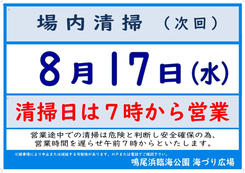 開園時、波風共に静かです。無風状態で大変蒸し暑いです。