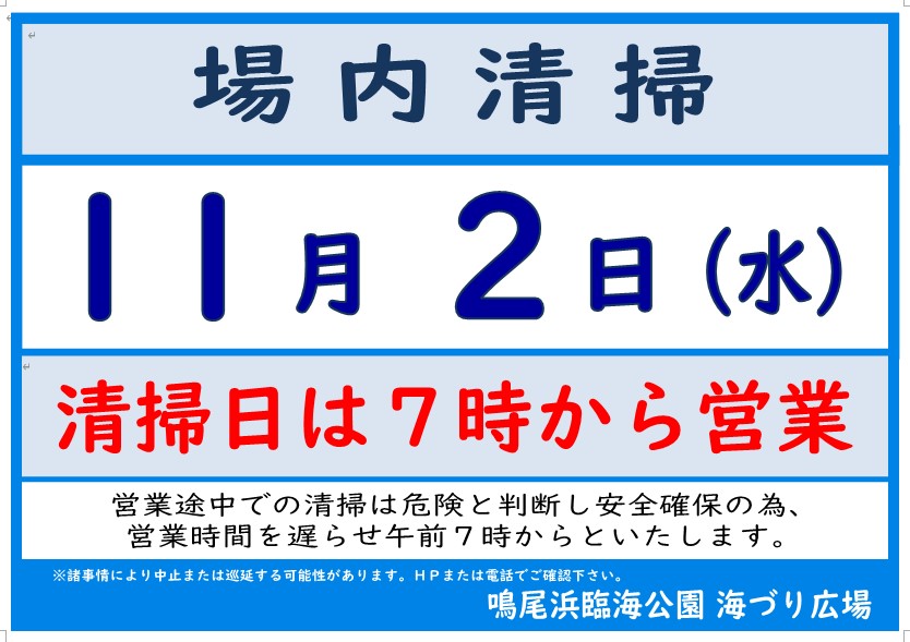 〇11月10日(木)※鳴尾浜臨海公園南地区全体臨時閉場。