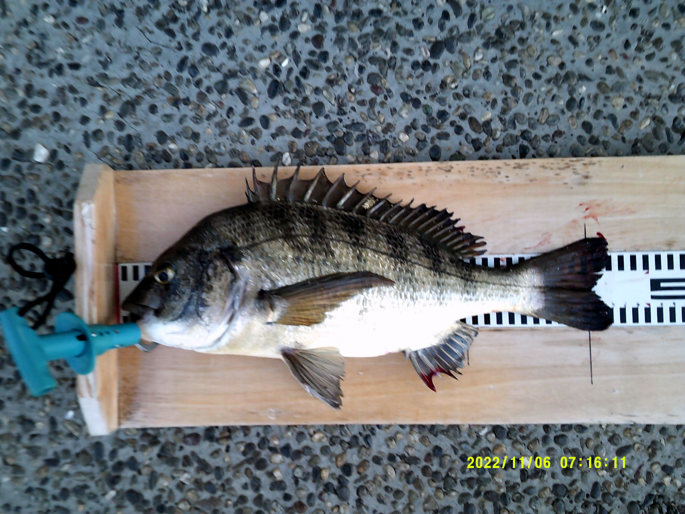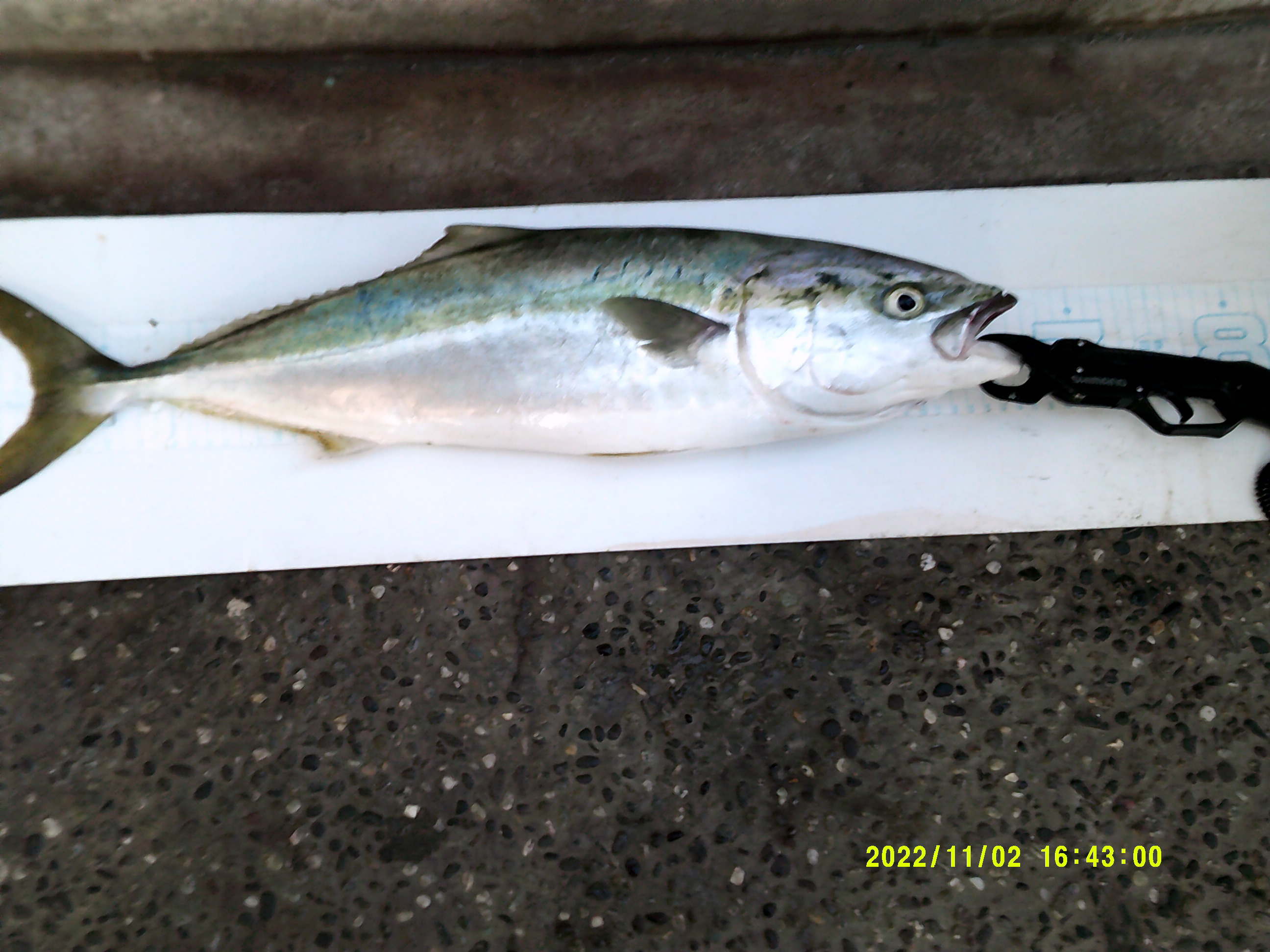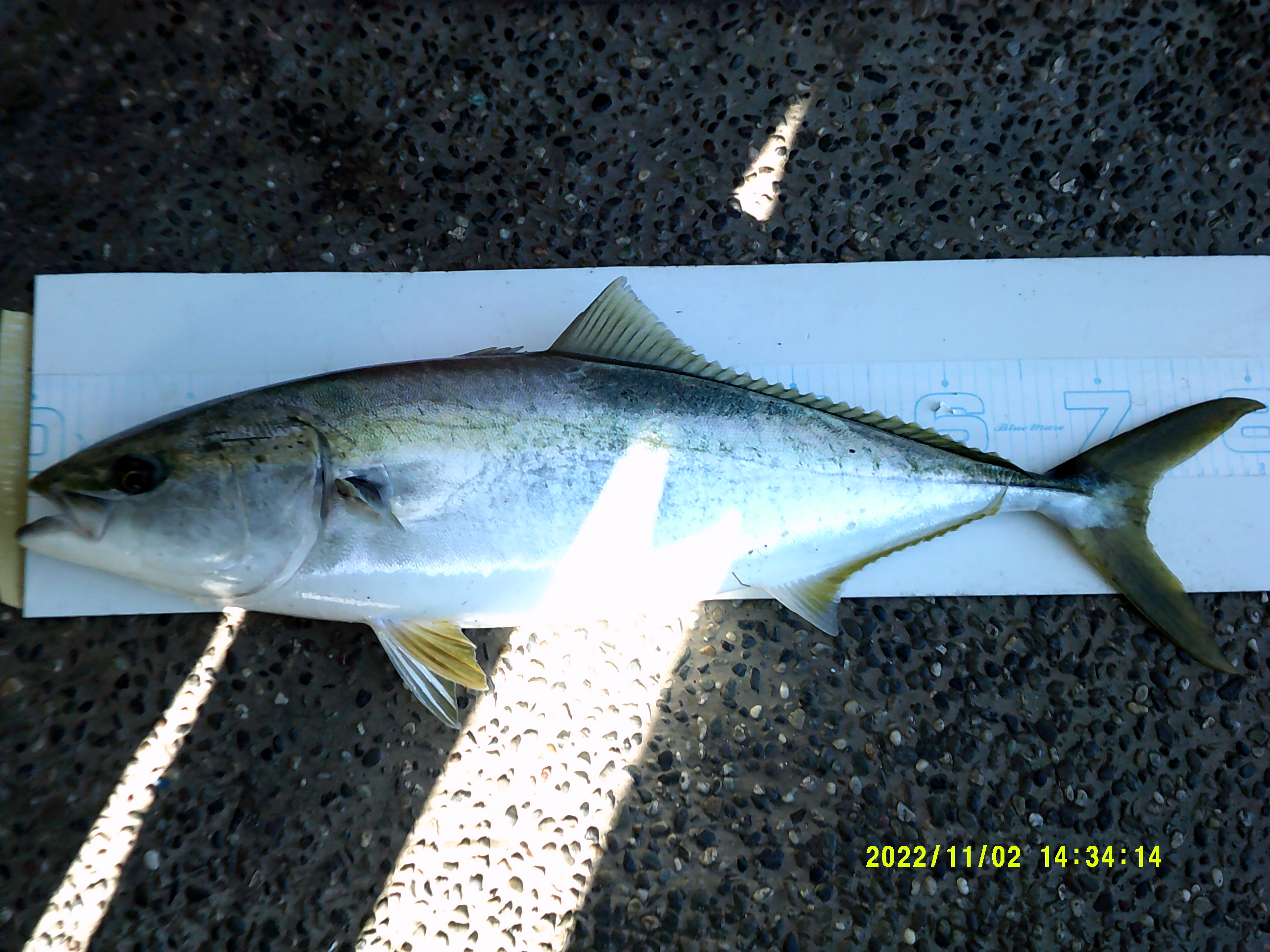 10月30日にサビキに掛かった1匹と、11月1日に電気ウキ(キビナゴ)に掛かった1匹、この電気ウキで釣れた時間が21時ですから時合いは とうに過ぎた時間になり、少数が迷い込んで来てかかった?という印象です。
