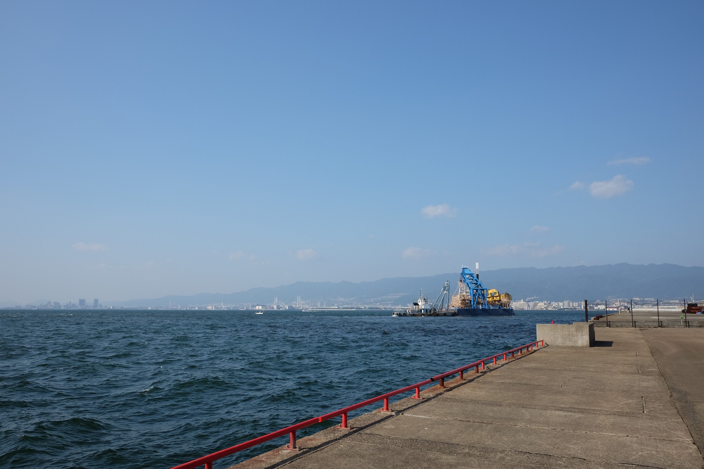 開園時、とても穏やかな鳴尾浜です。だいぶ冷え込んでいます。