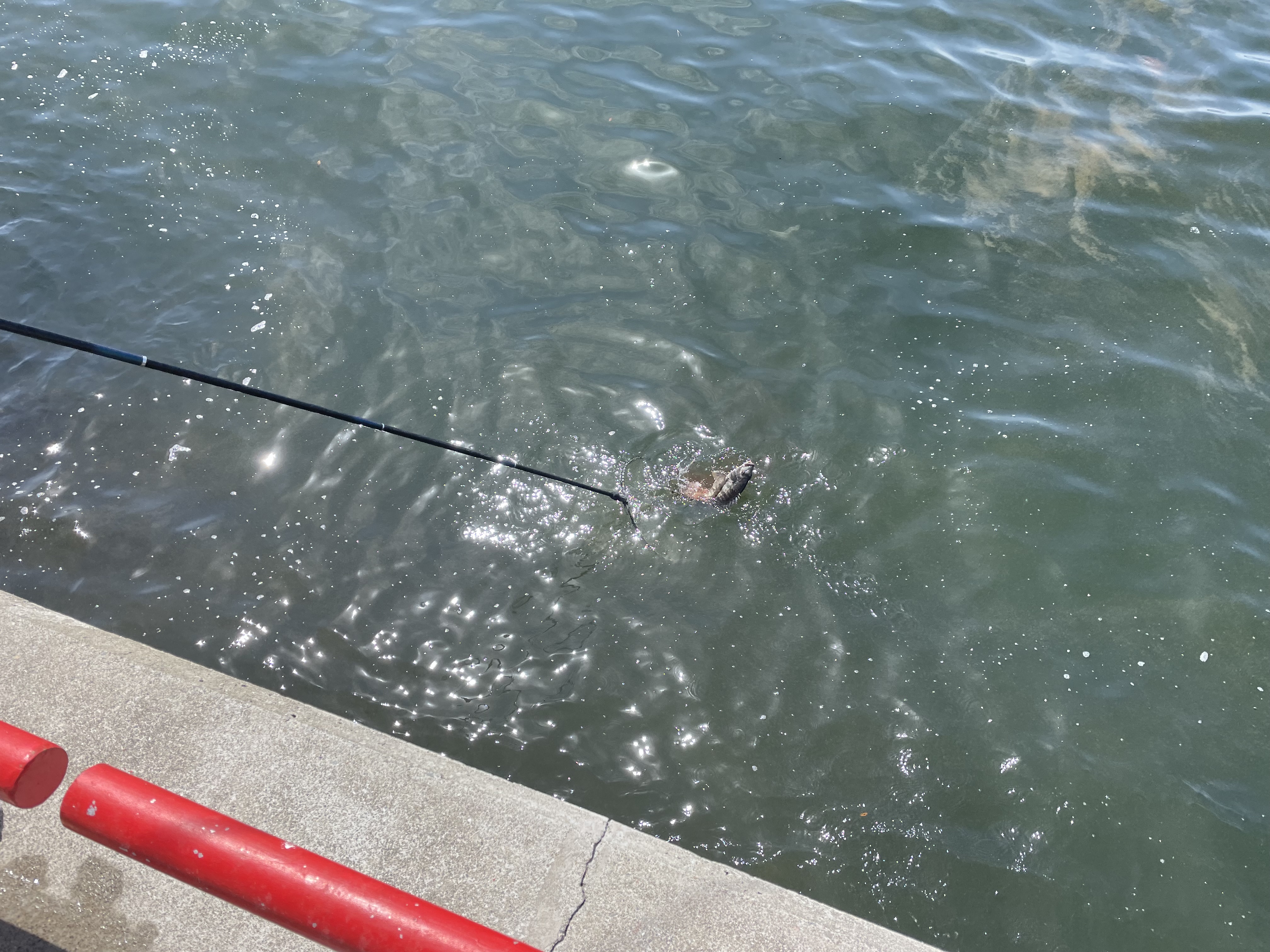東側でフカセ釣りの方が、10時頃に38cmのチヌの釣果がありました。朝からアタリはあったものの、乗らなかったり、ボラだったりしていたのですが、待望のチヌでした。午後からも期待したいですね。