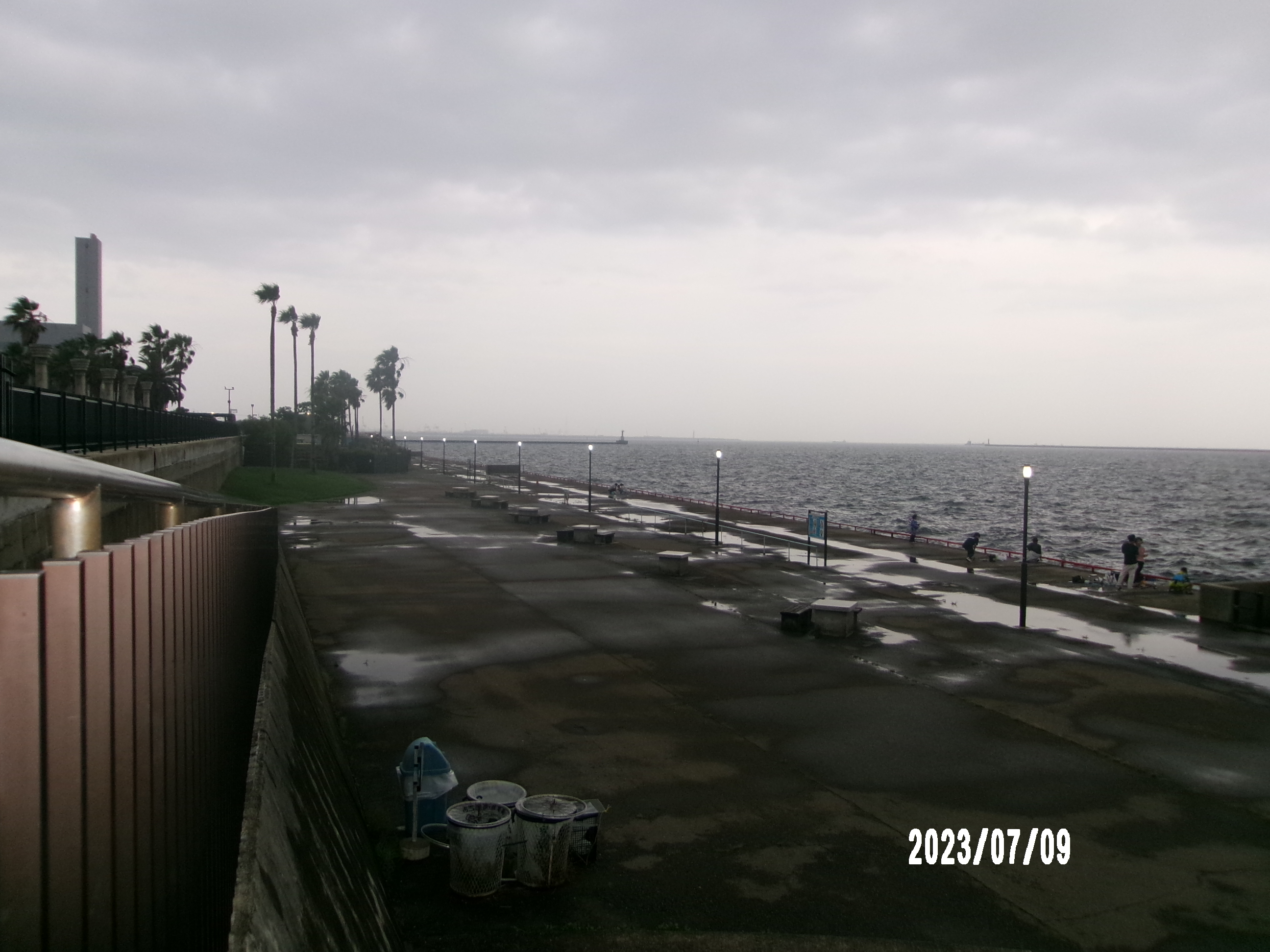 14時過ぎ現在雨と雷の為10名程のお客様は皆様お帰りなりました。17時現在雨も上がり清々しい鳴尾浜です8名のお客様が釣りを楽しんでおられます。小魚をポツポツと釣られています。午後からはお客様が少なく釣果が伸びず午前中とほぼ変わりませんでした。 -