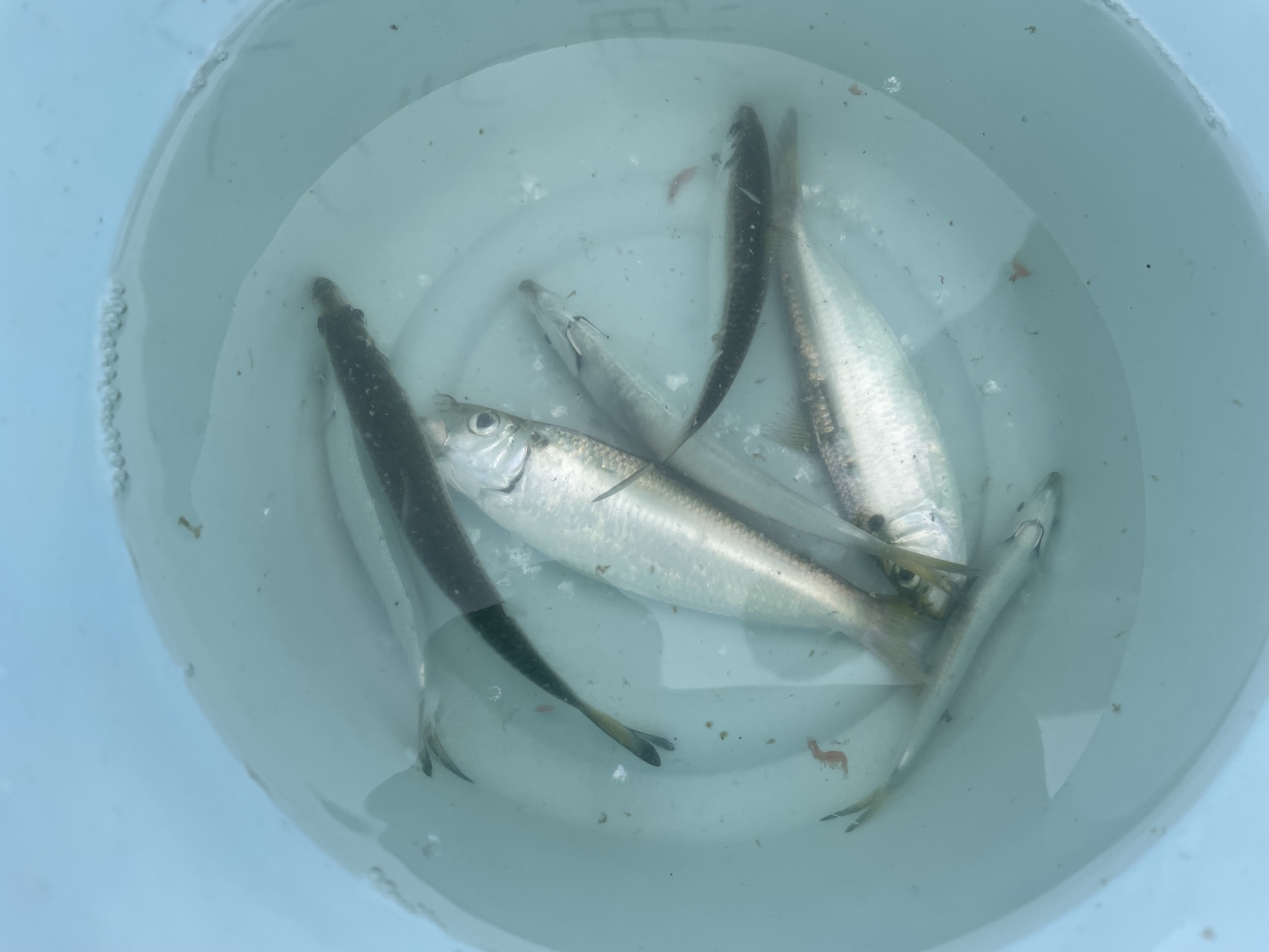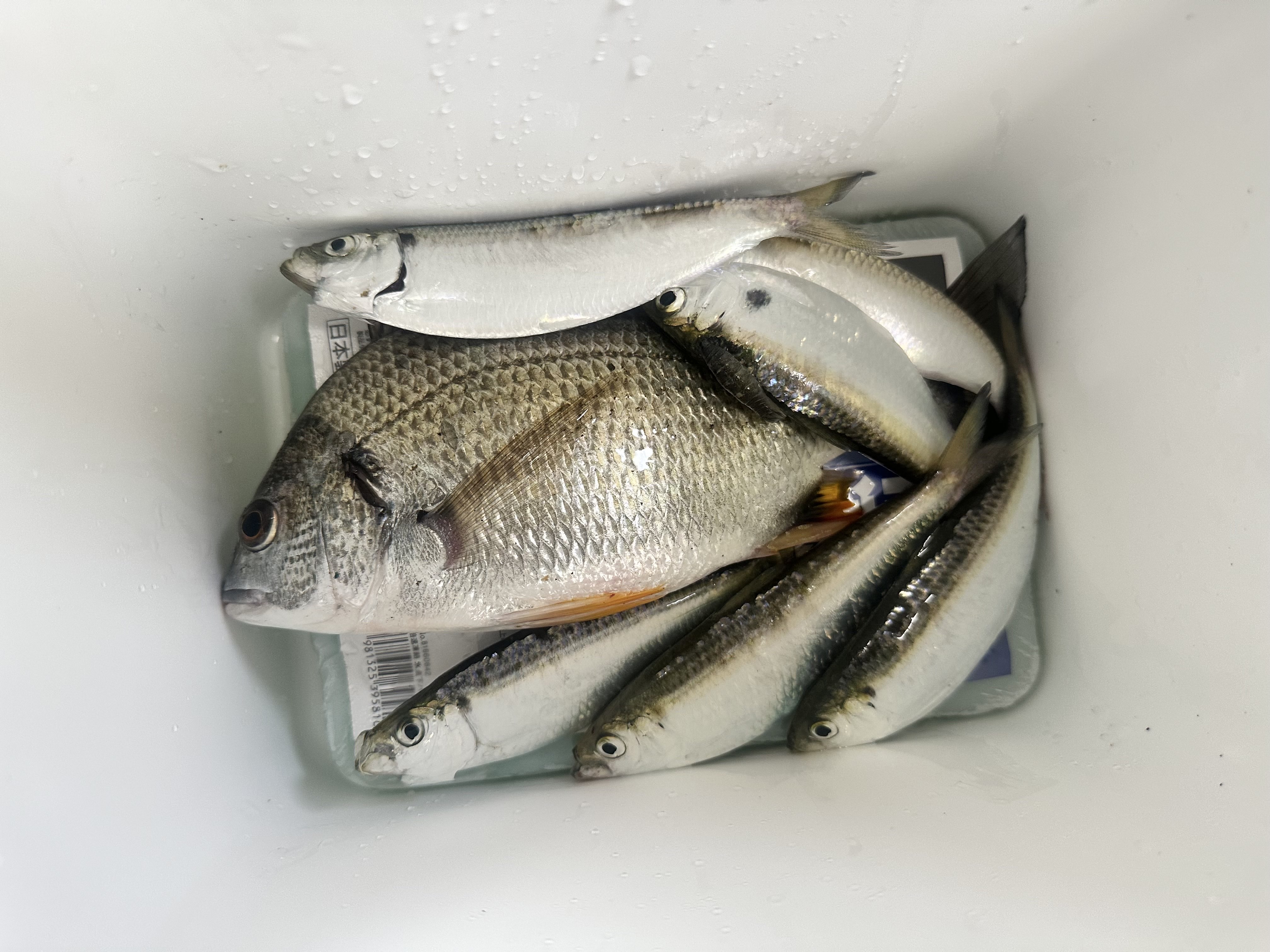 午前中の釣果ではサビキではサッパが少し釣れてアジとコノシロが混じっていました。