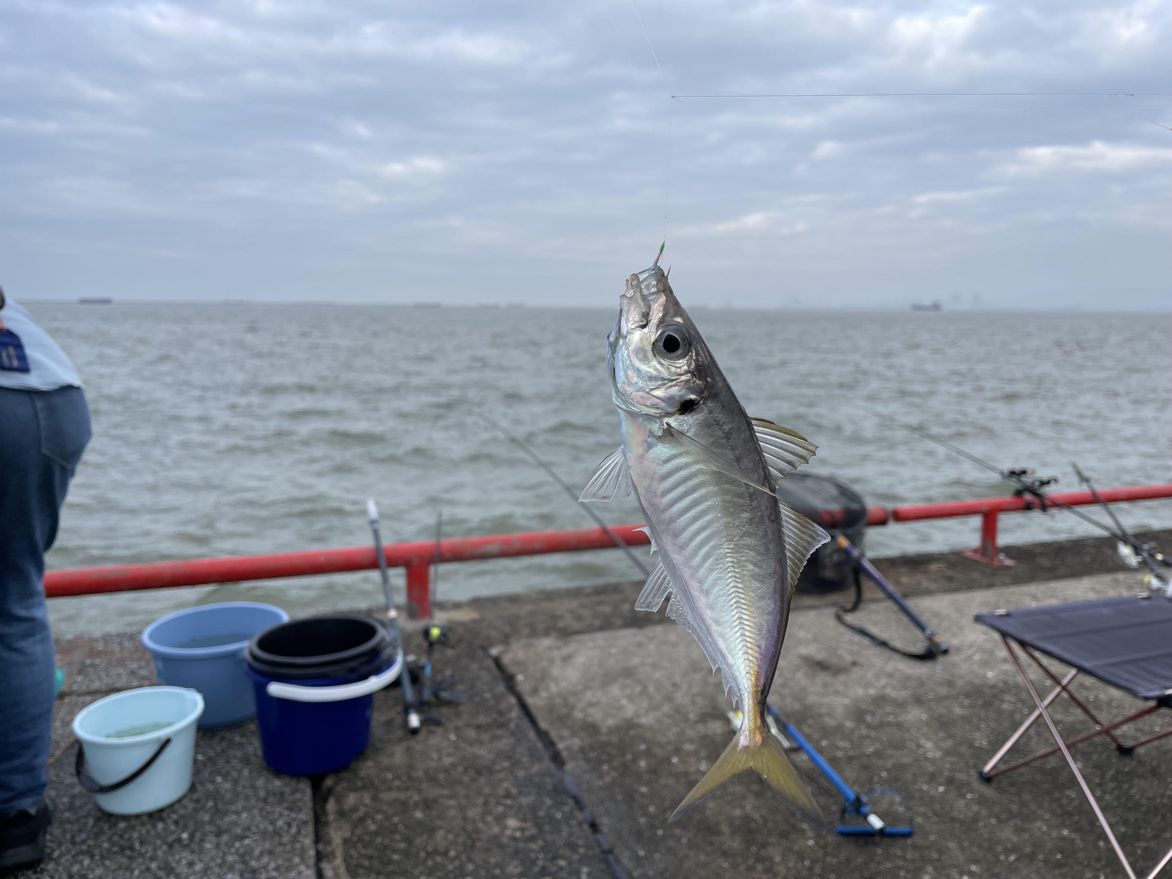 開園間もなくアジの釣果がありました。曇り空のおかげか1時間ほどポツリポツリと釣れていましたが、その後はサッパへと変わりポツリポツリと釣れています。なかなか連掛けでは掛かってこないのですが、たまに釣れるため気が抜けませんね。