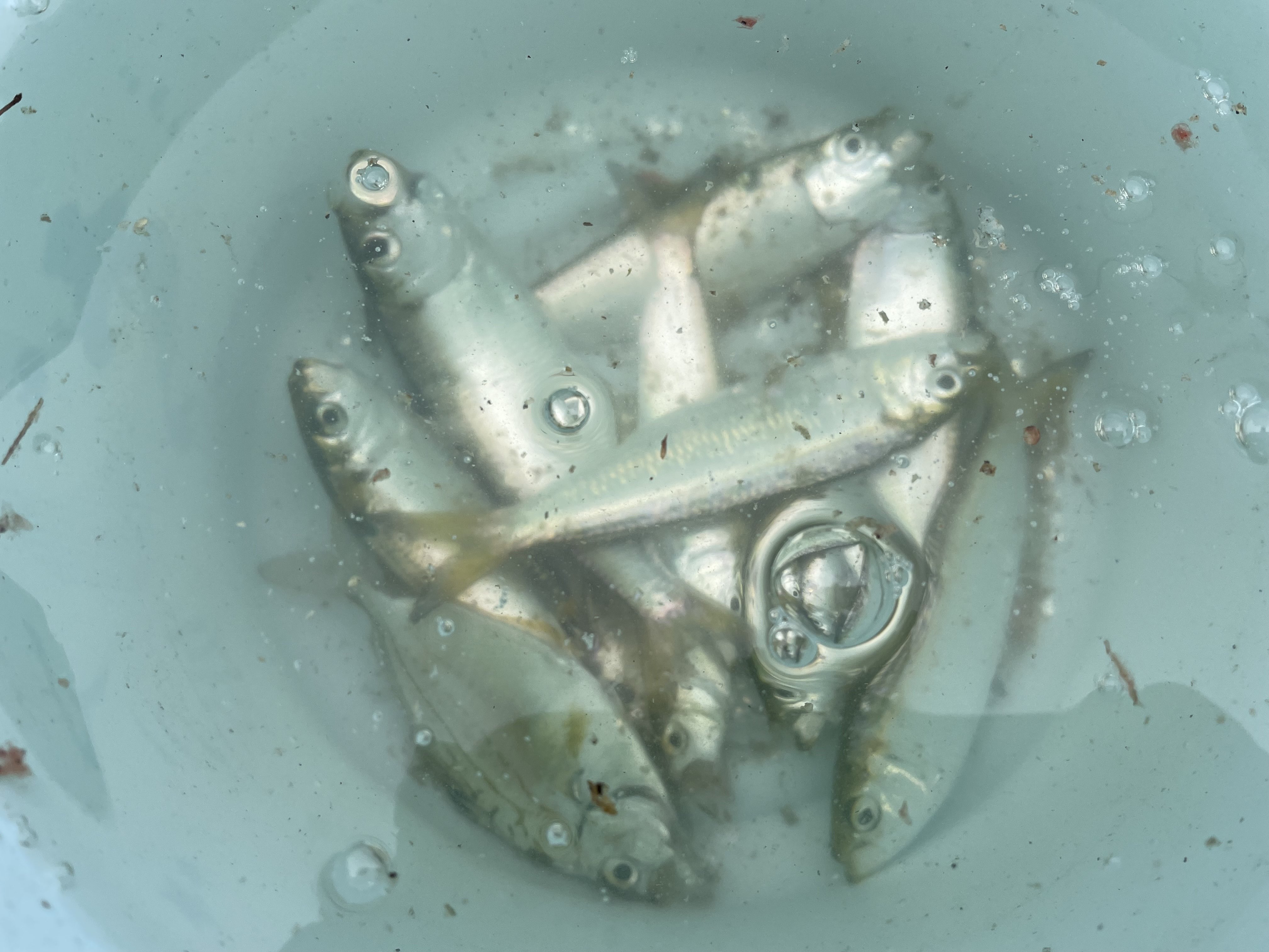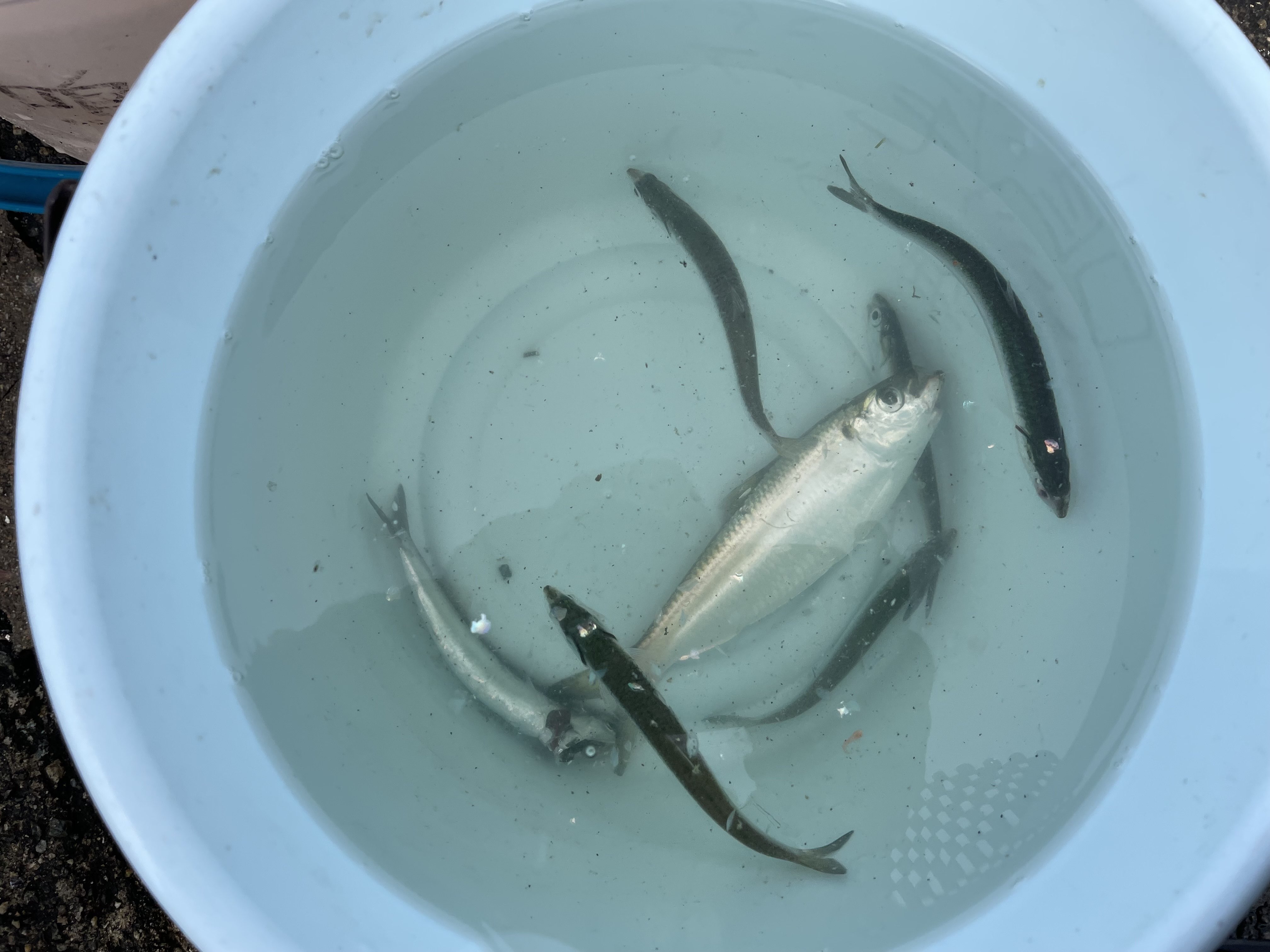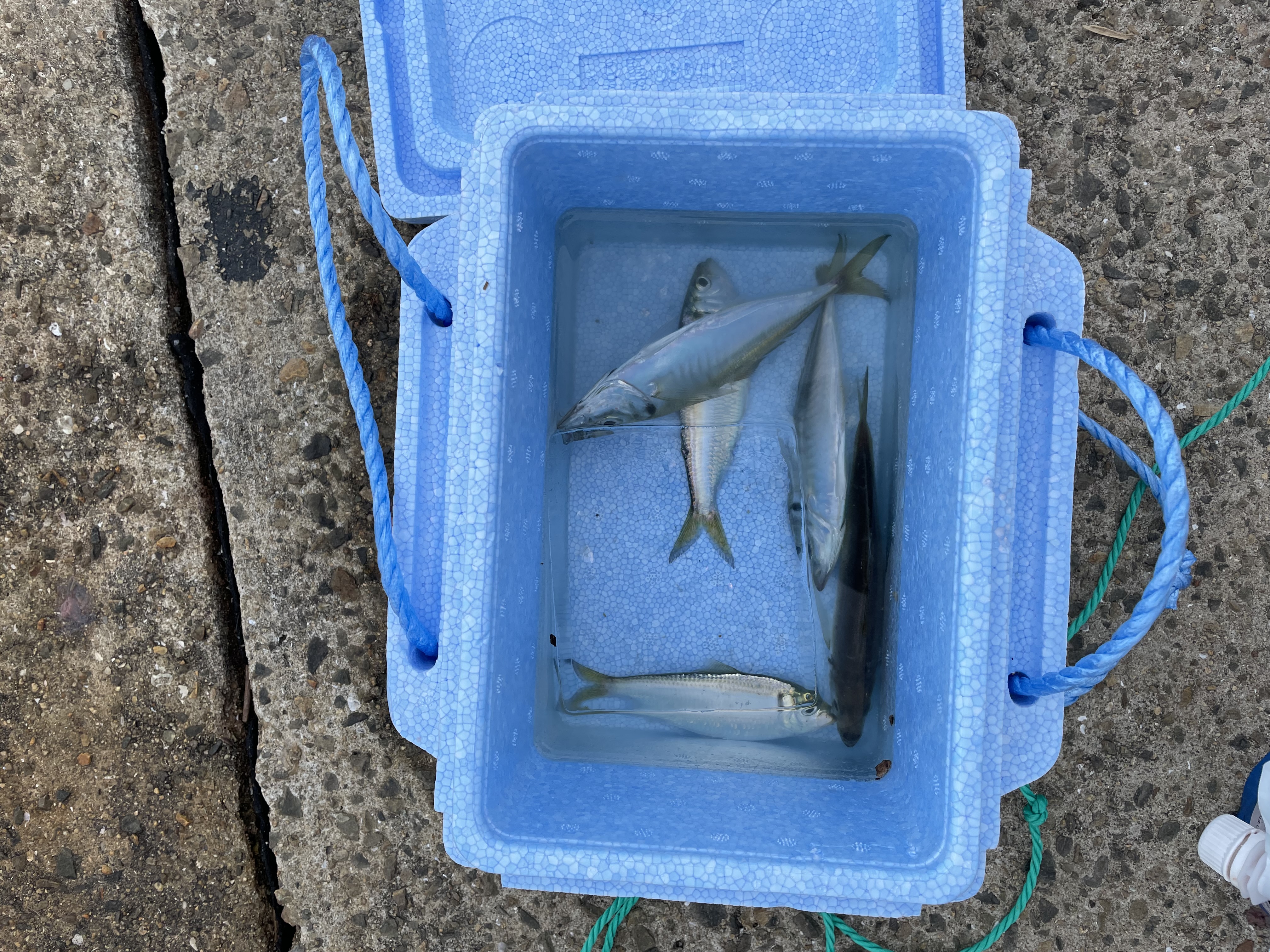 午後5時現在、午後からの釣果は今日も不調ですね、カタクチイワシが少し釣れてるみたいです。