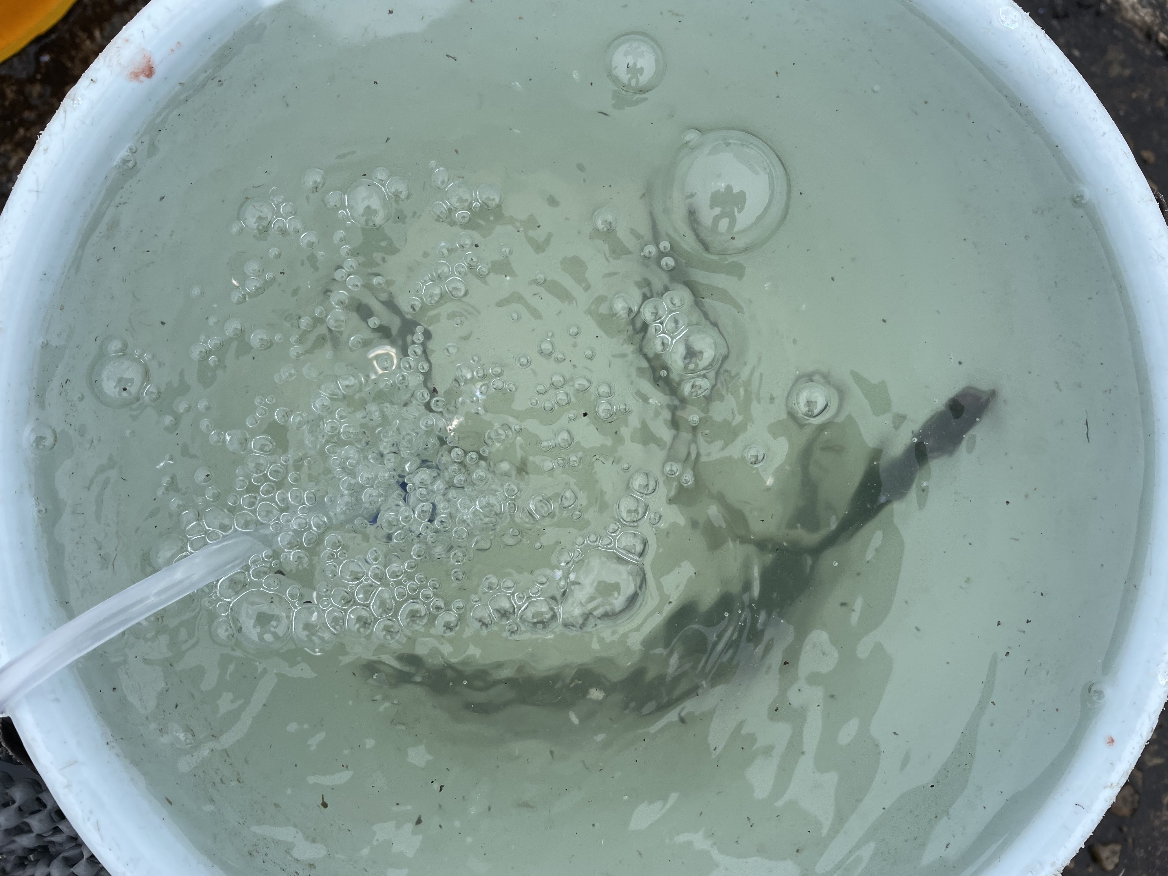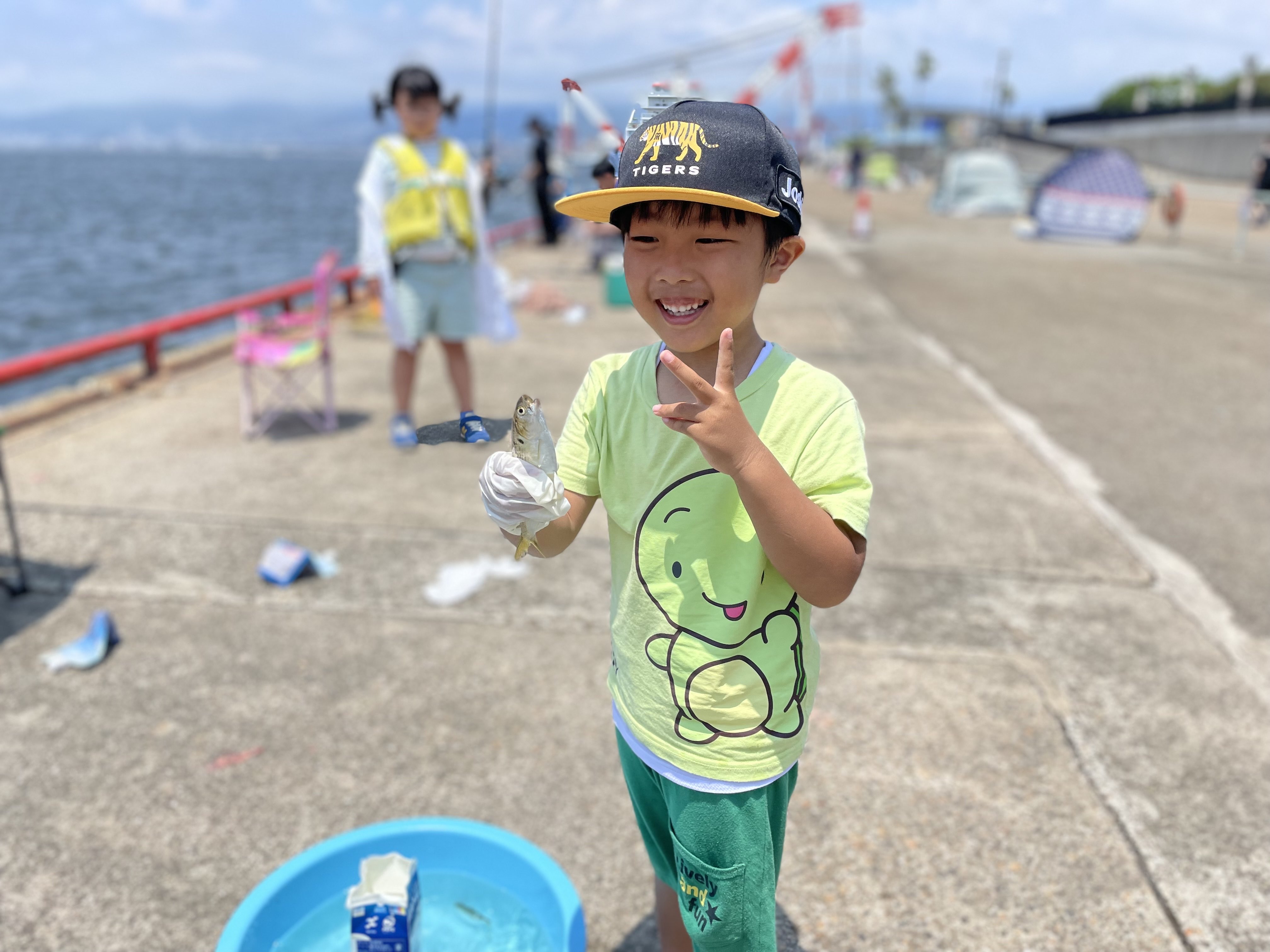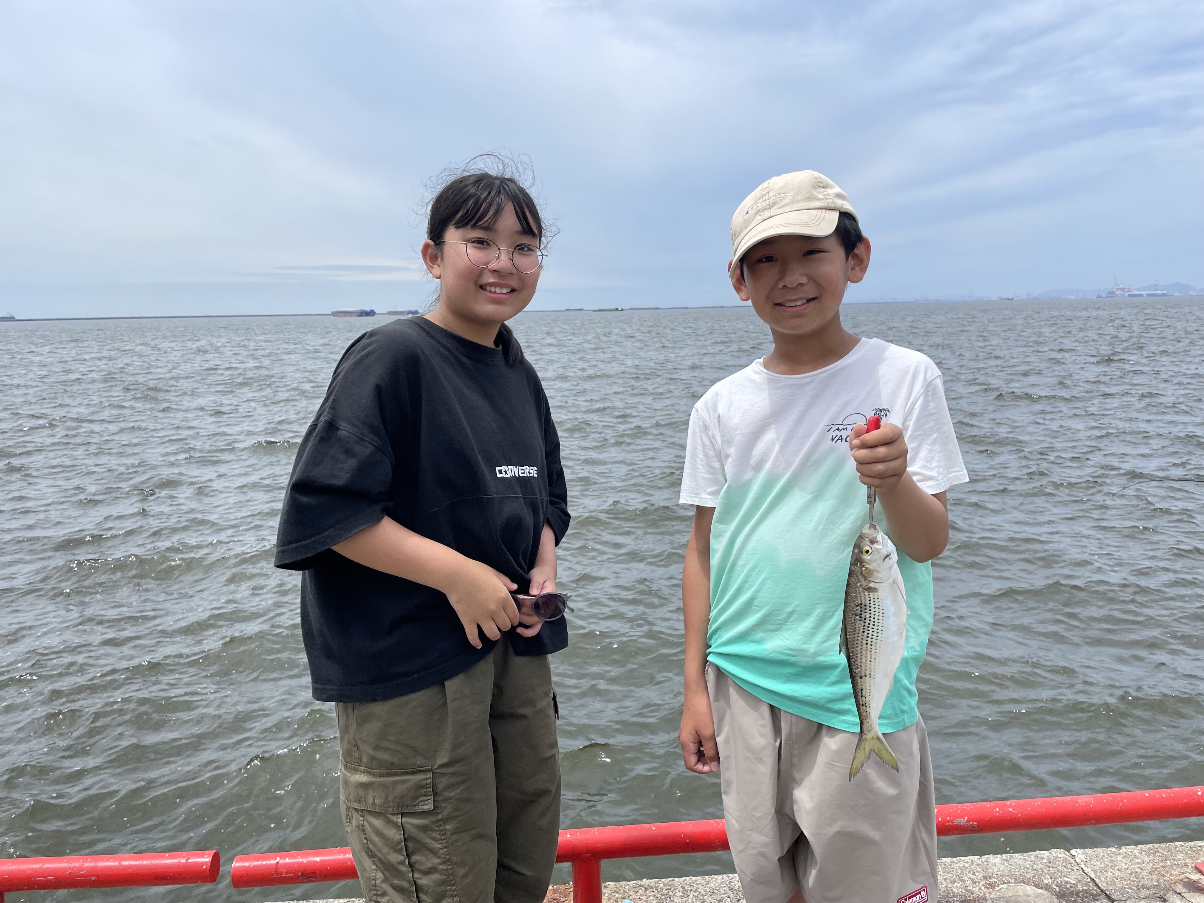 サビキ釣りは今日は場所ムラがあるみたいで、開園から2時間ほどの間にアジを10匹ほどゲットしたラッキーBOYSたちがいました。