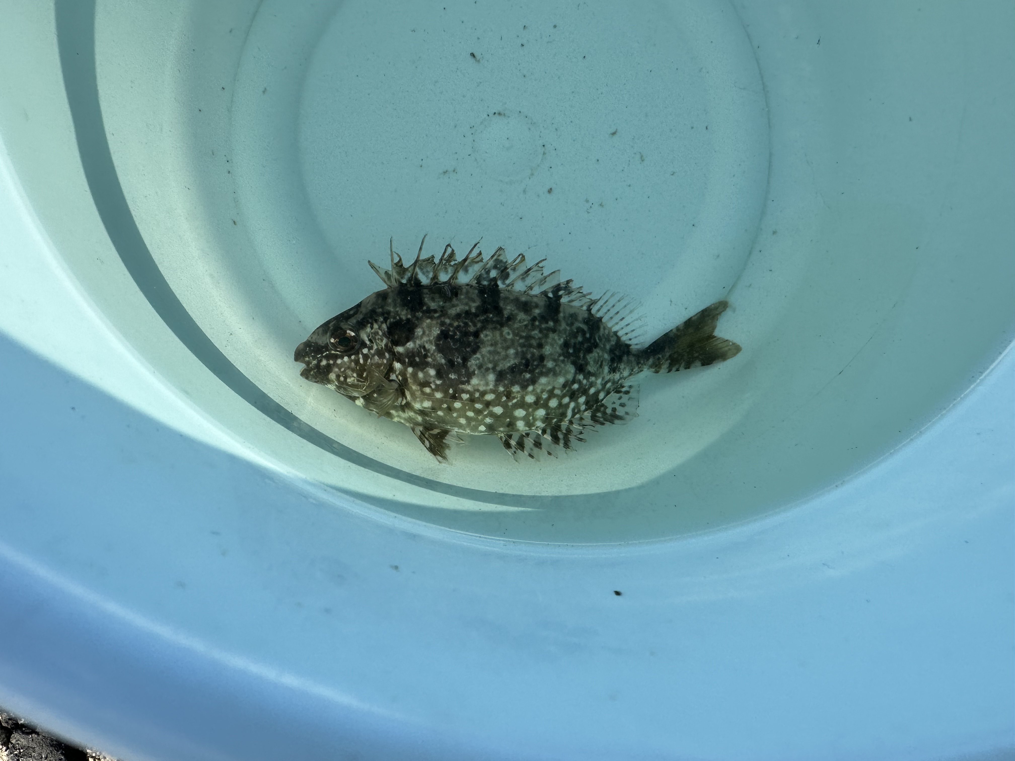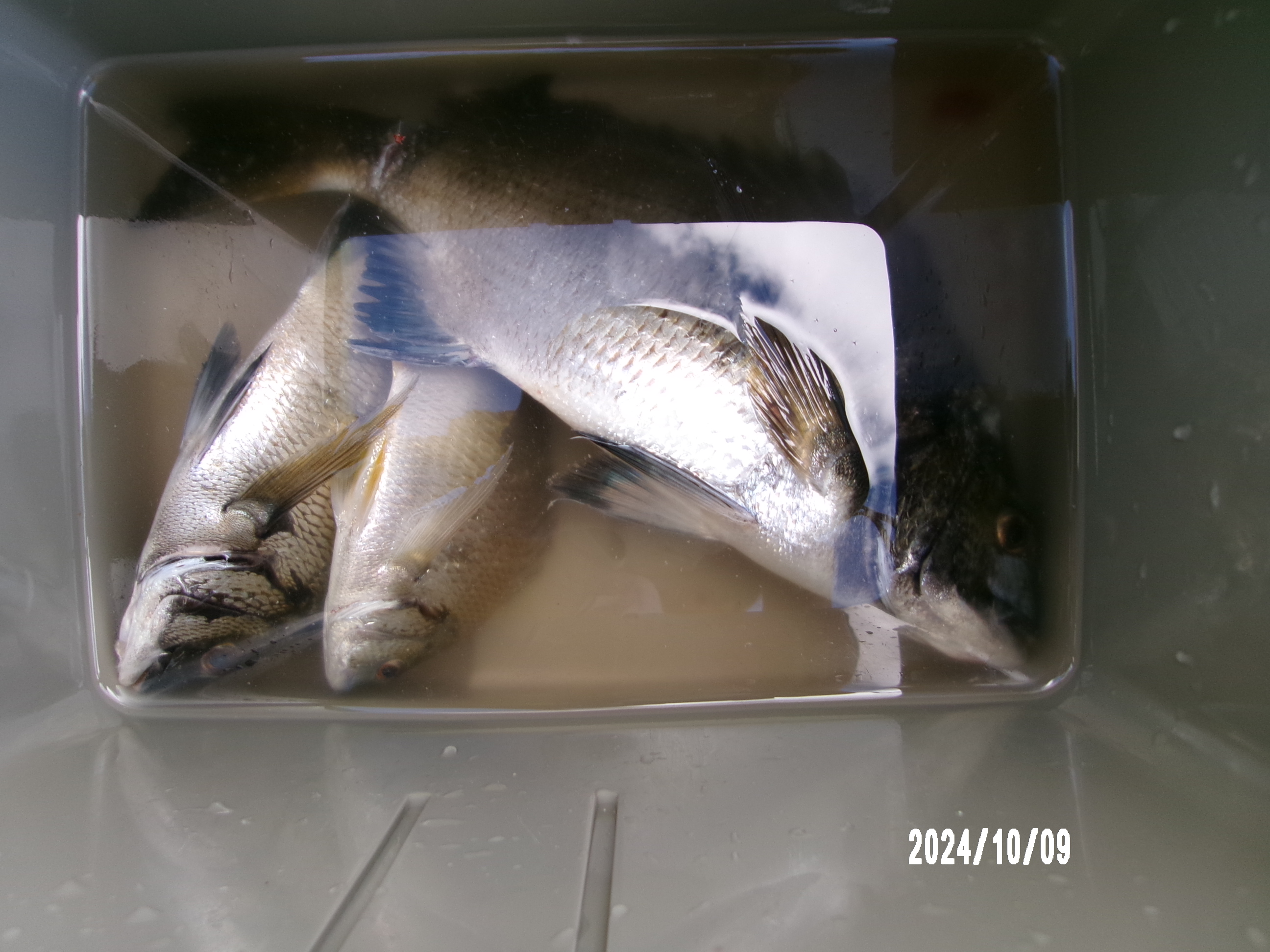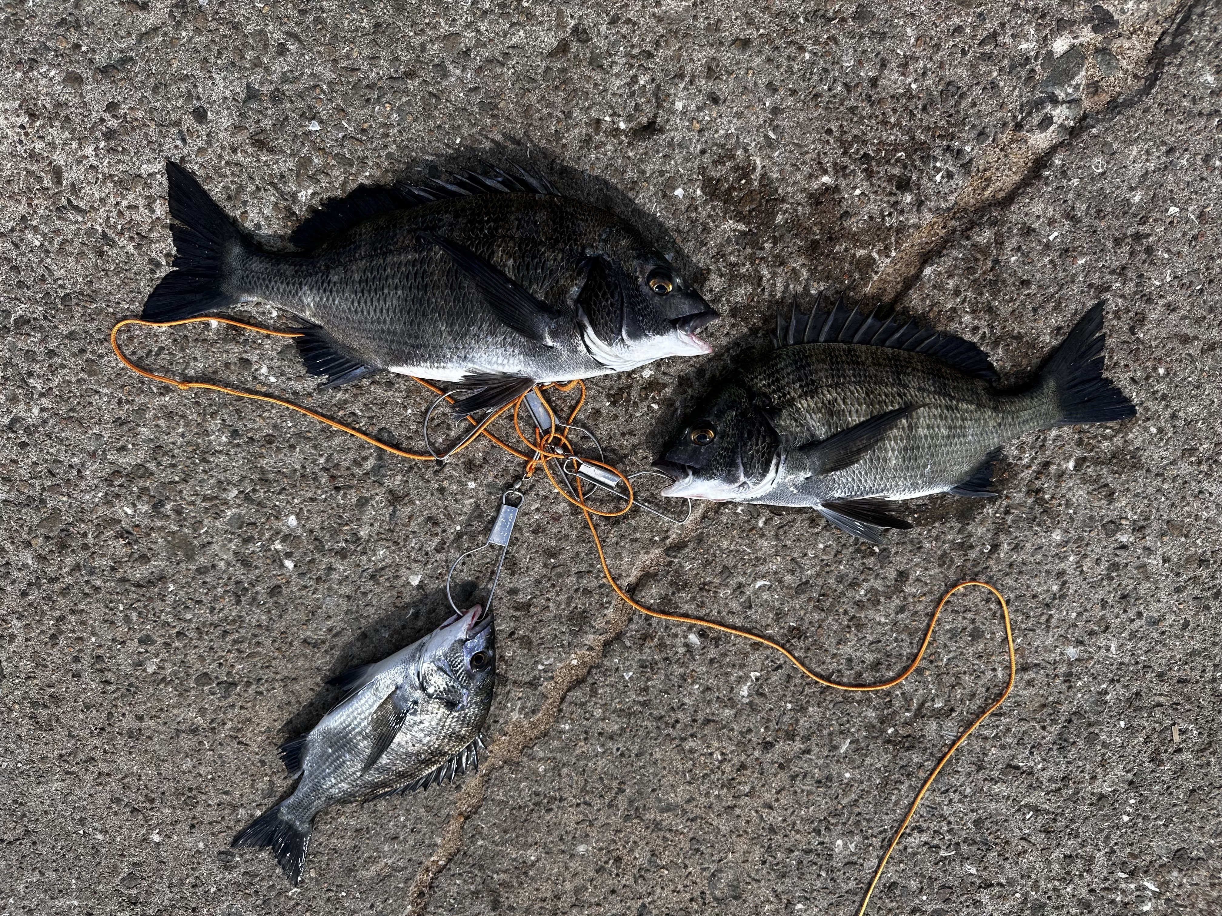 14時半、チヌが釣れました。大きさは20㎝~35㎝で、合計で3匹釣れました。餌はオキアミです。