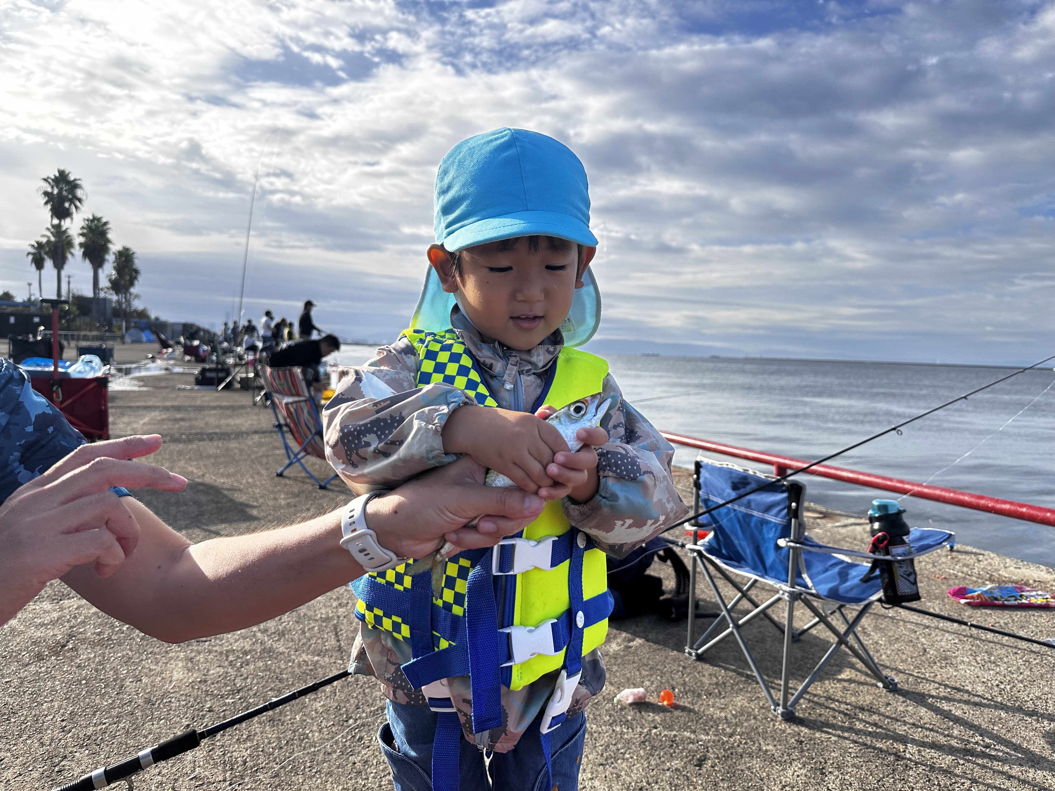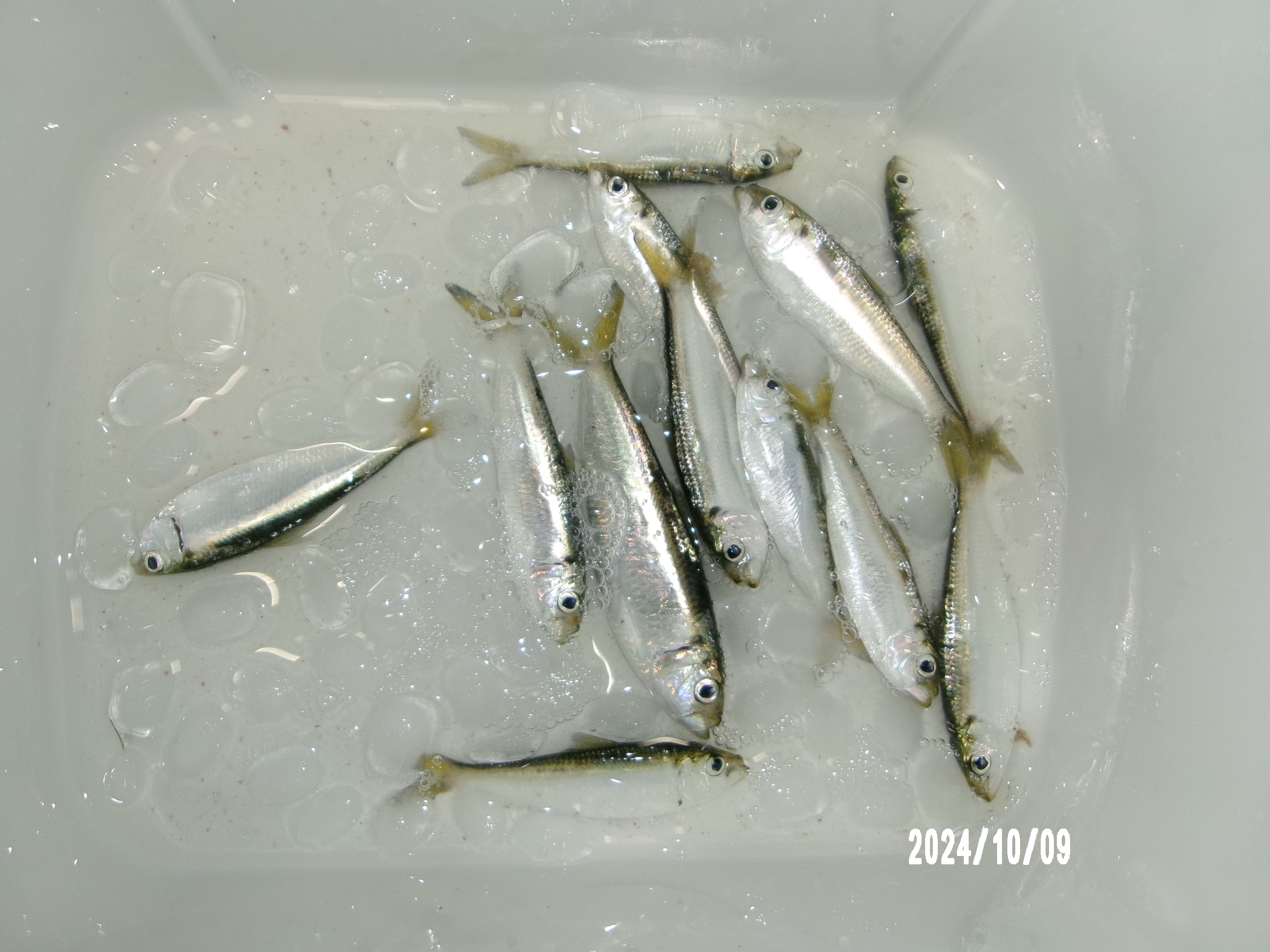お昼を過ぎ釣果は落ち着いてきました。サッパ、カタクチイワシ、サバ等がボチボチ釣れています。サヨリは管理棟前中央から西側の方でよく釣れています。