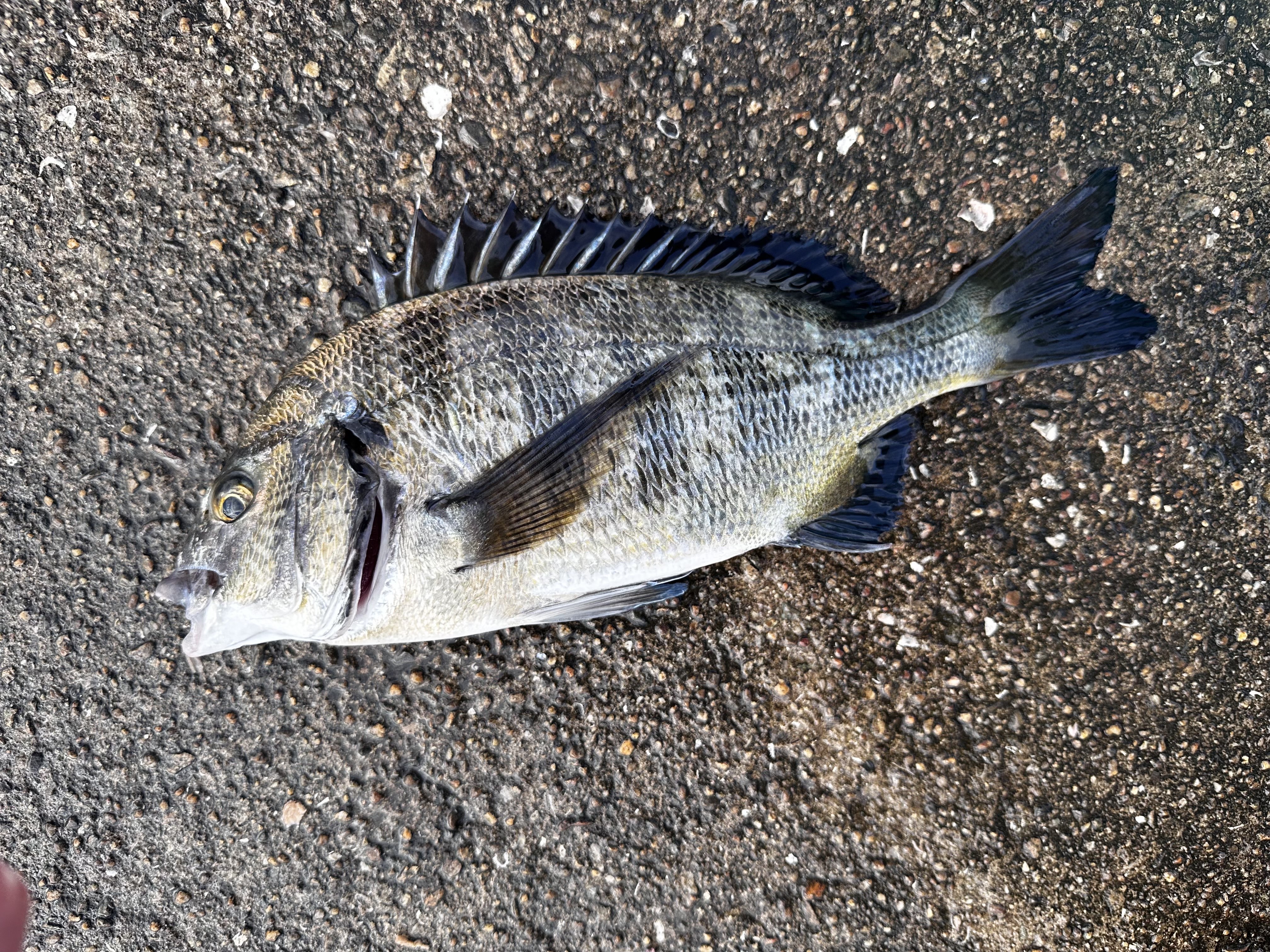 午後1時頃、チヌ47.0cmが釣れました。餌はオキアミです。
