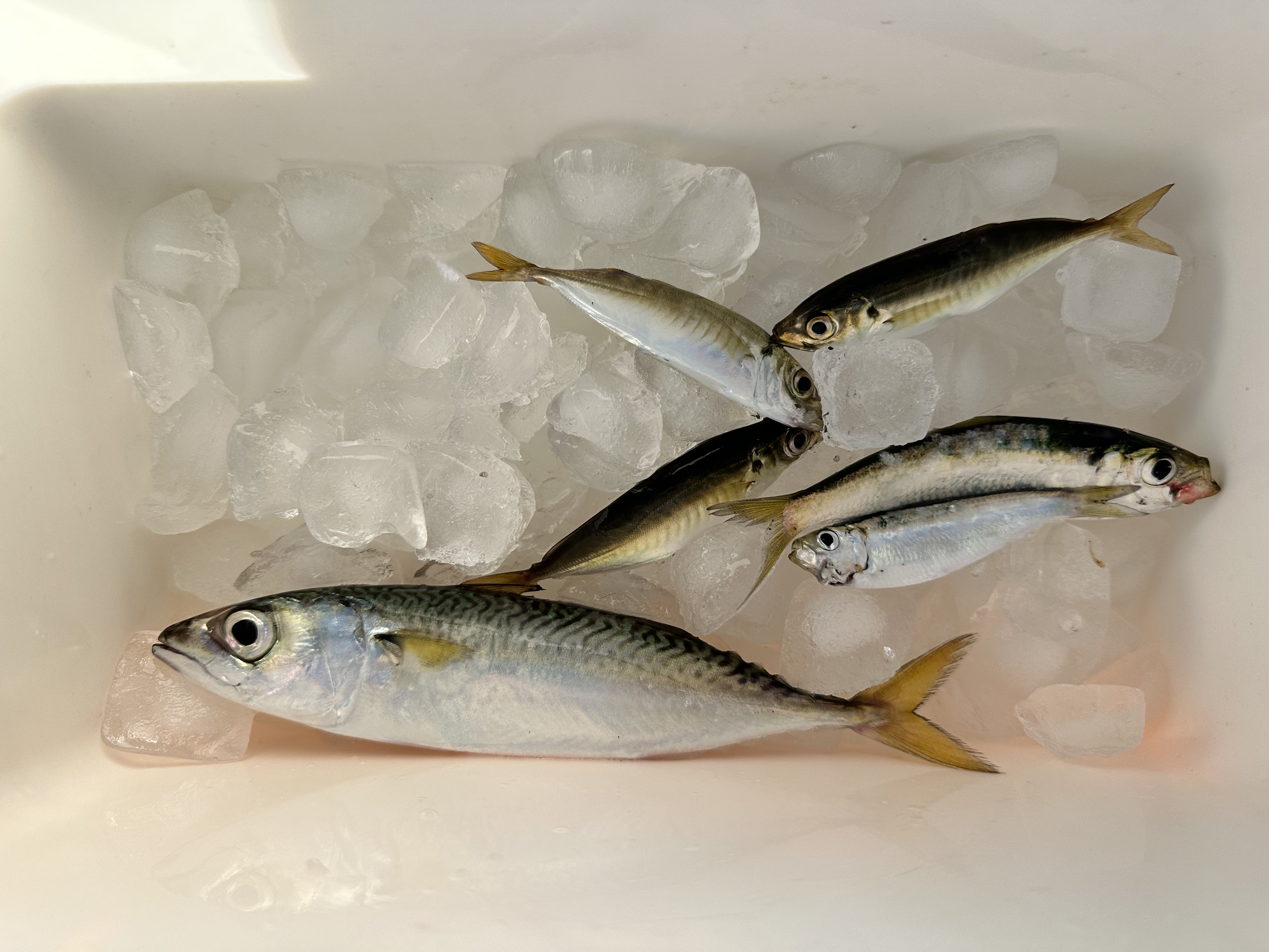 本日は、いつもの顔ぶれ、サッパが多く、群れがまわってくるとカタクチイワシやサバが釣れています。