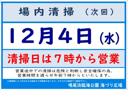 開園時、波風共に穏やかです。本日から12月スタートです。
