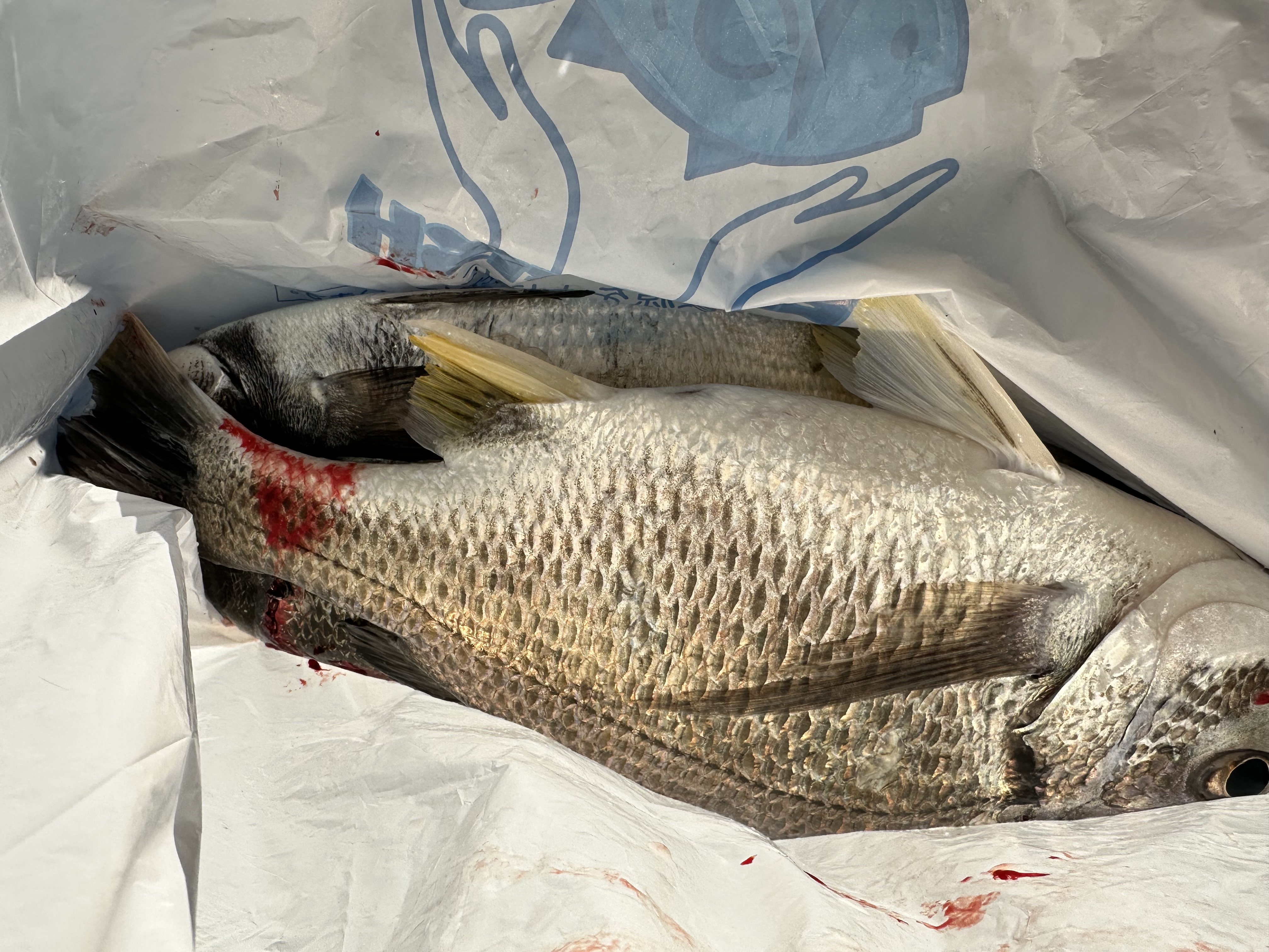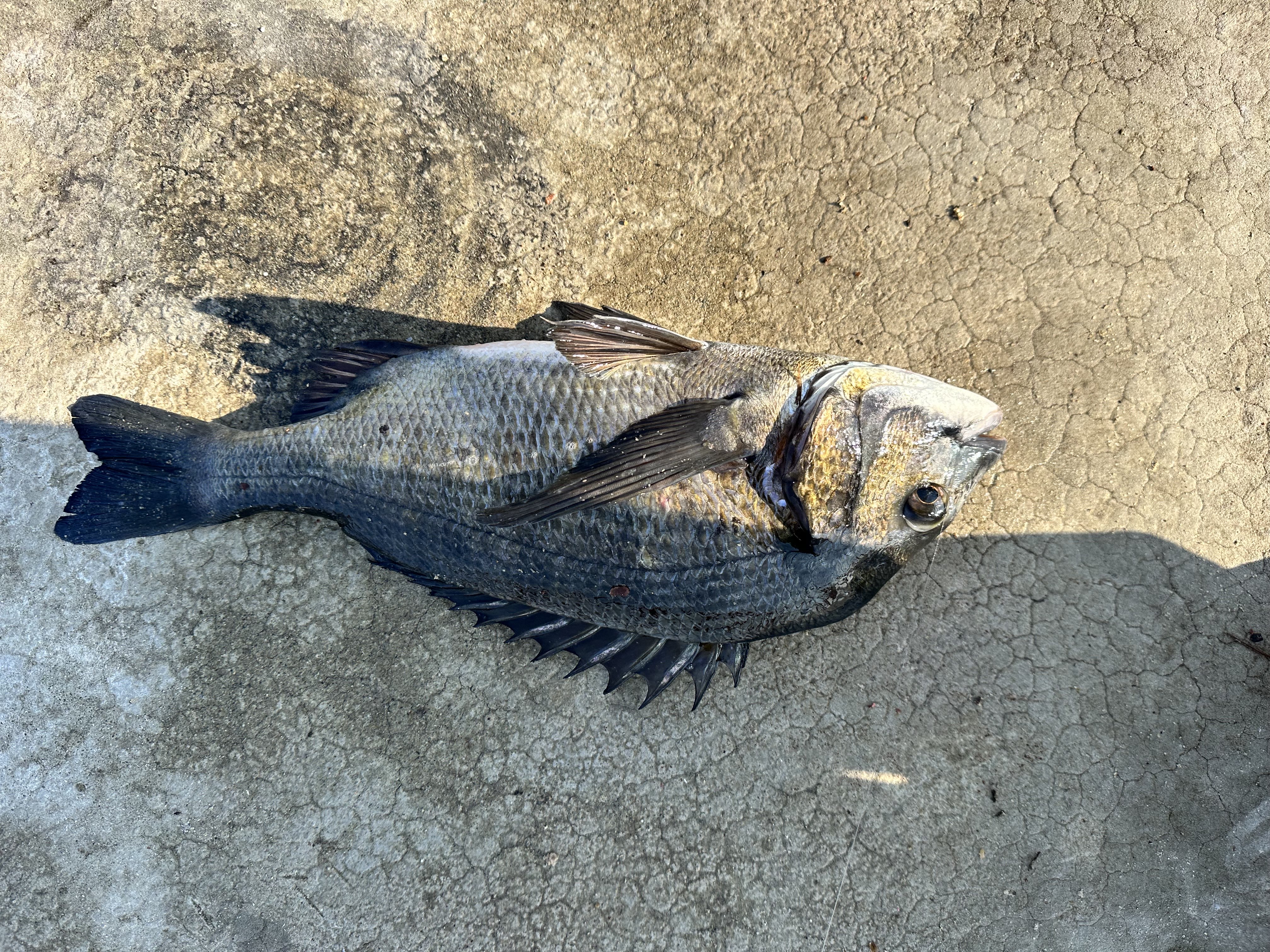 チヌは本日好調で、フカセ釣り(餌はオキアミ)で9時半ほどまでに6匹釣られている方がいらっしゃいました。
