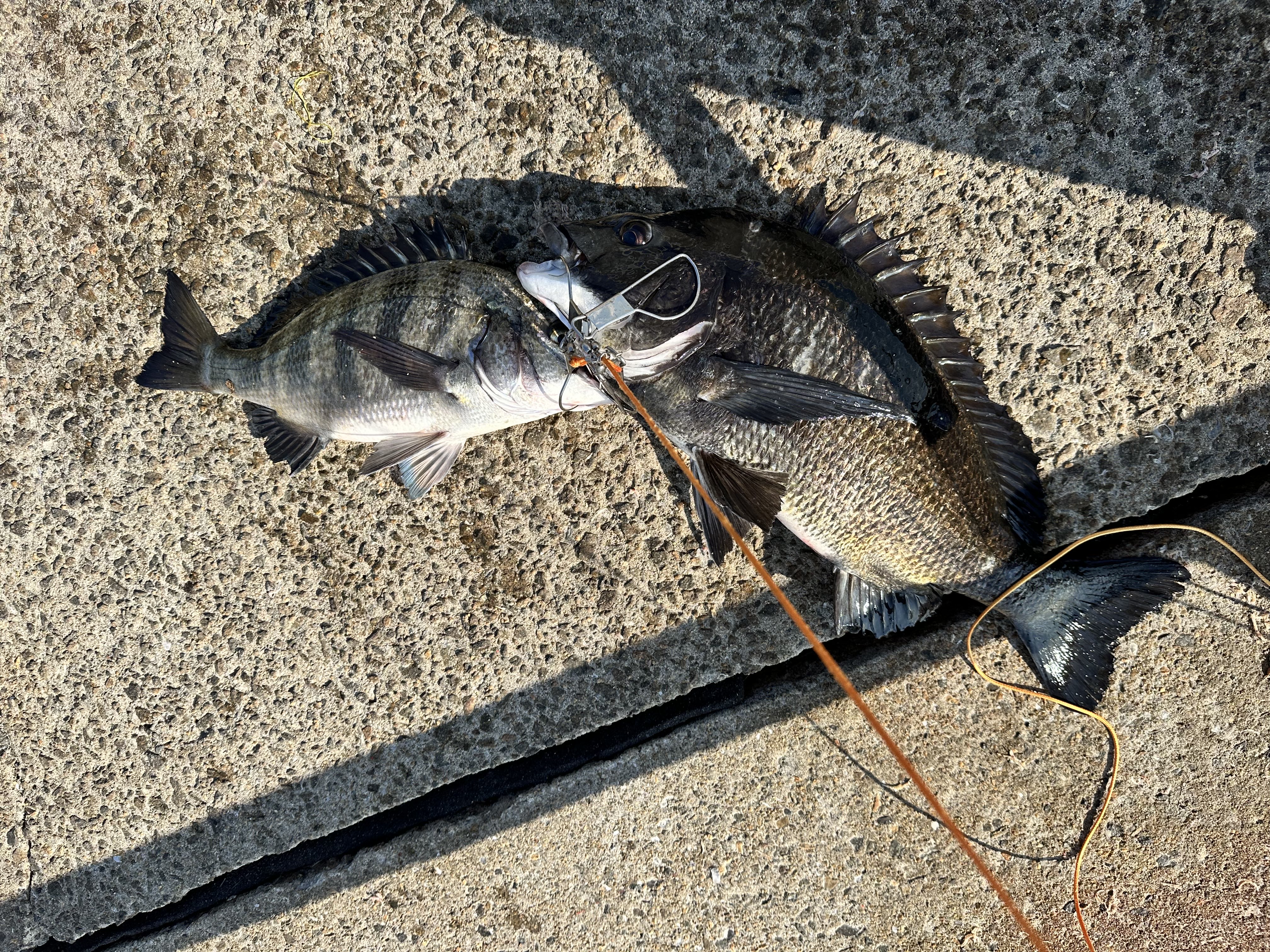 13時過ぎオキアミ餌の紀州釣にてチヌが釣れました。