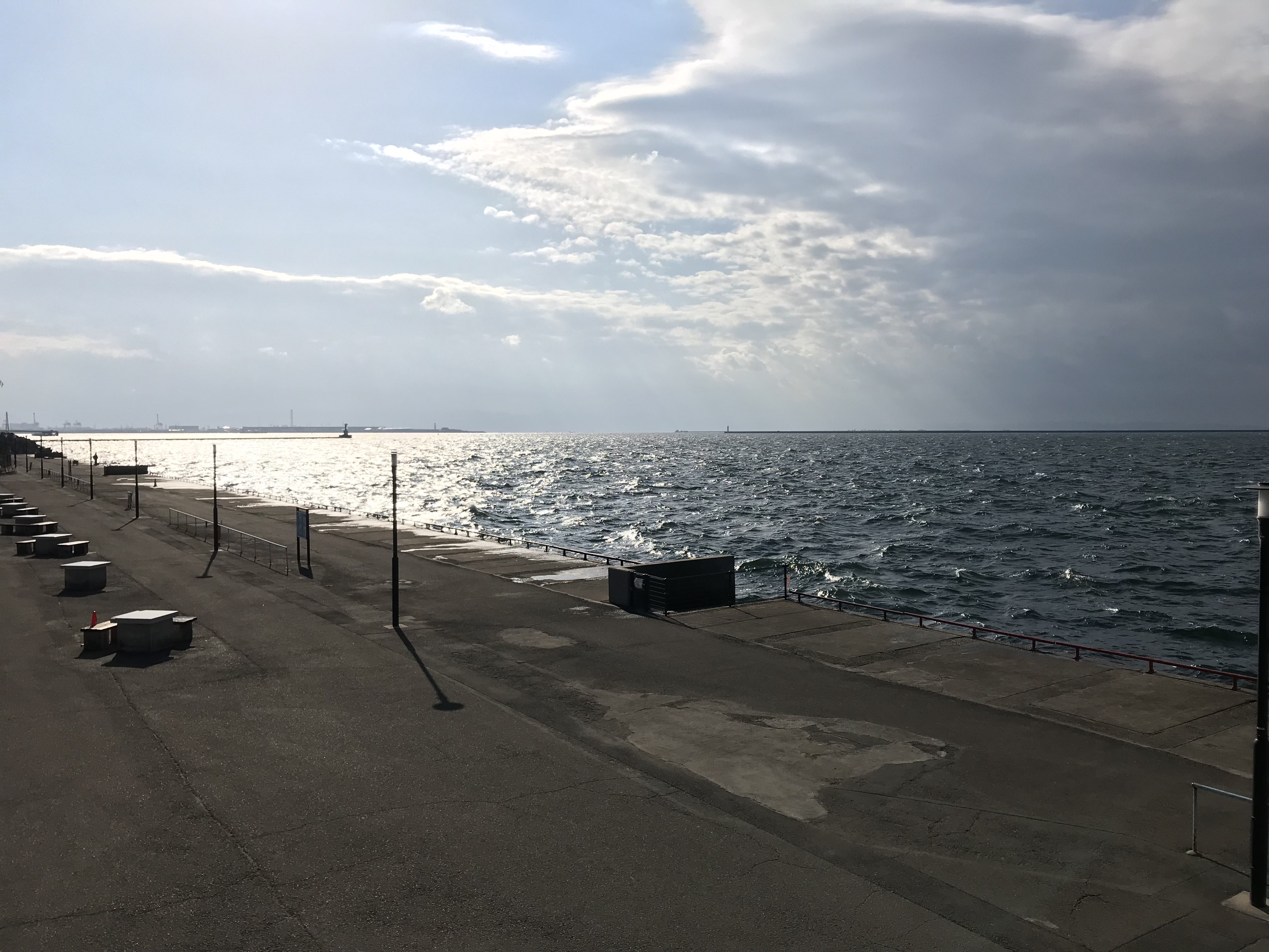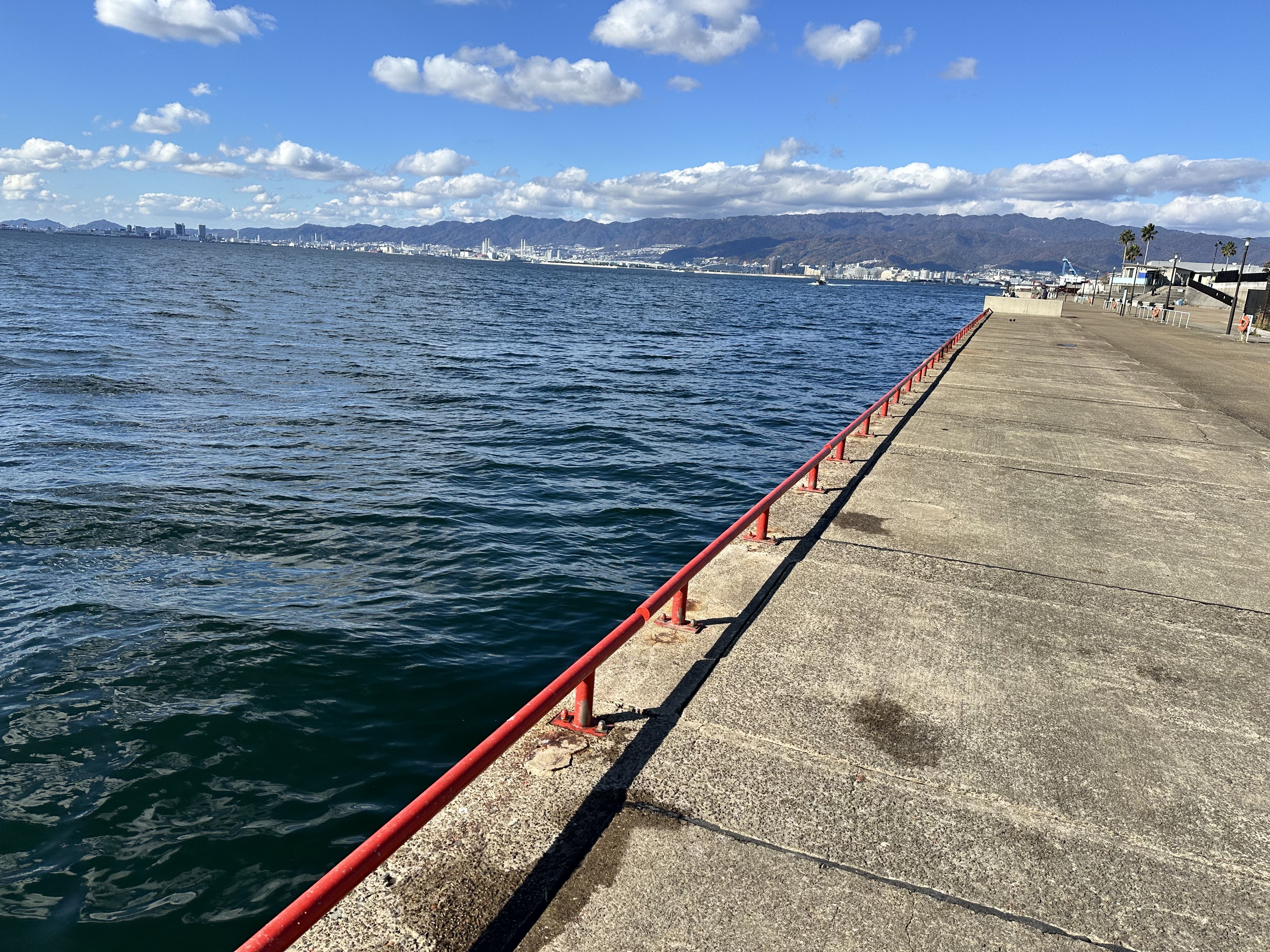 12月になって、すっかり冬らしくなった鳴尾浜です。風速、3m/s西、気温、14℃鳴尾浜です。お客様は全部で8名いらっしいます。先程、サヨリが釣れました。全部で25匹ぐらいでしょうか?夕方に期待したいです。
