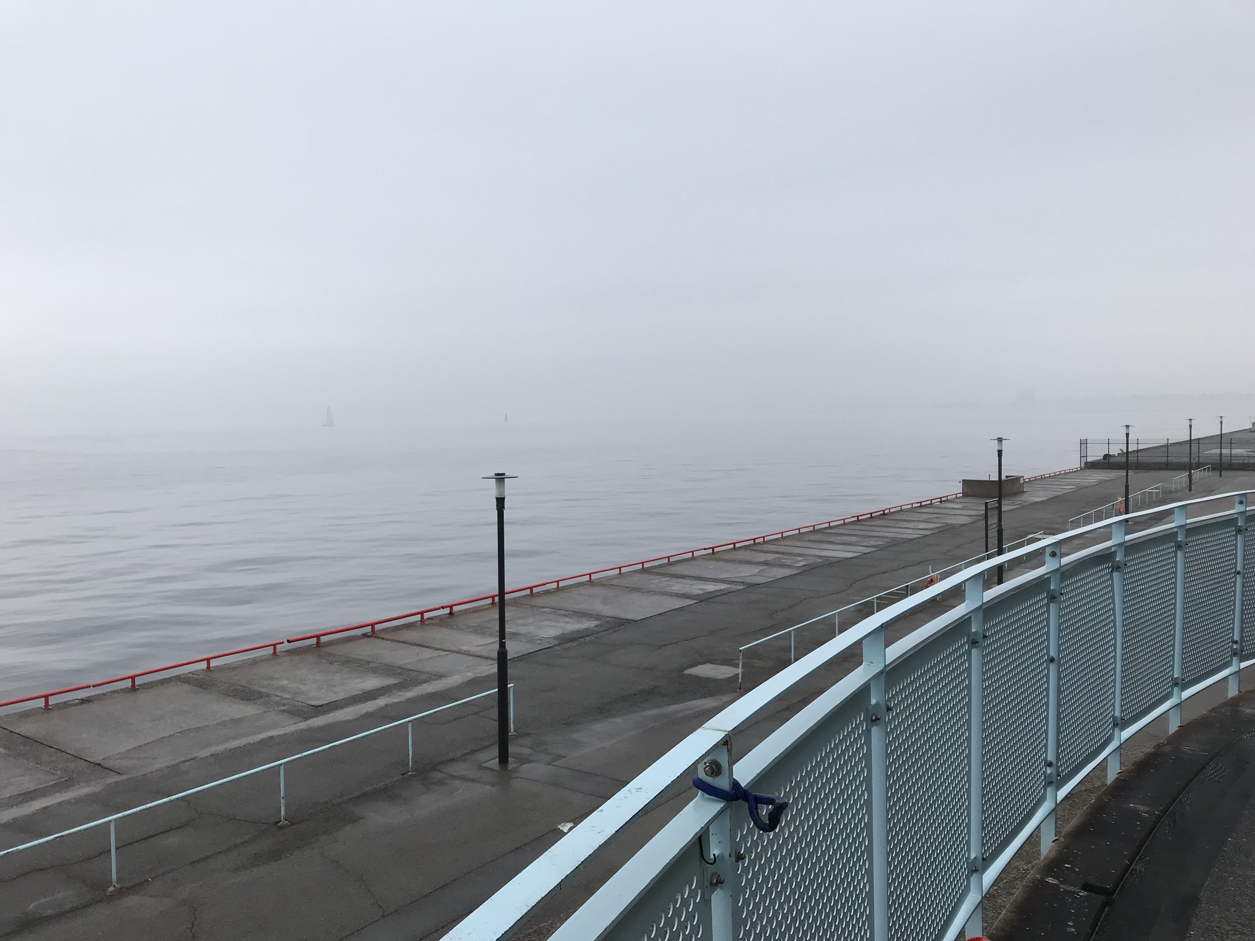 今日は珍しく濃い霧が覆われて、沖の一文字もほとんど見えない状態です。ご来場少なく釣果は確認できず。