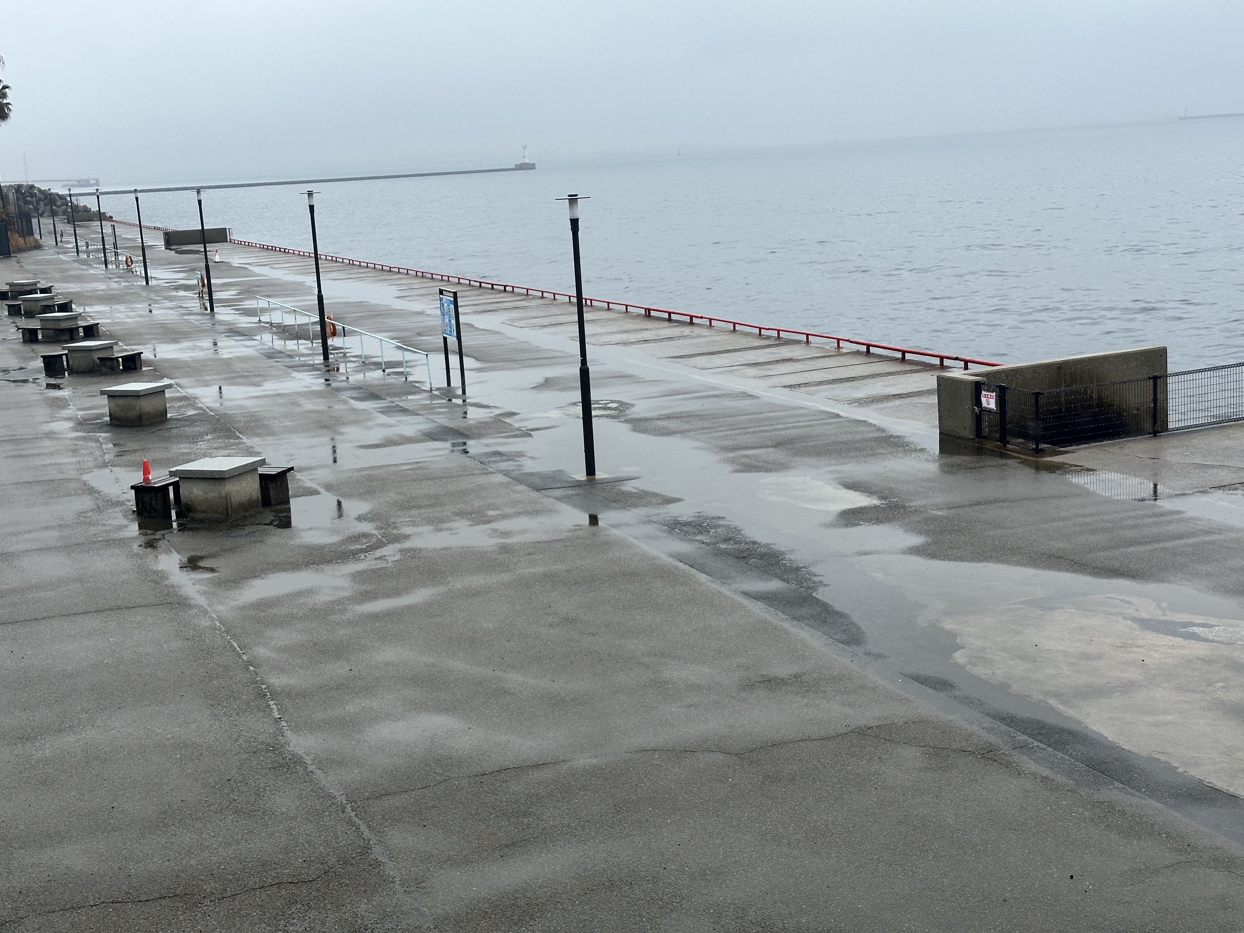 開園時、小雨が降っています。北からの風6m/s 波は穏かです。
