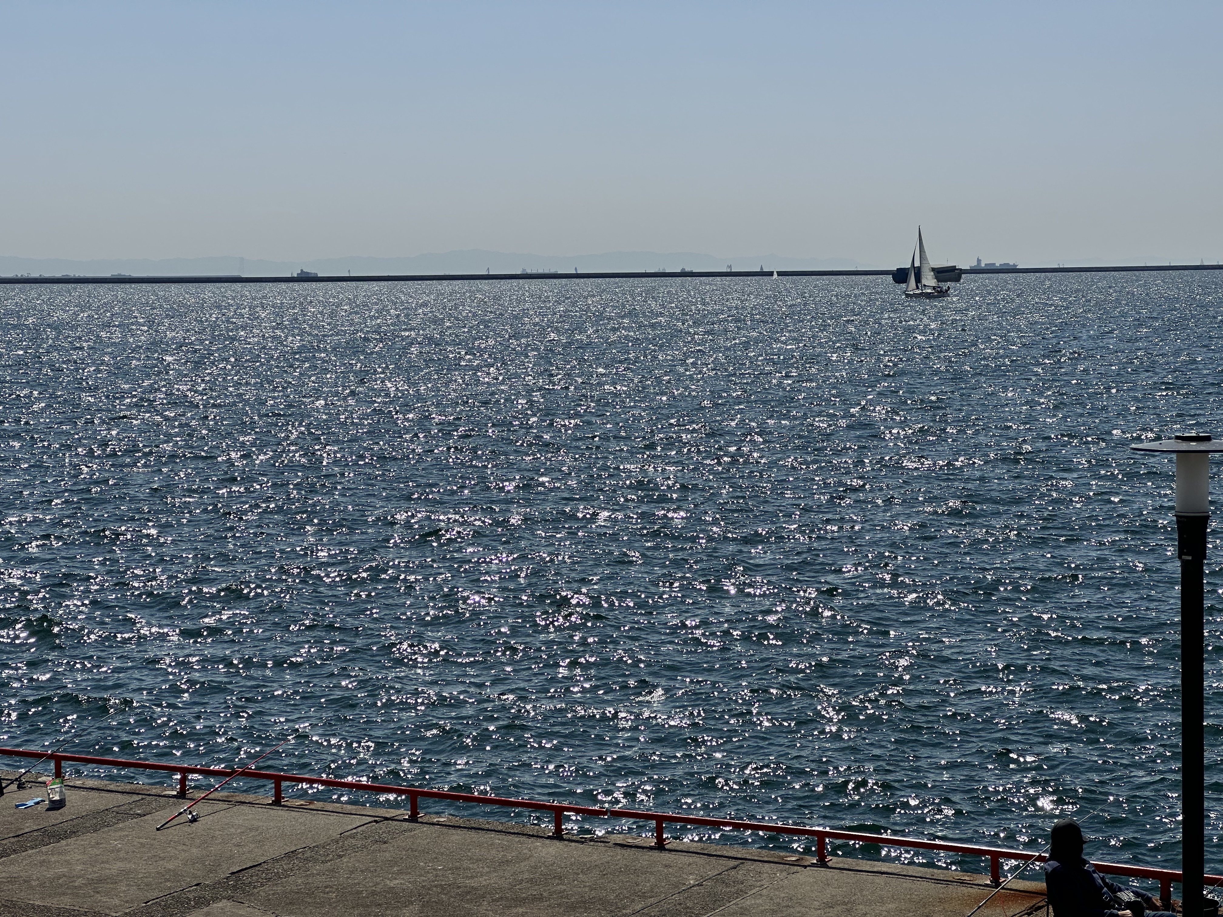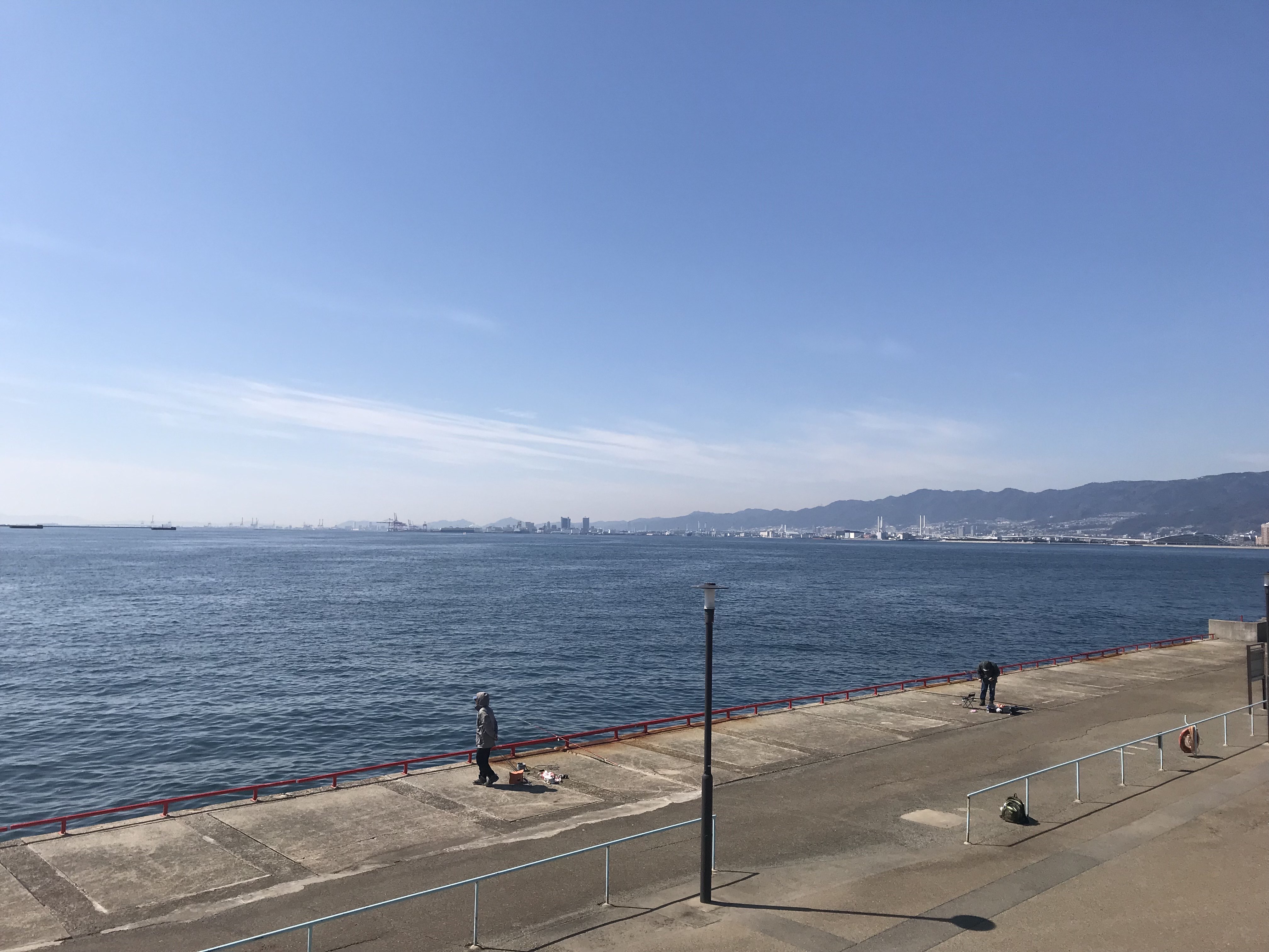 大変暖かく、12時半現在も風が無く釣りがしやすい鳴尾浜です。