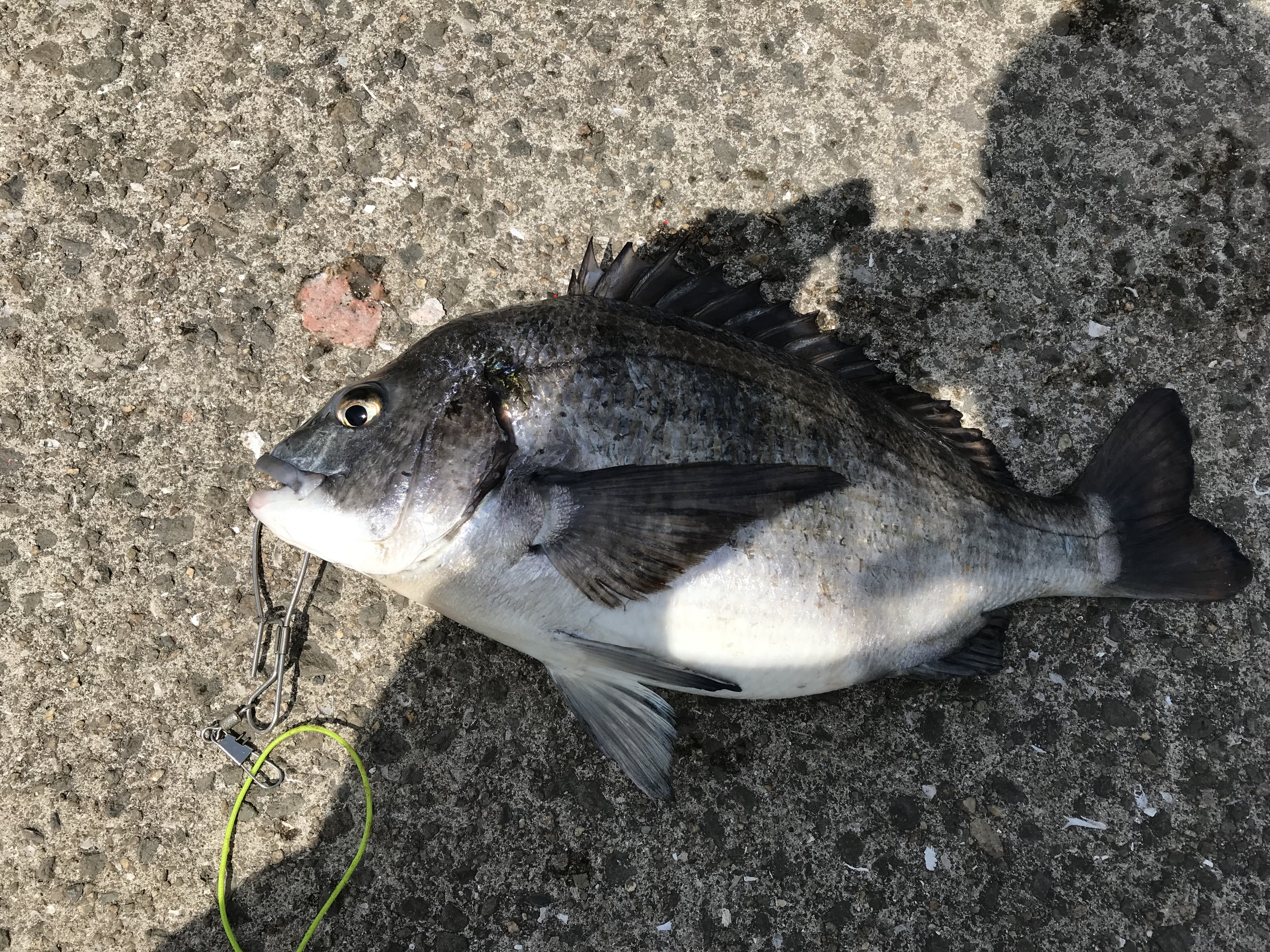 午前中にオキアミ餌のフカセ釣でチヌが釣れていました。