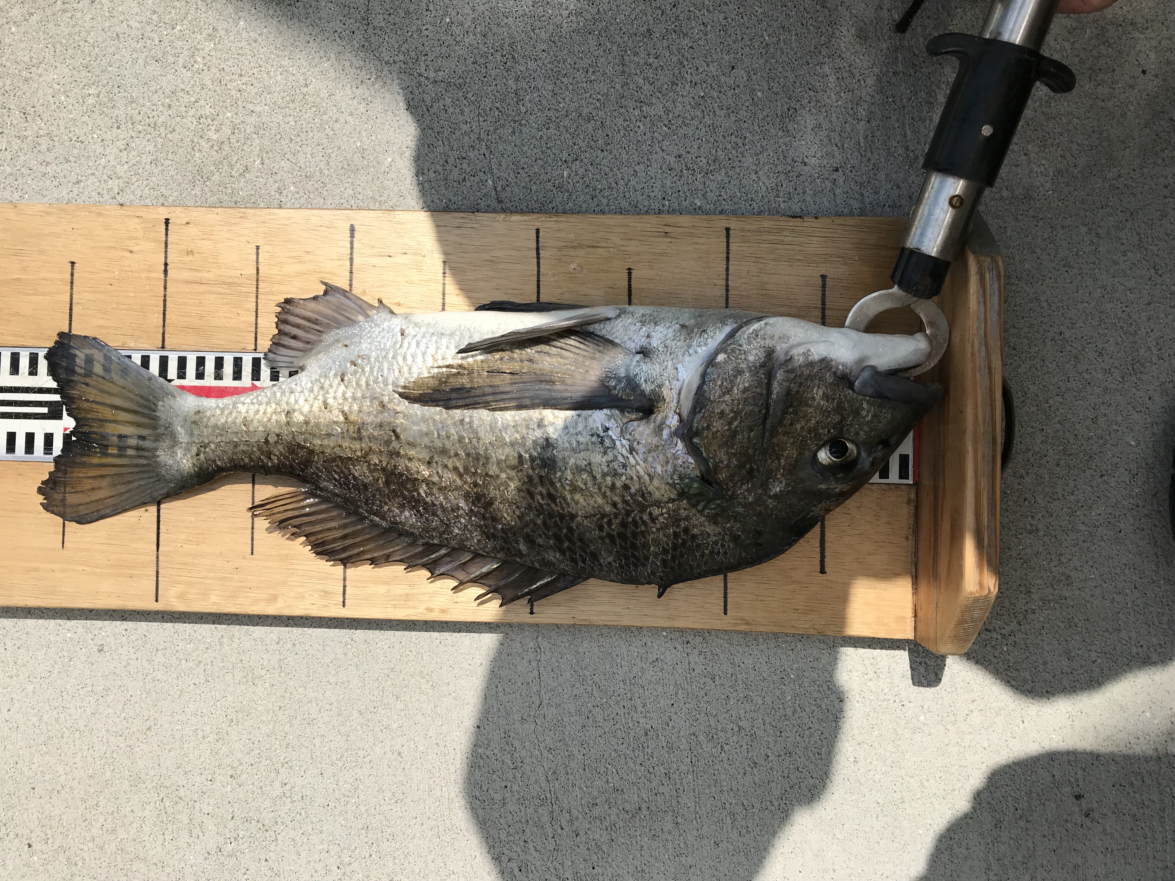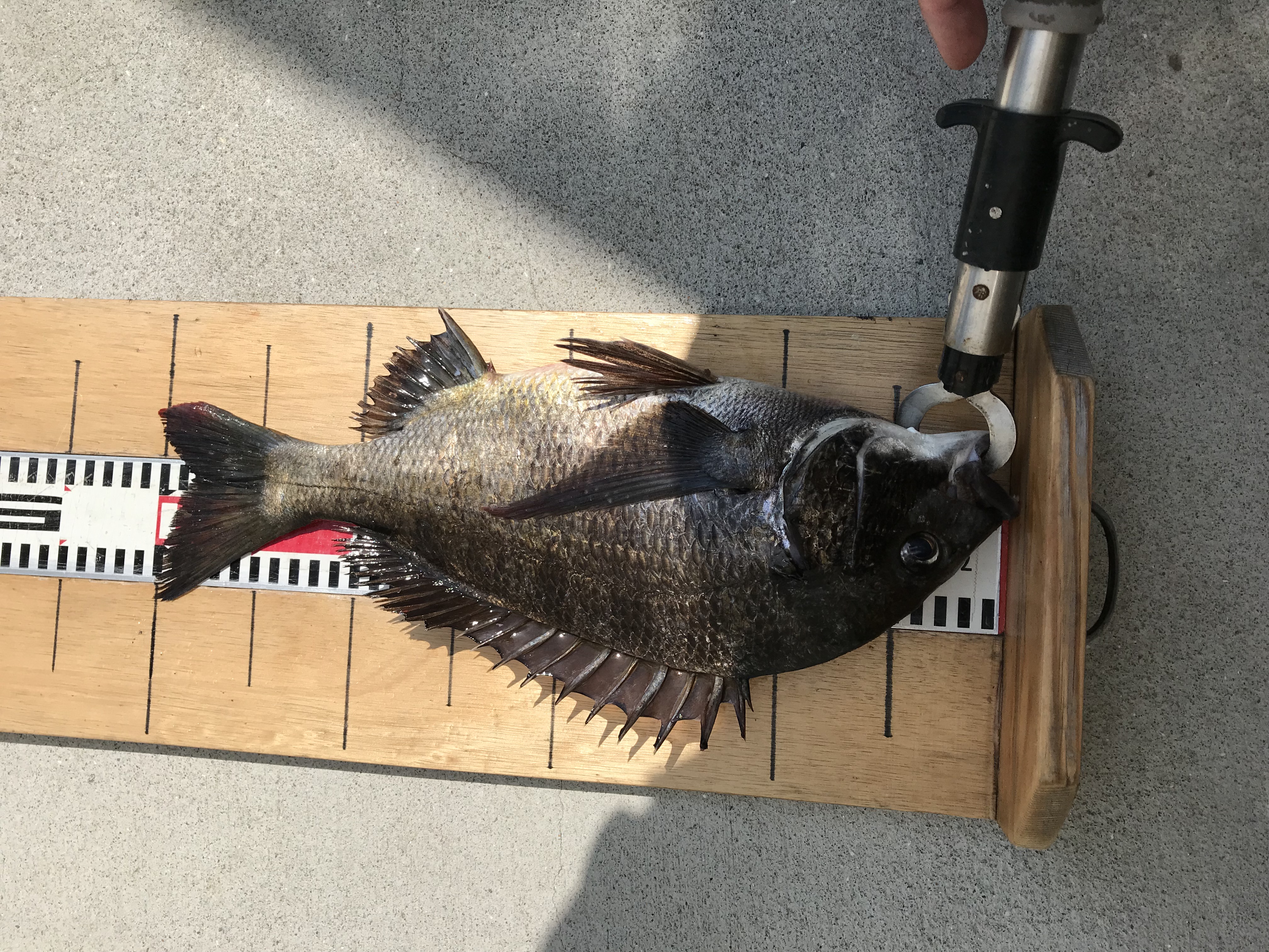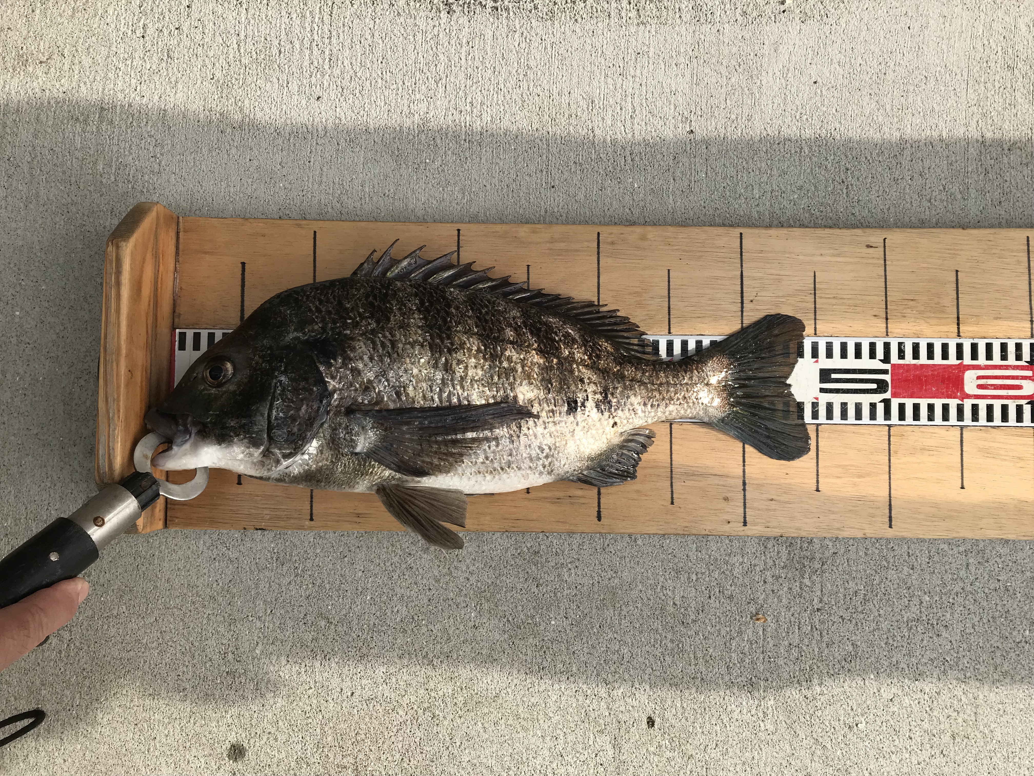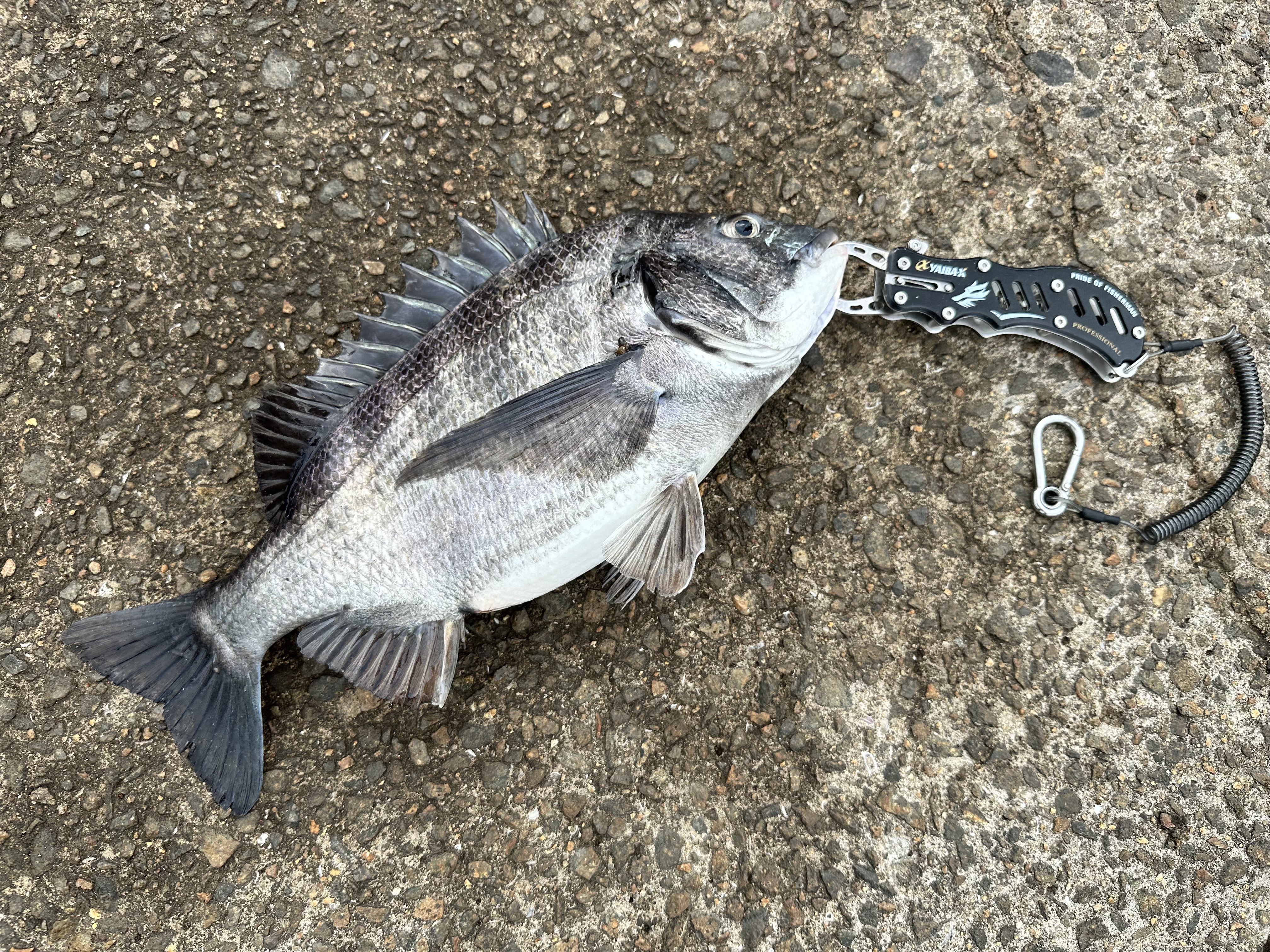 12時過ぎに落とし込みの方がチヌ44cmをあげられました(餌フジツボ)大物賞登録です。