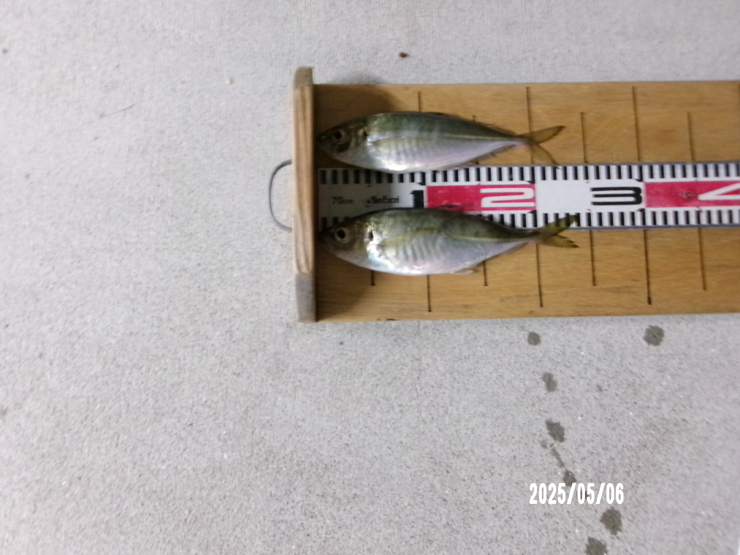 夕方5時になりました。厳しい釣果ながら良型アジが2匹あがってます!