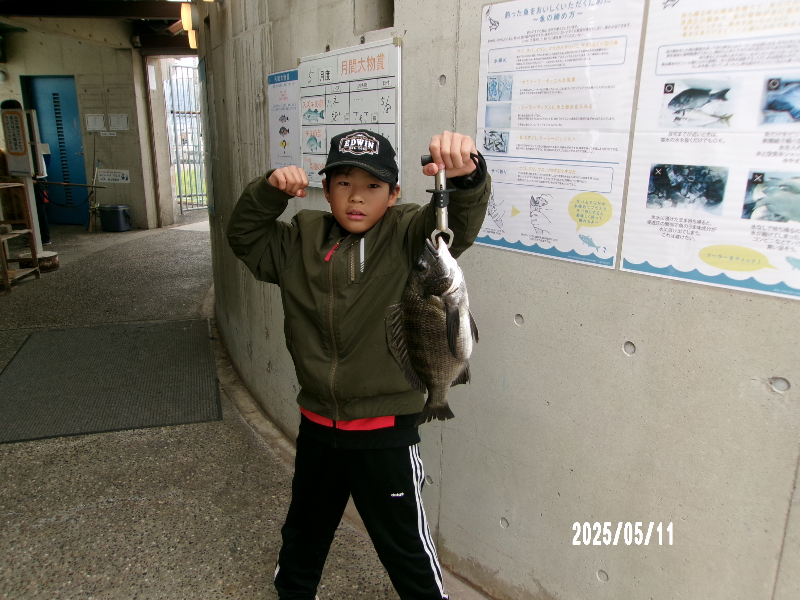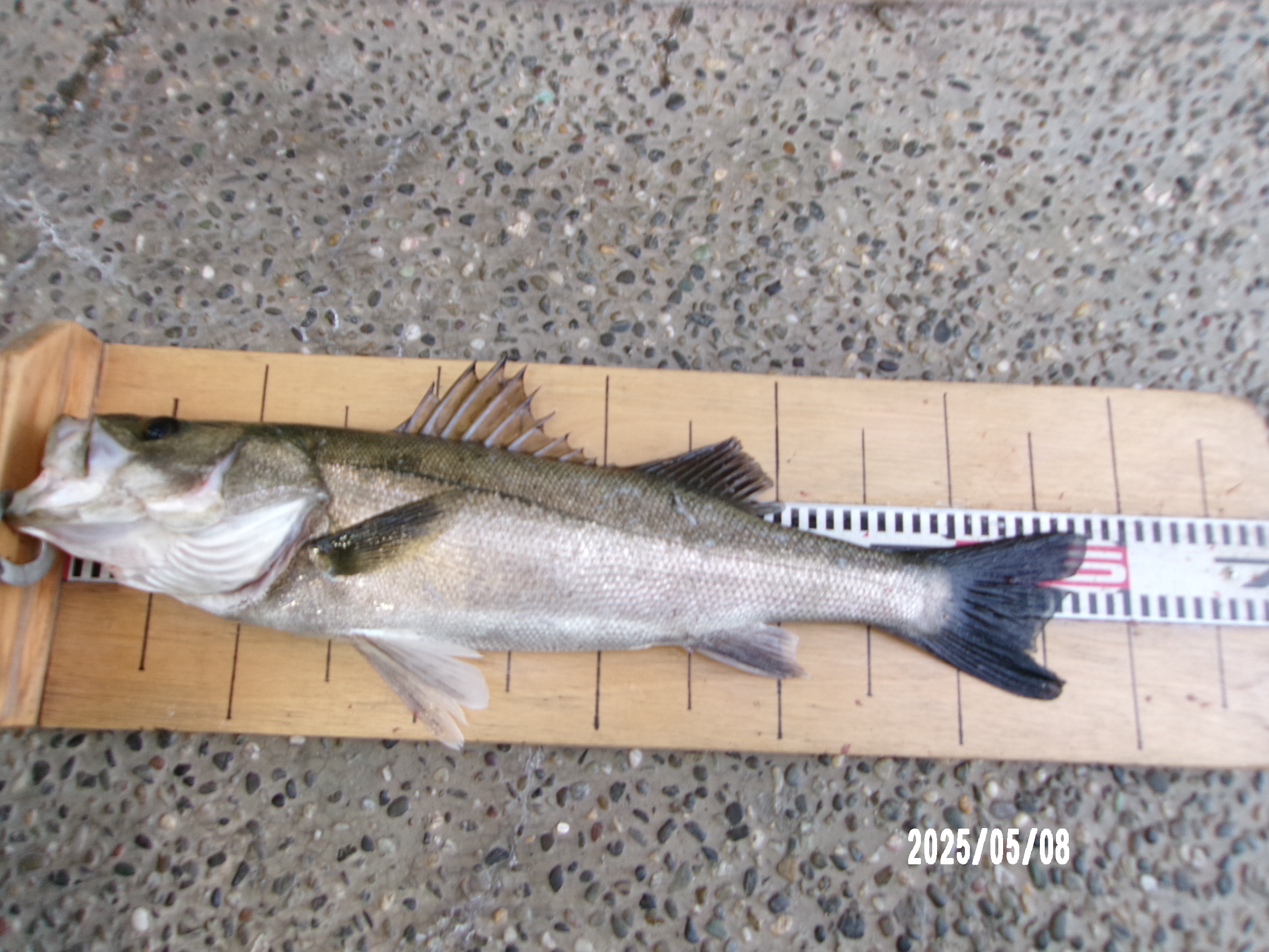 その後6時過ぎに西側でハネ58cmエサイソメであがりました。月間大物賞スズキの部登録されました。 -