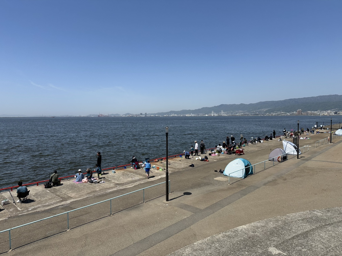 今朝の鳴尾浜は天気は良くありませんが波風は無く釣りやすい釣場でした。サビキはカタクチイワシが管理棟前で主にあがっています。フカセ釣りでチヌ、エビ撒き釣りでハネがあがっておりました。