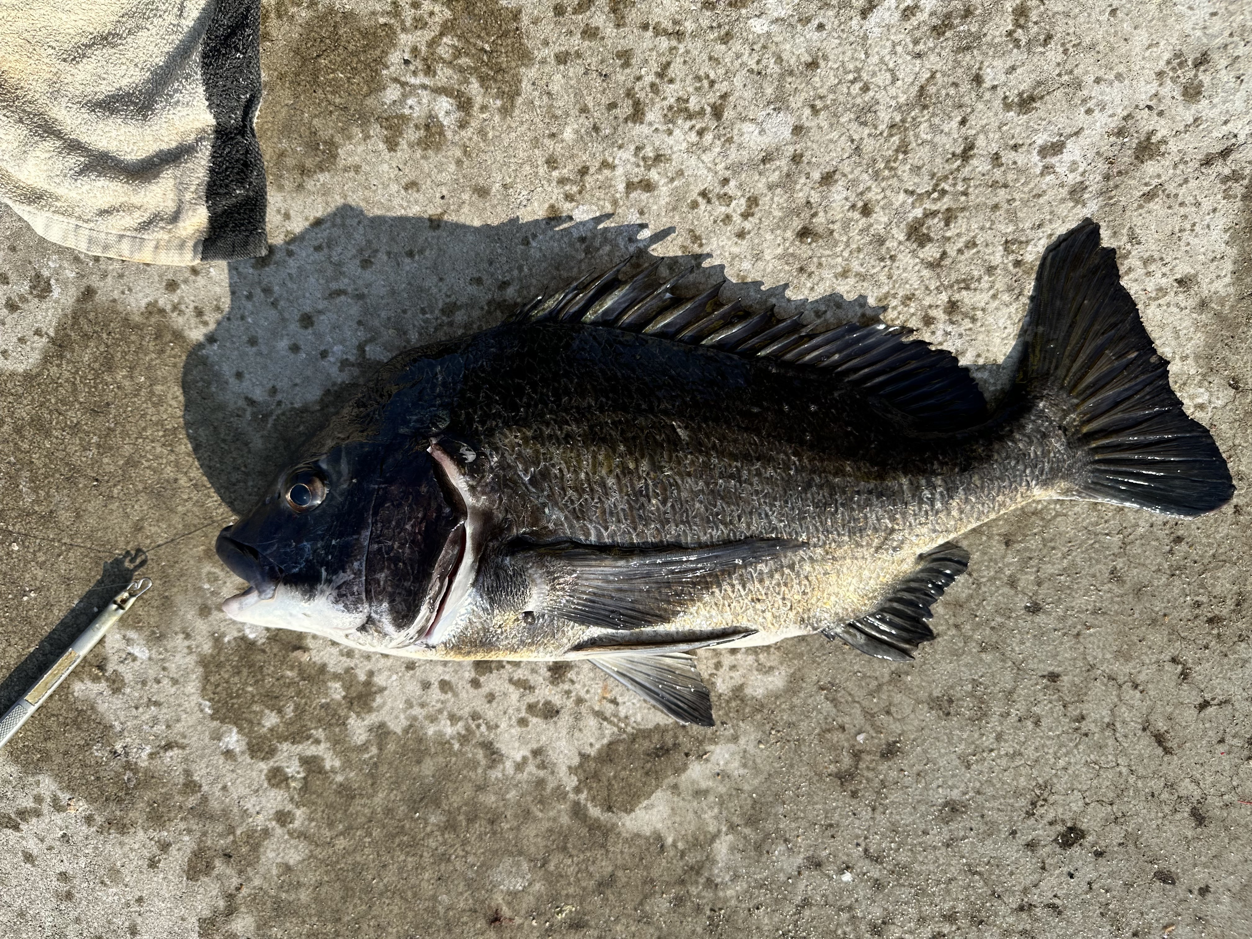 午前中、東の喫煙所前付近でのフカセ釣でチヌが2枚釣れていました。