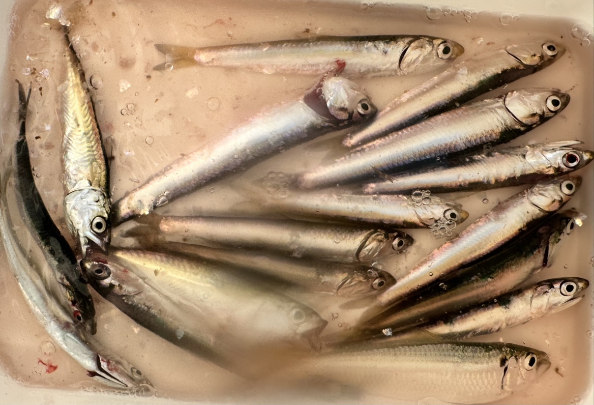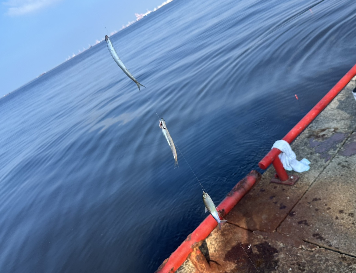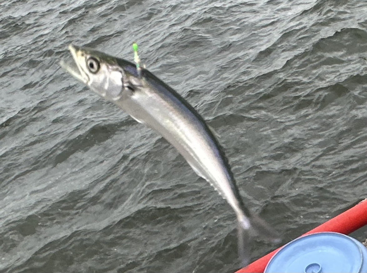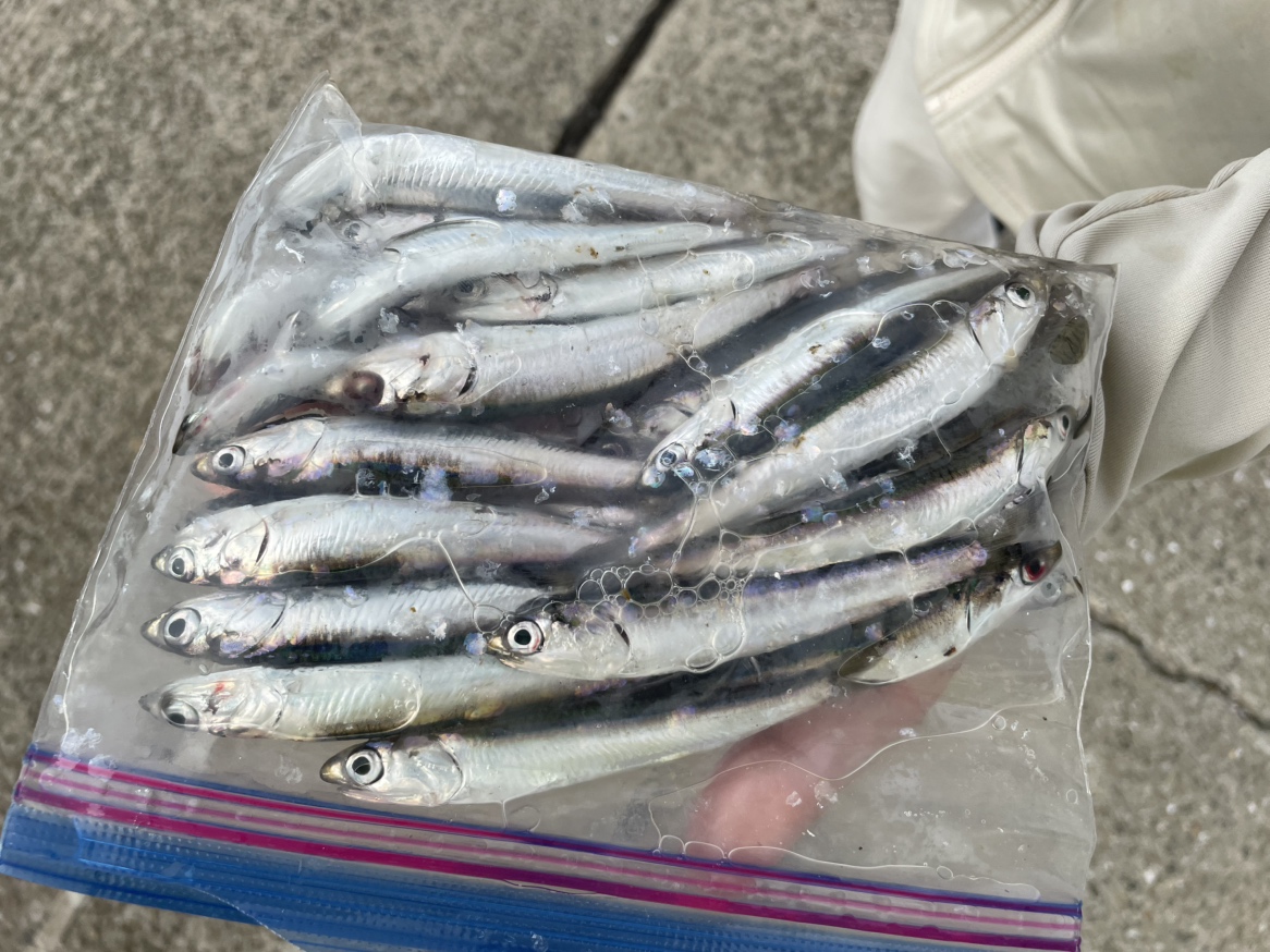 サビキで本日はカタクチイワシがぽつりぽつりと釣れています。