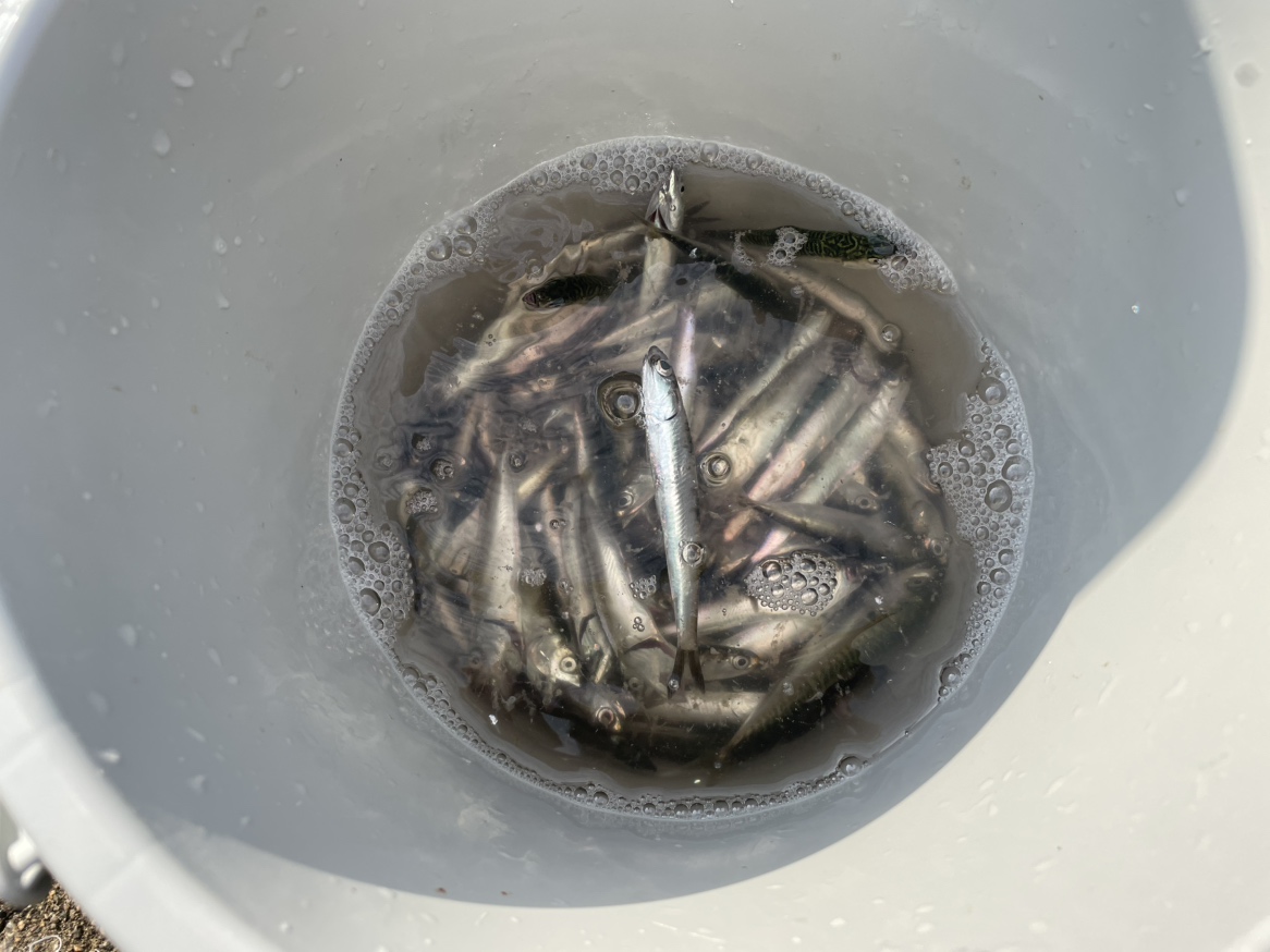カタクチイワシが多めで豆サバ、豆アジ、サッパ、サワラの子が釣れています。