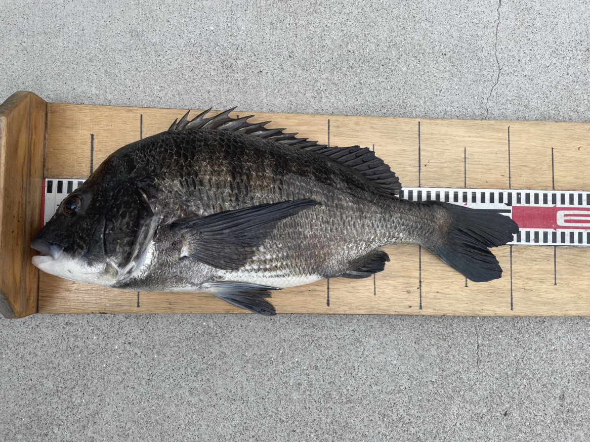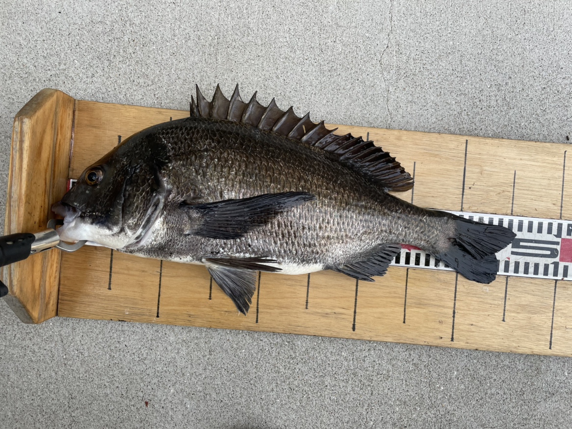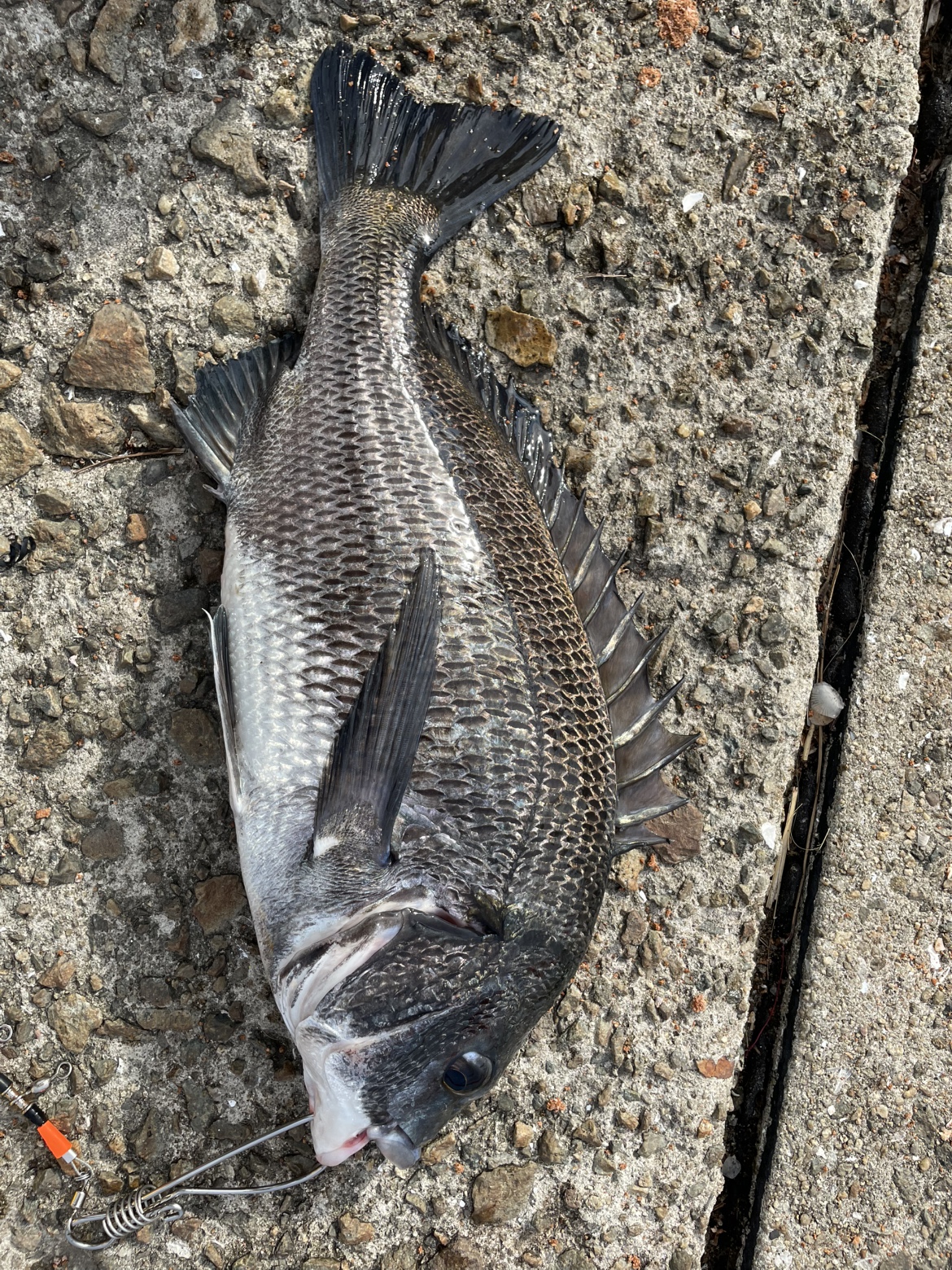 赤イソメを餌にズボ釣りで43cmのチヌが釣れていました。