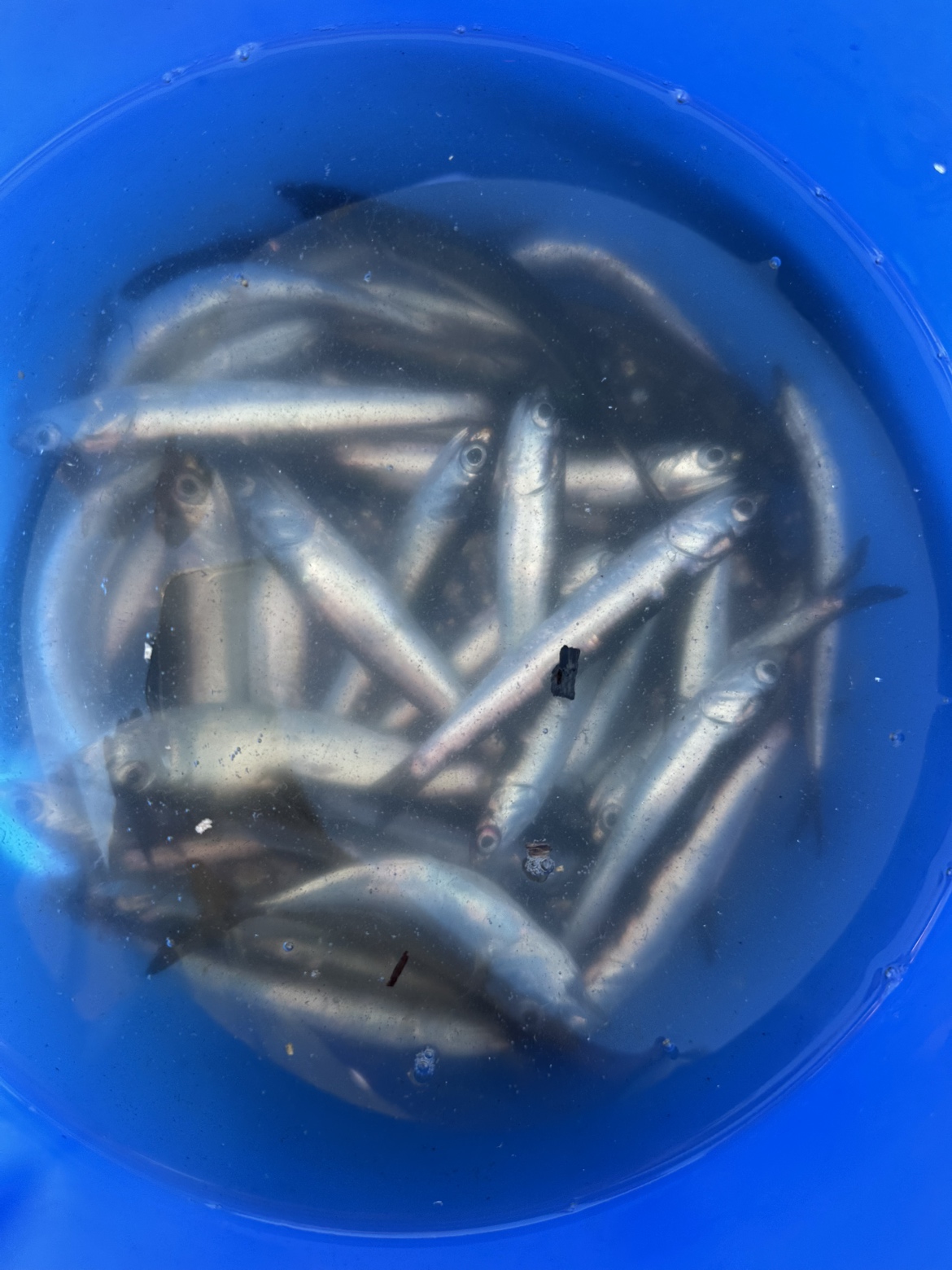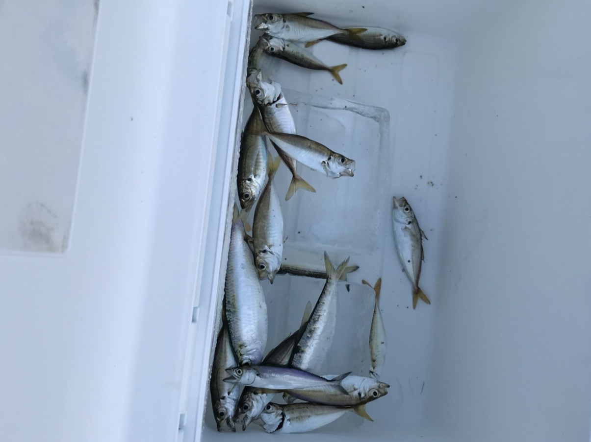 今朝は少しスロースタートで、早朝は豆アジとカタクチイワシが釣れていました。