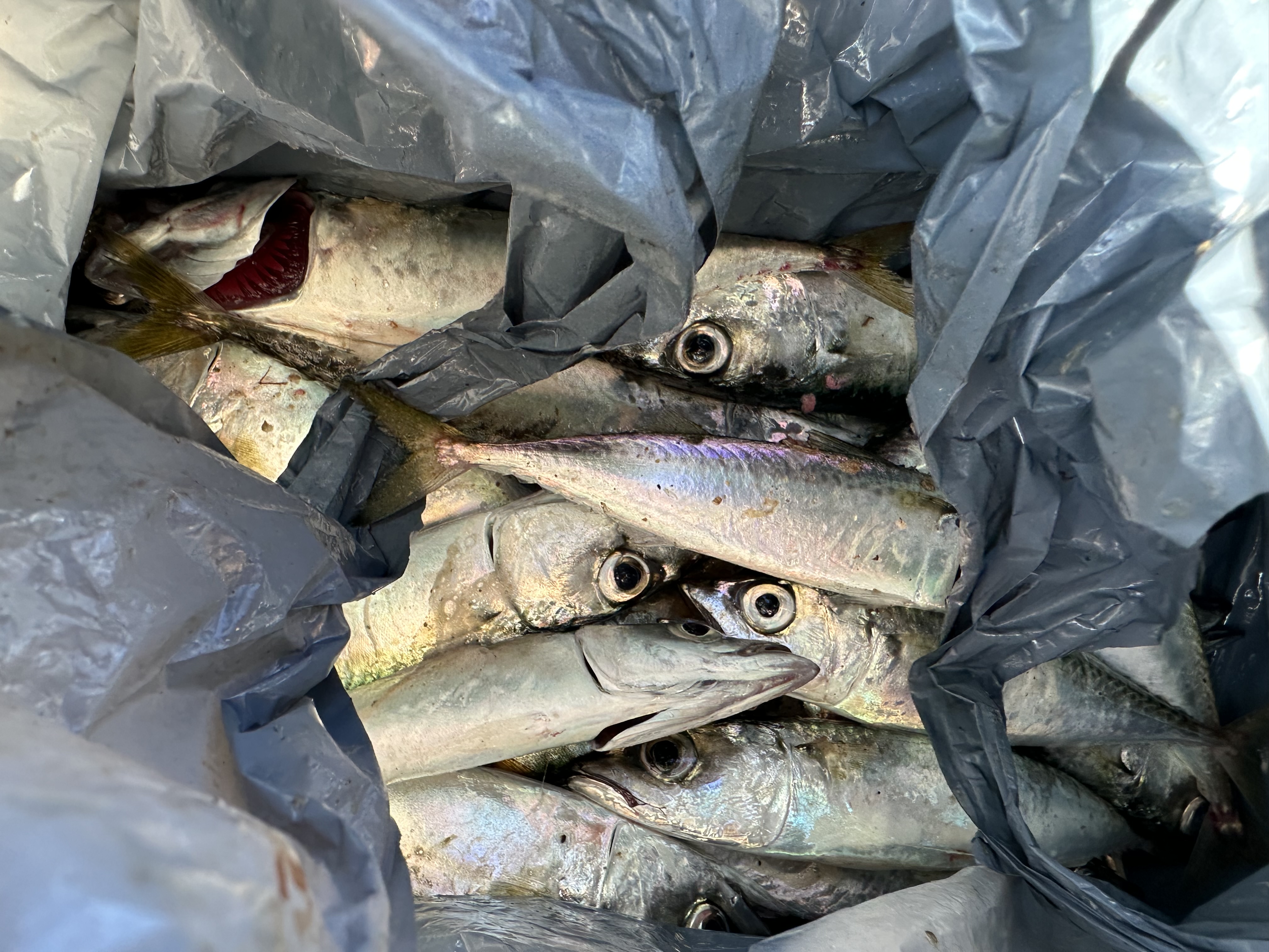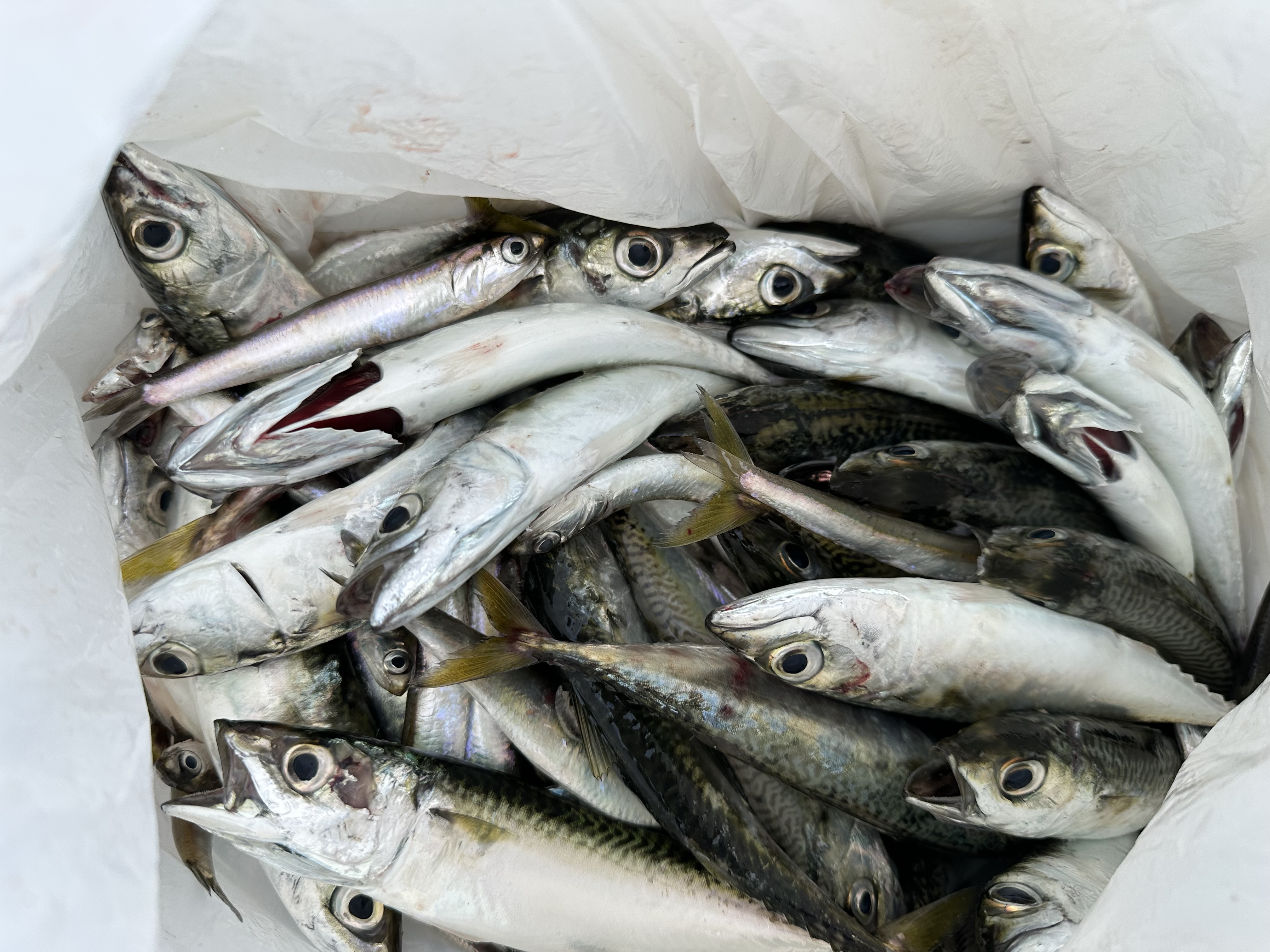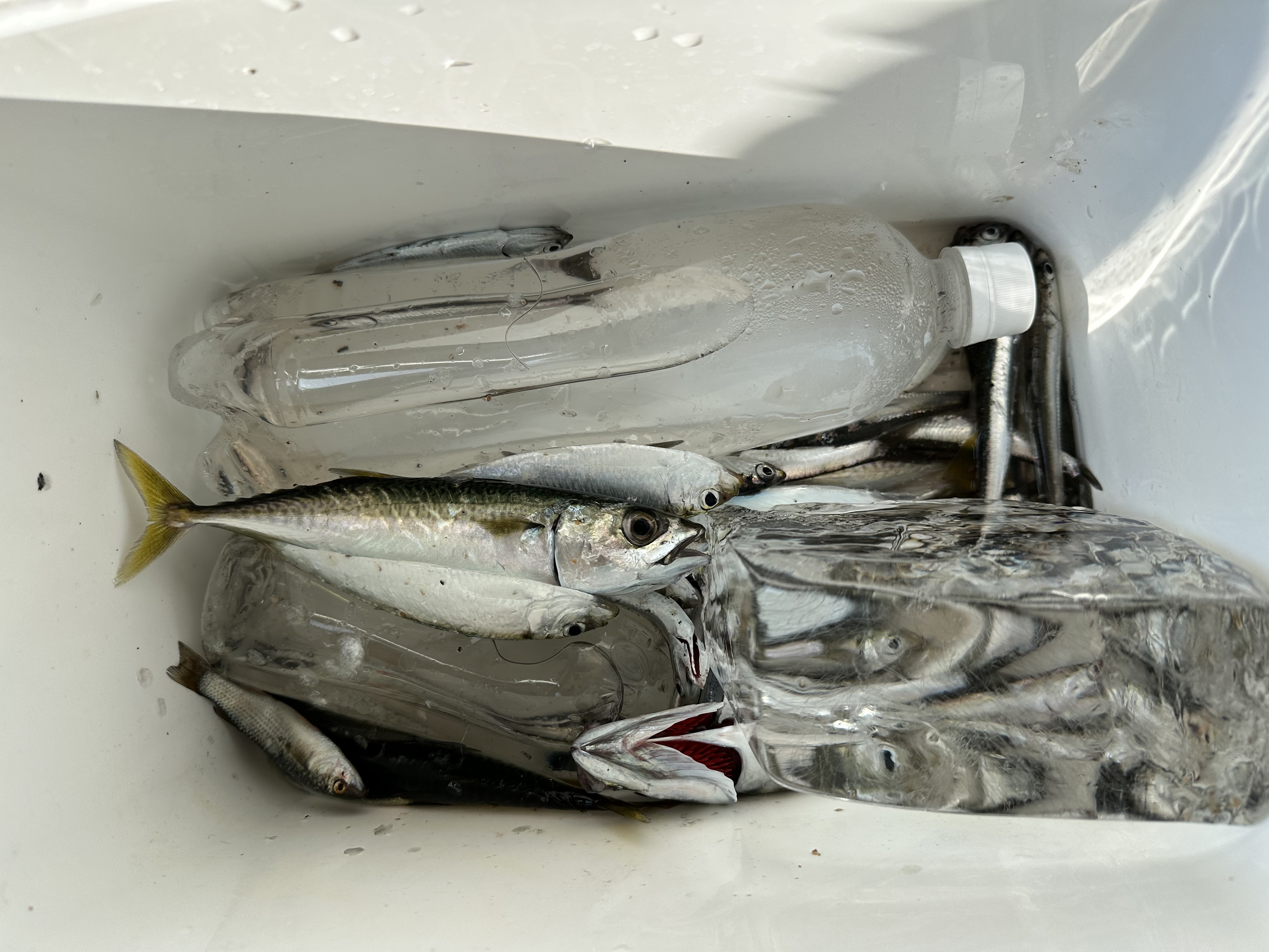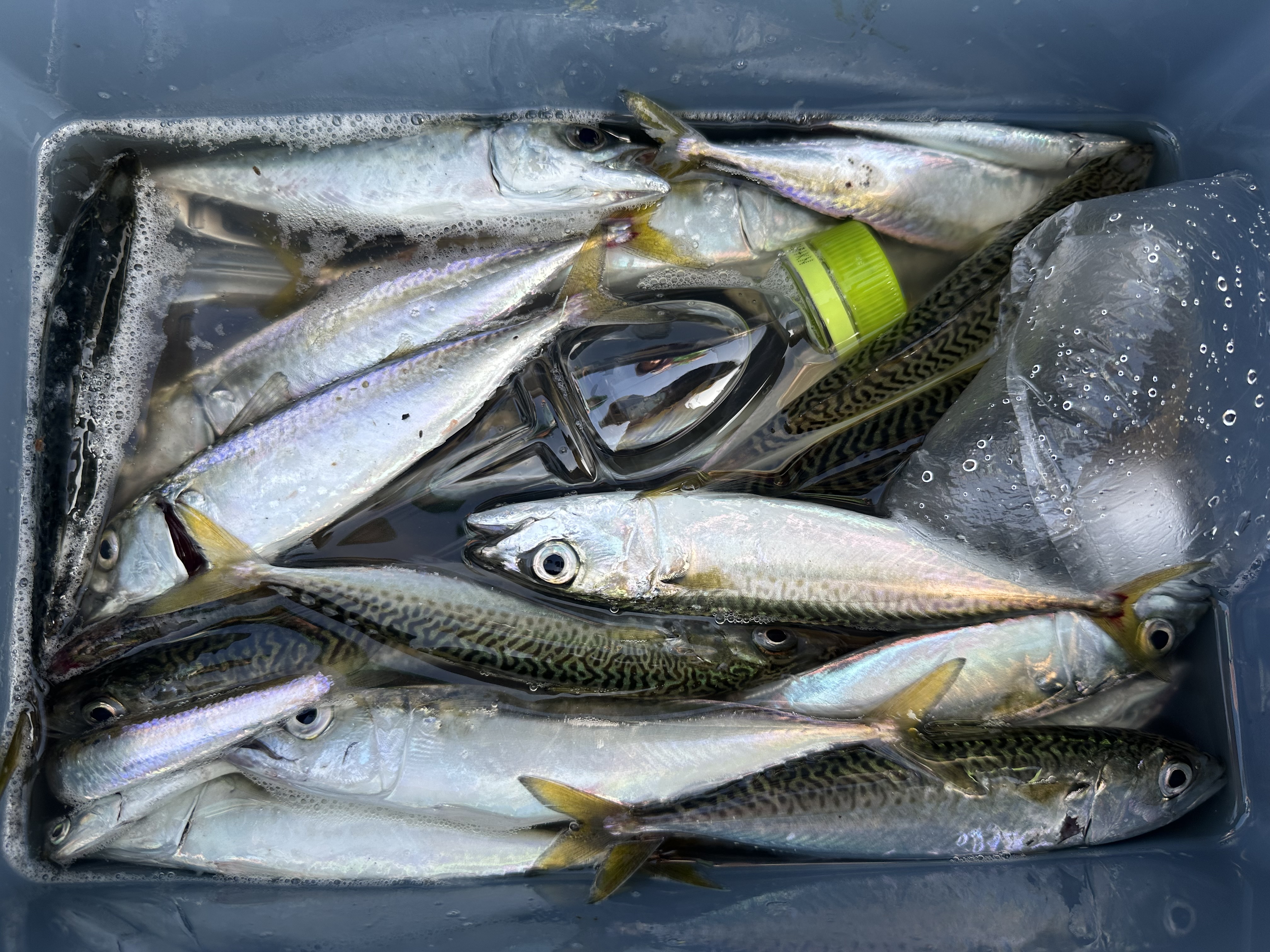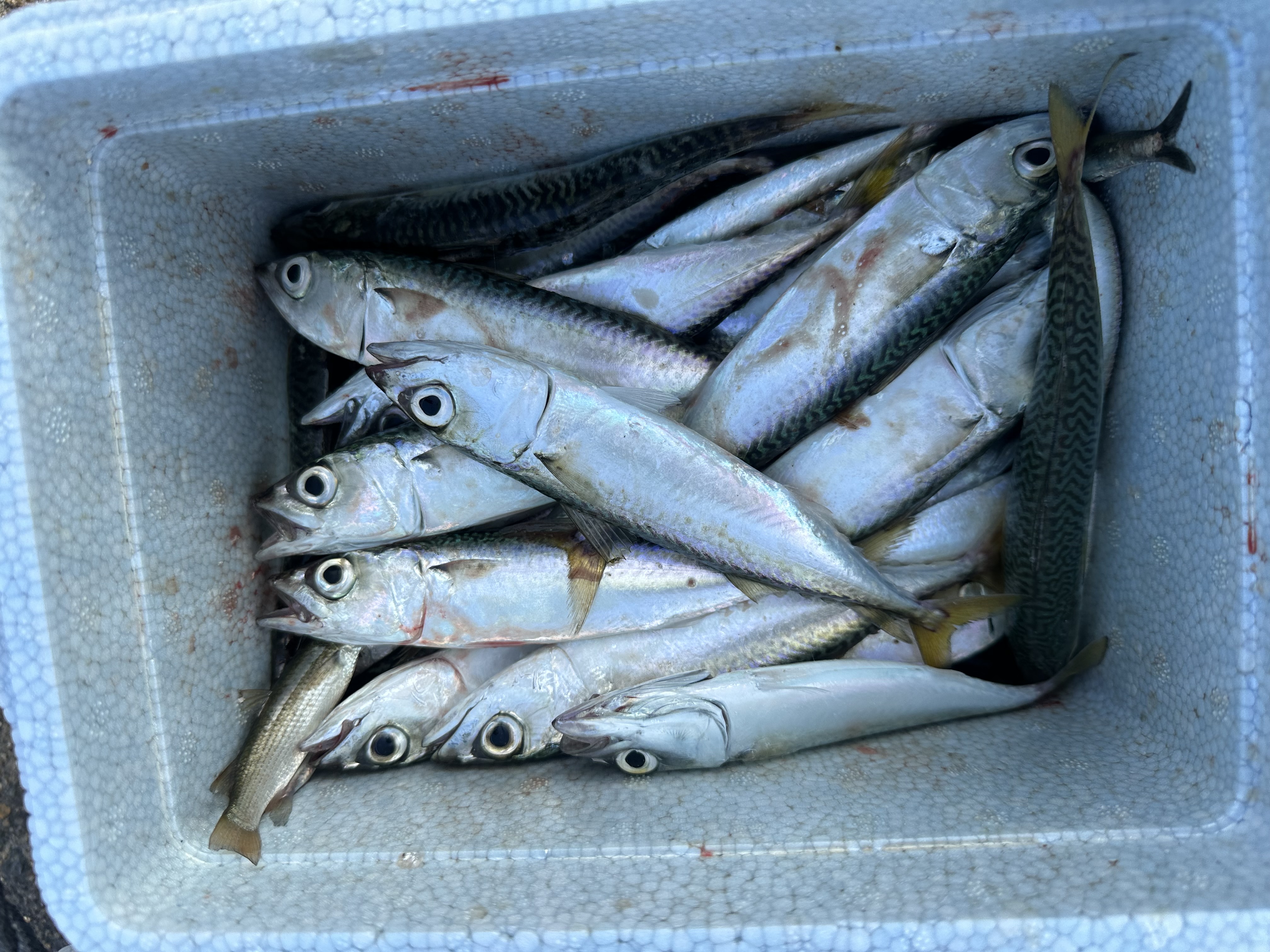 朝からここ最近の定番、カタクチイワシとサバが釣れています。