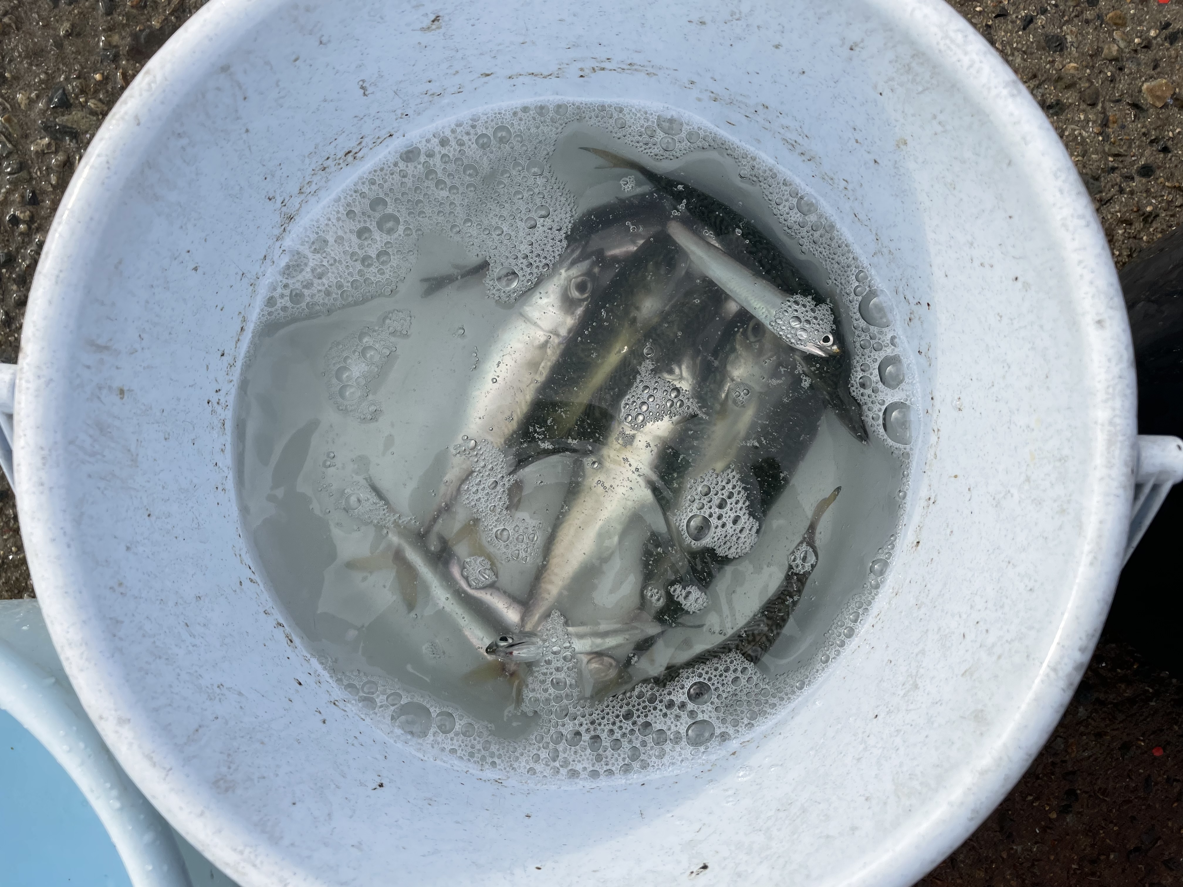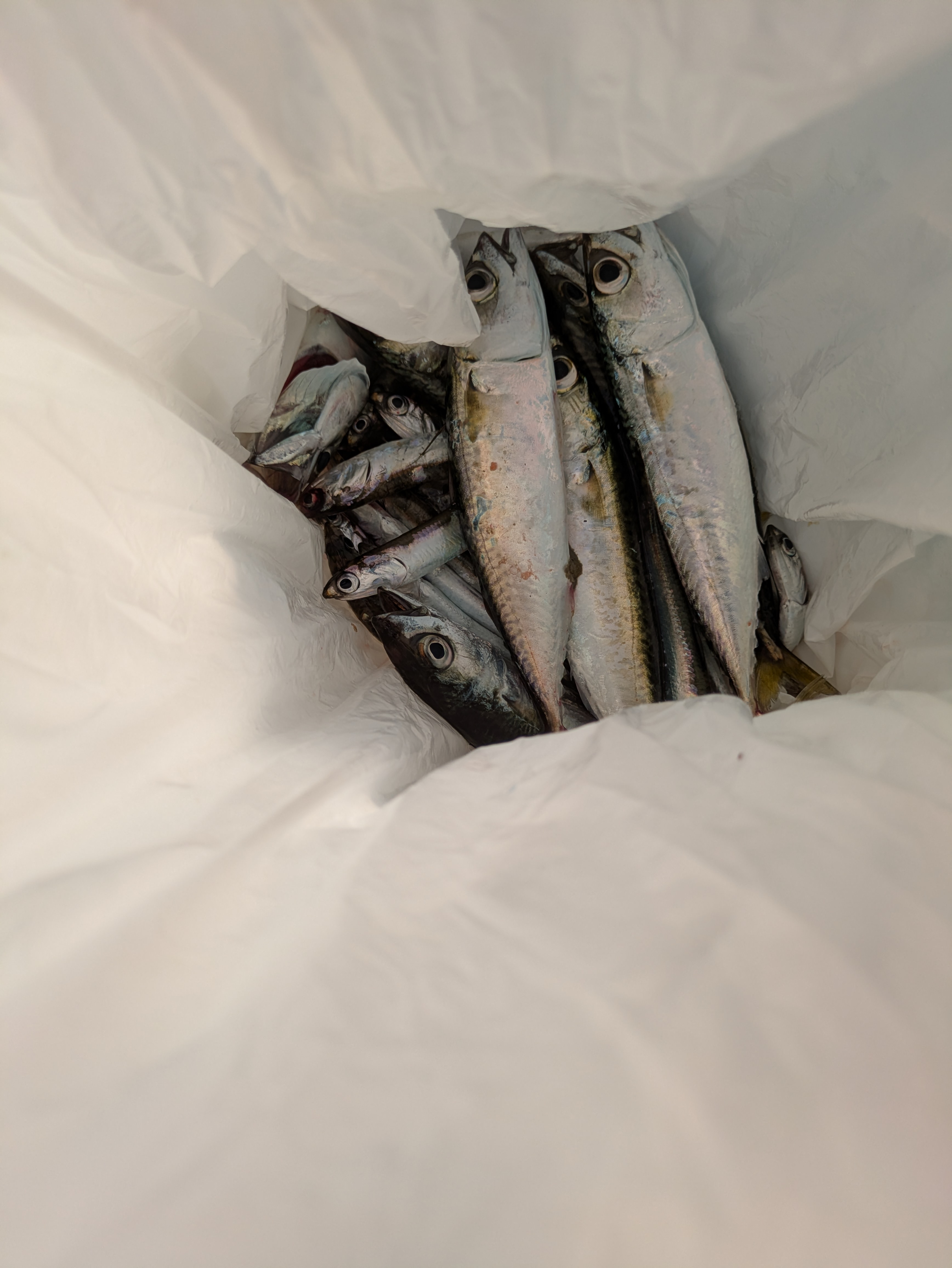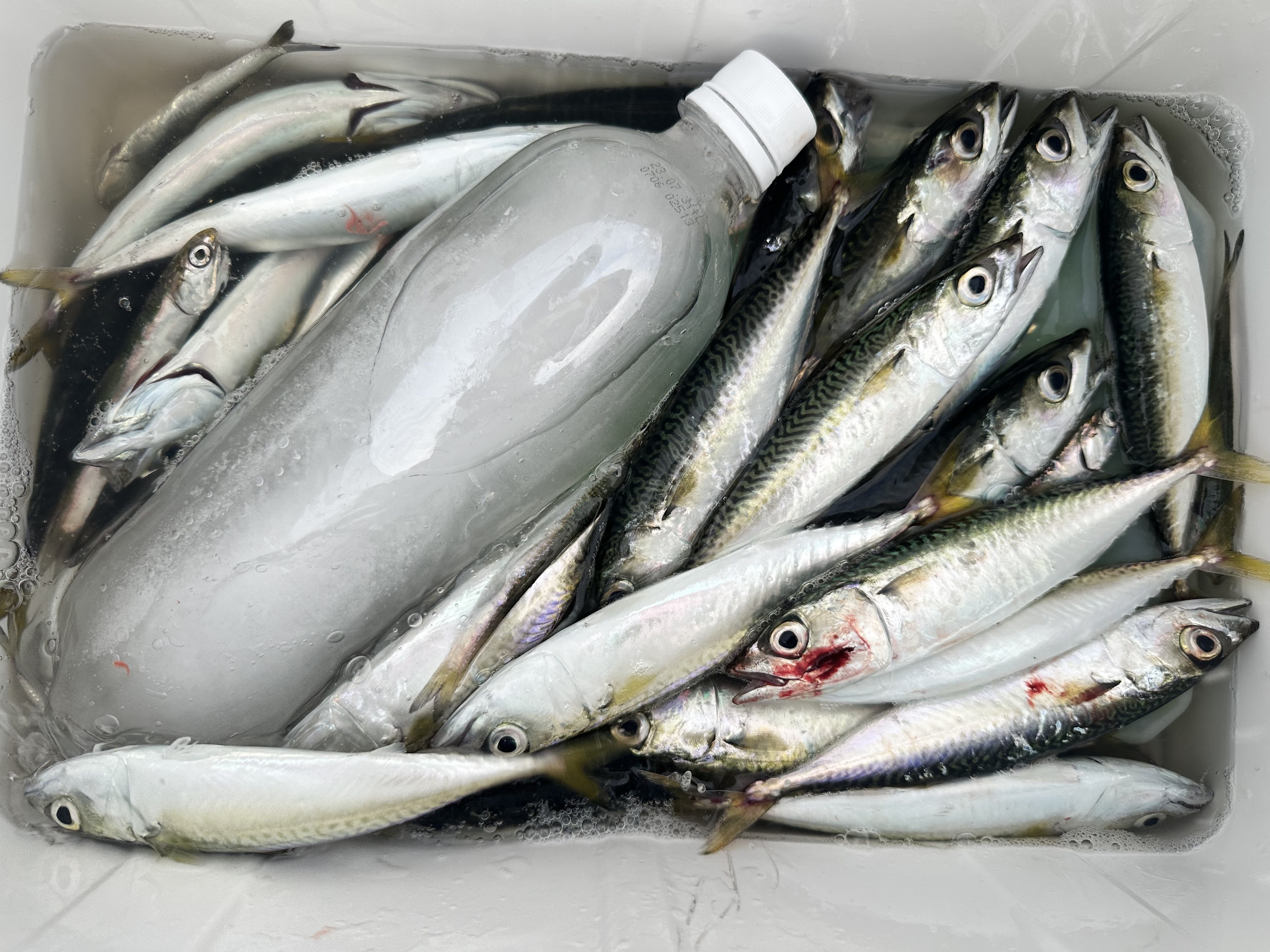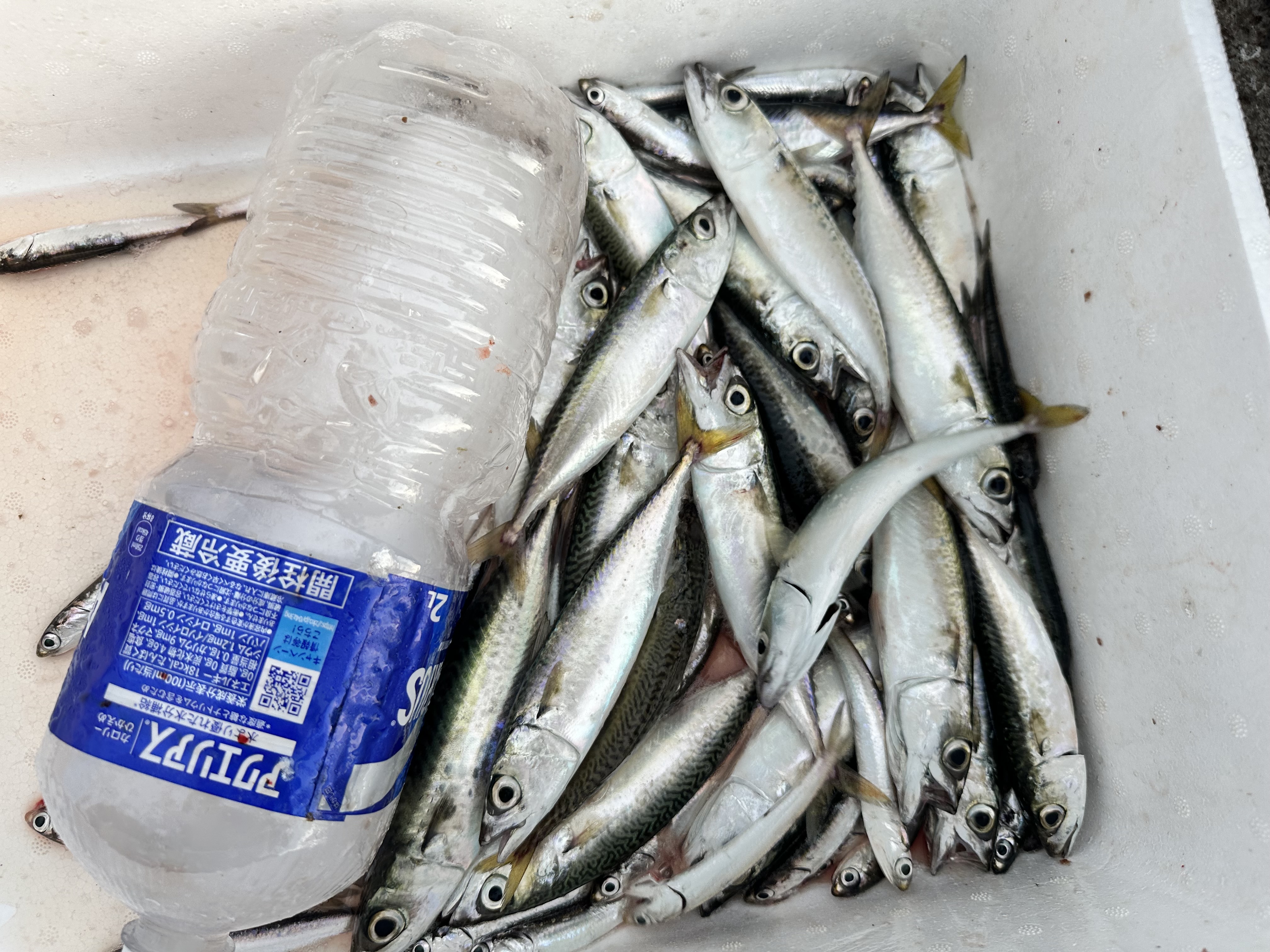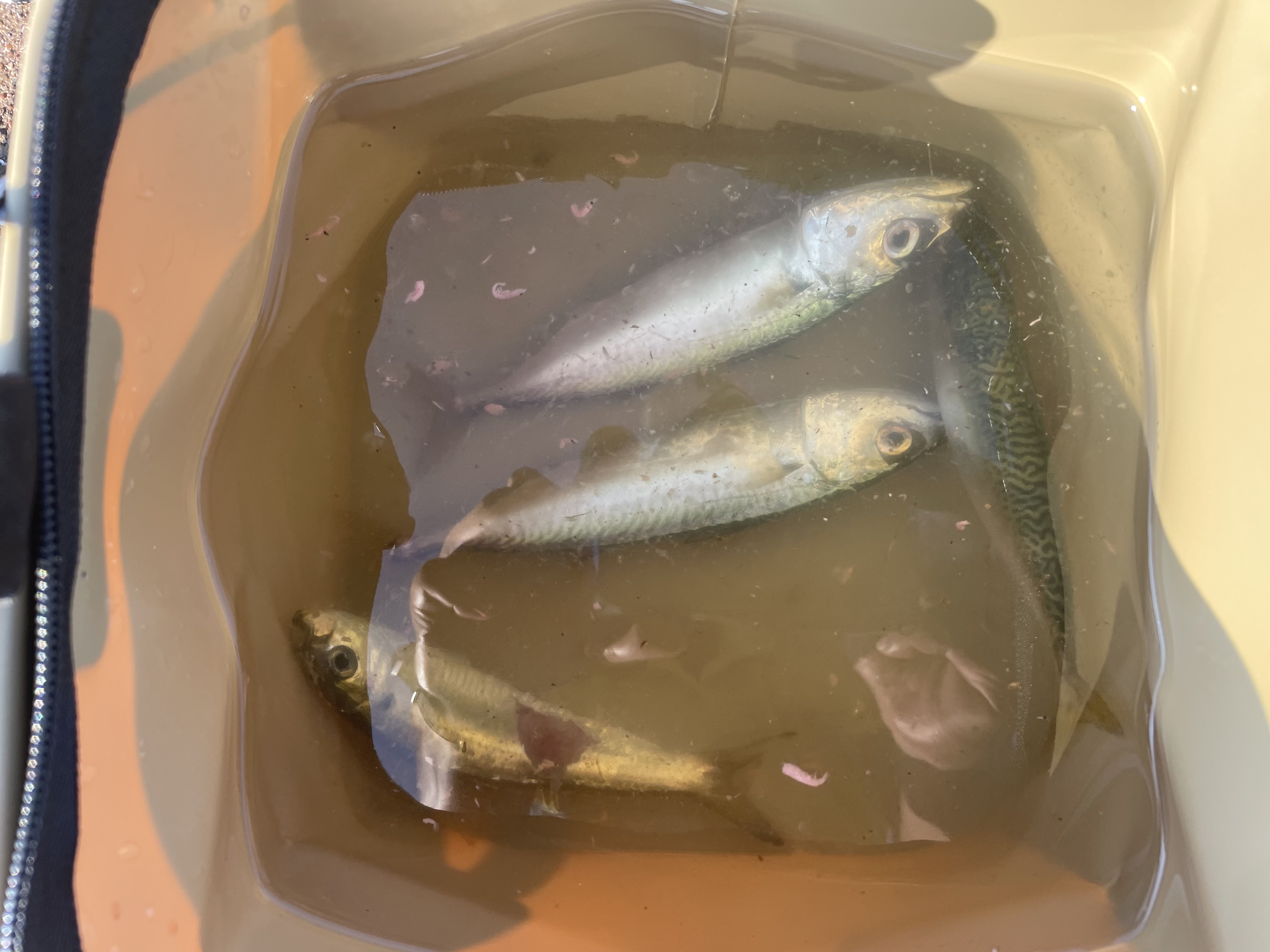 朝からここ最近の定番、カタクチイワシとサバが釣れています。