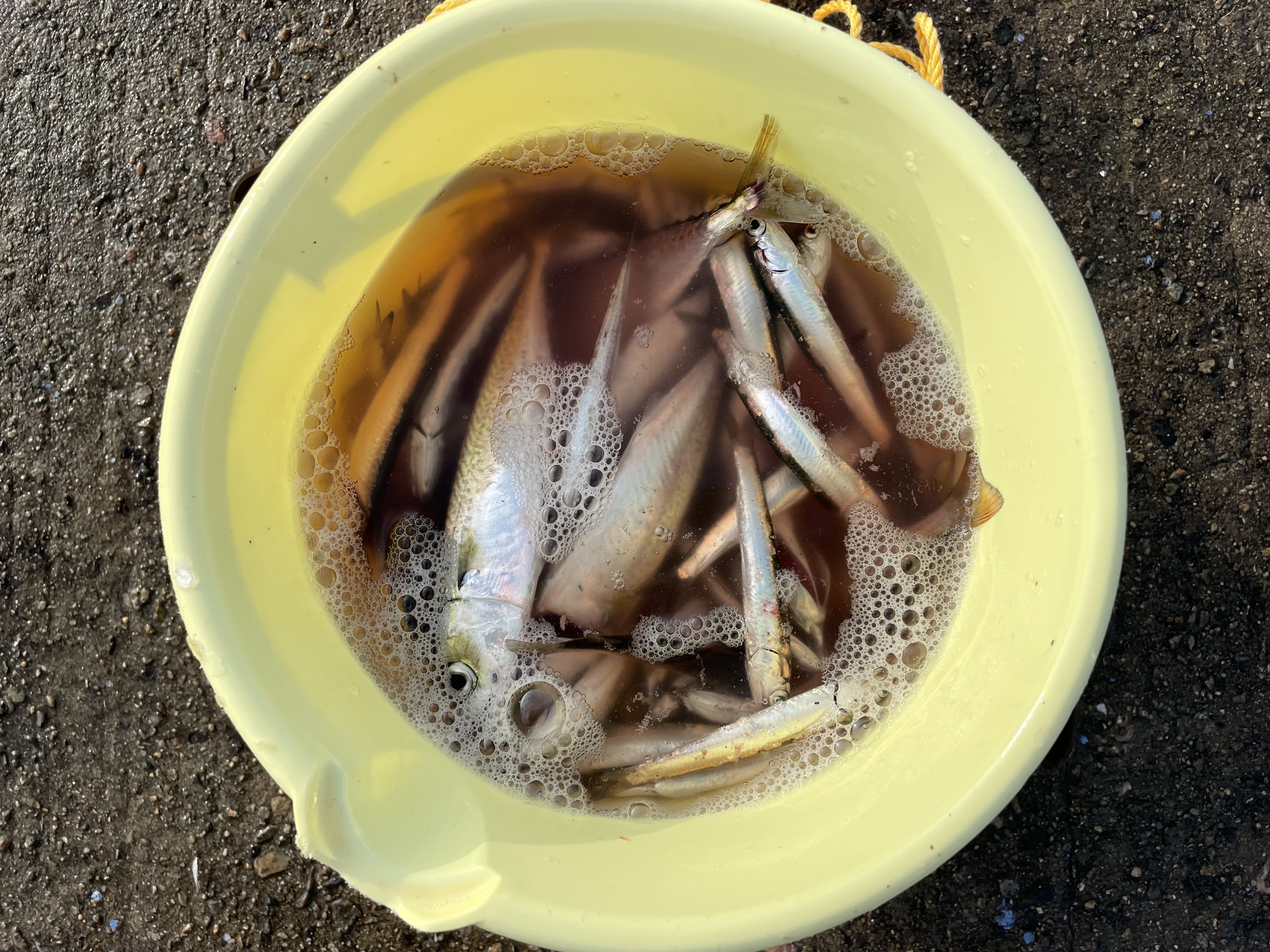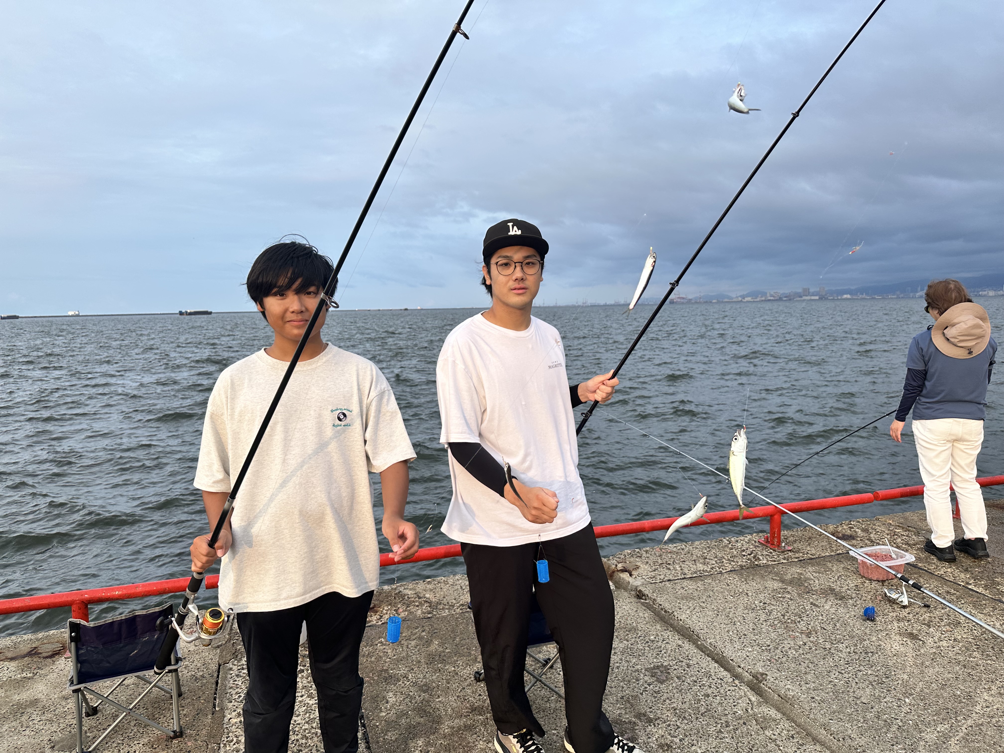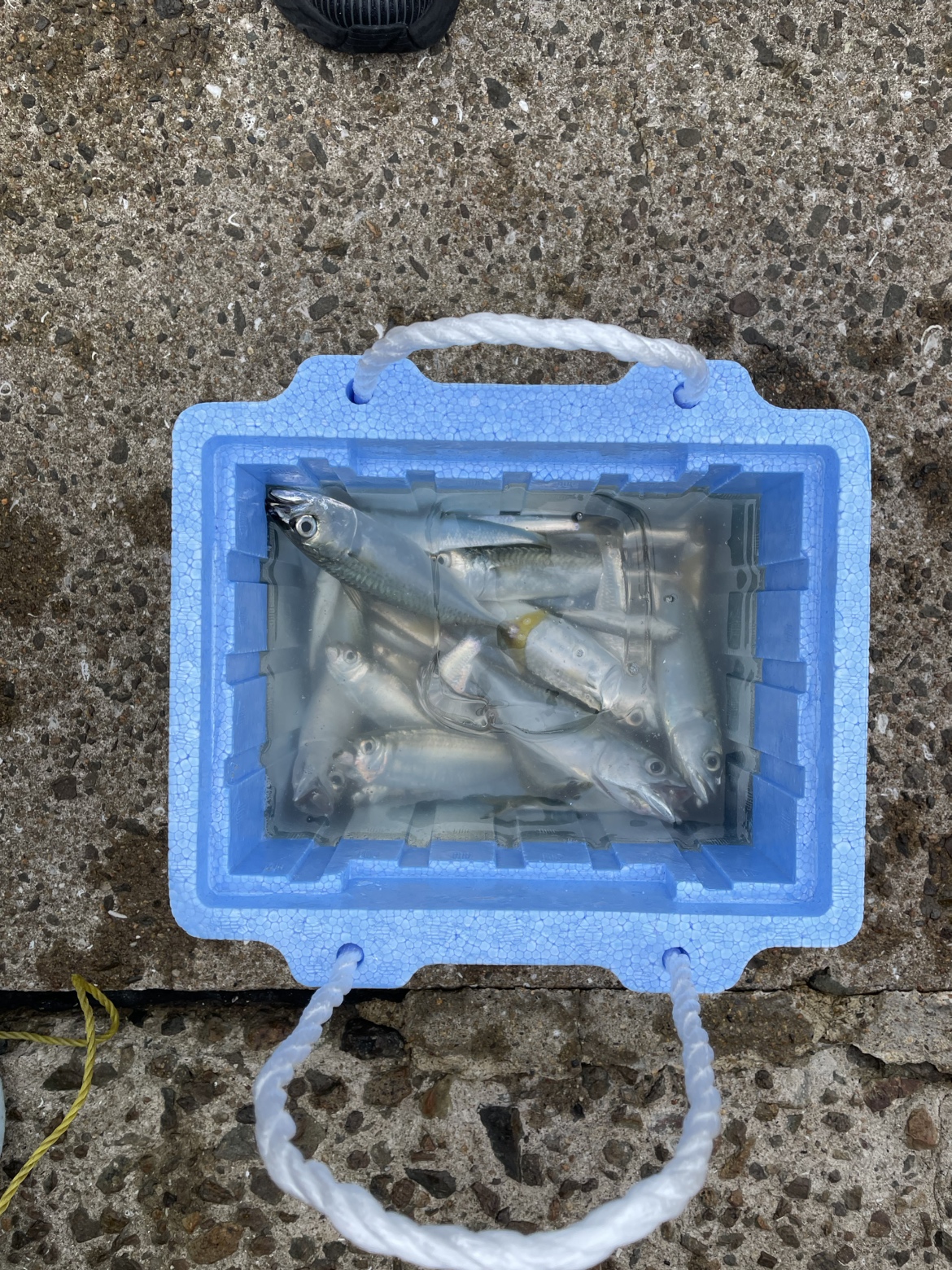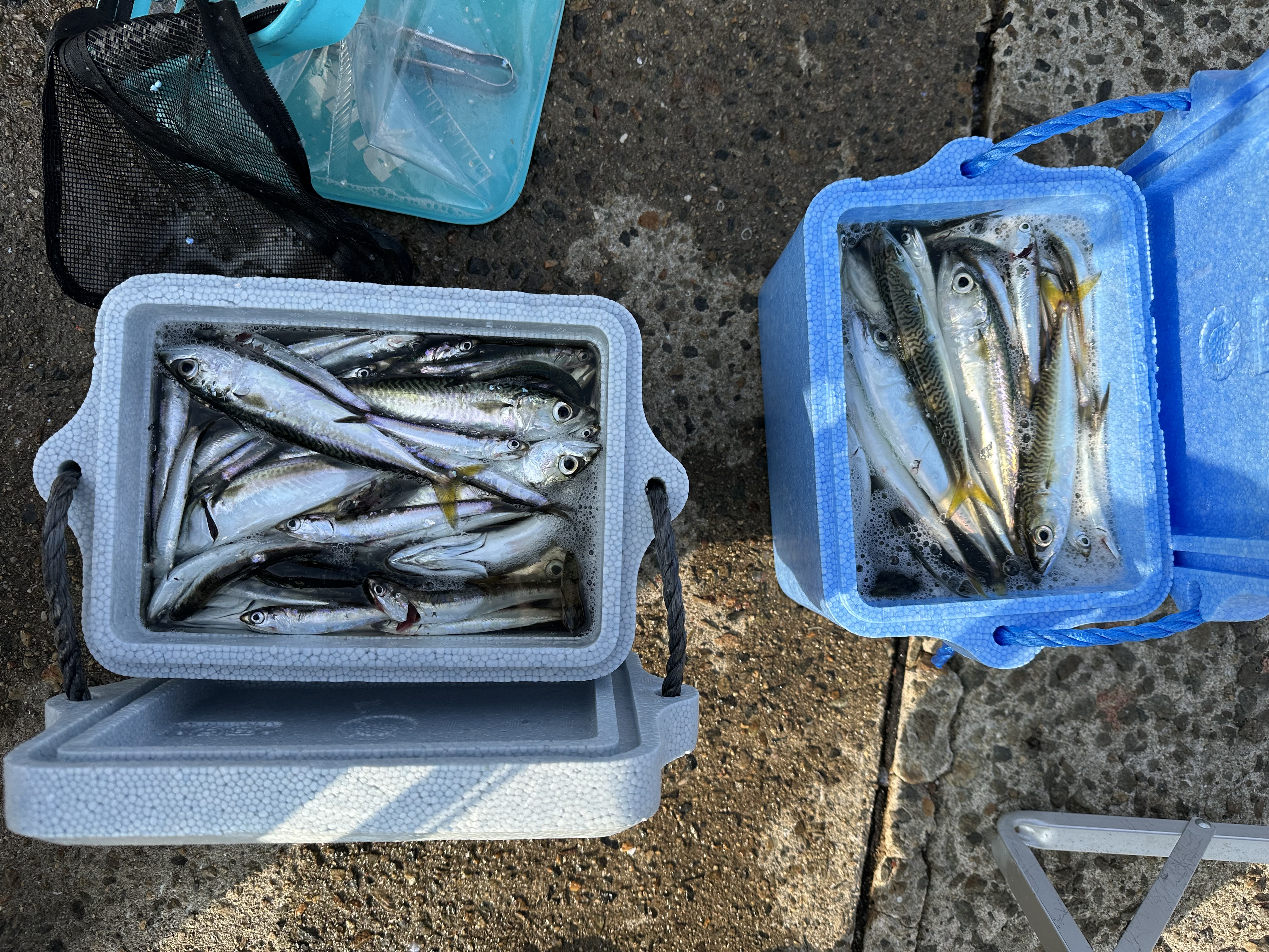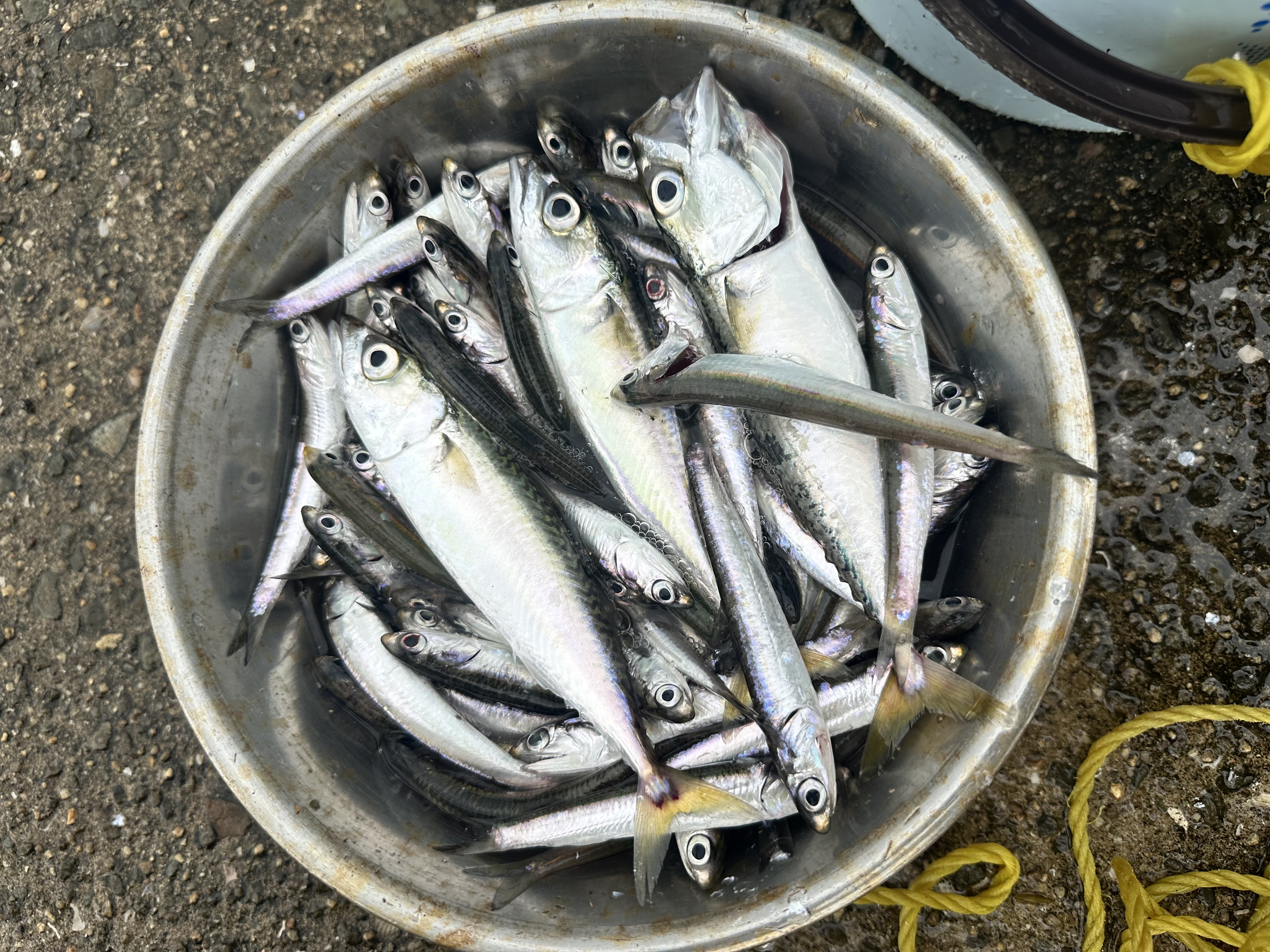 夕方からはサビキ釣りでカタクチイワシが大漁に釣れています。