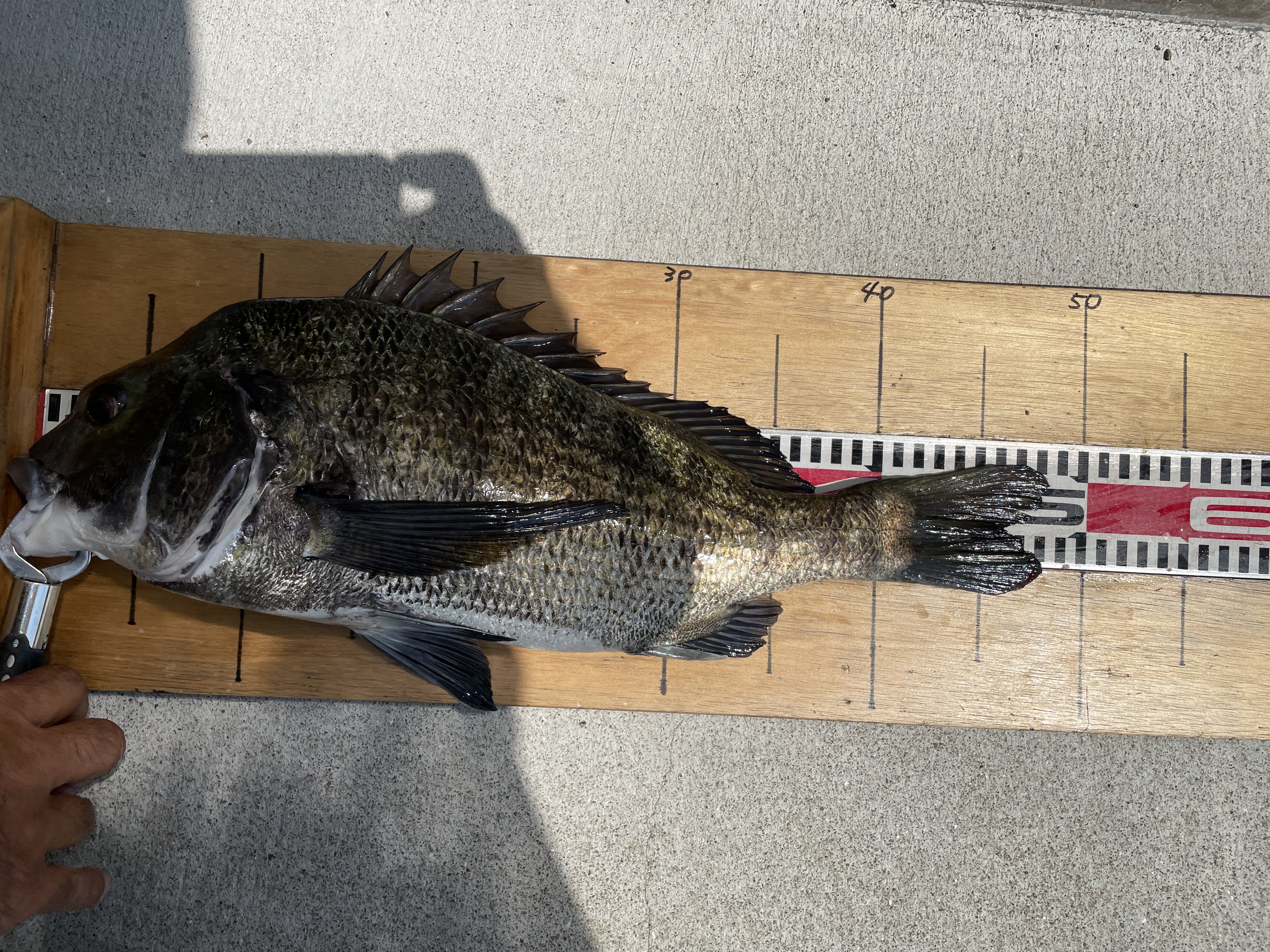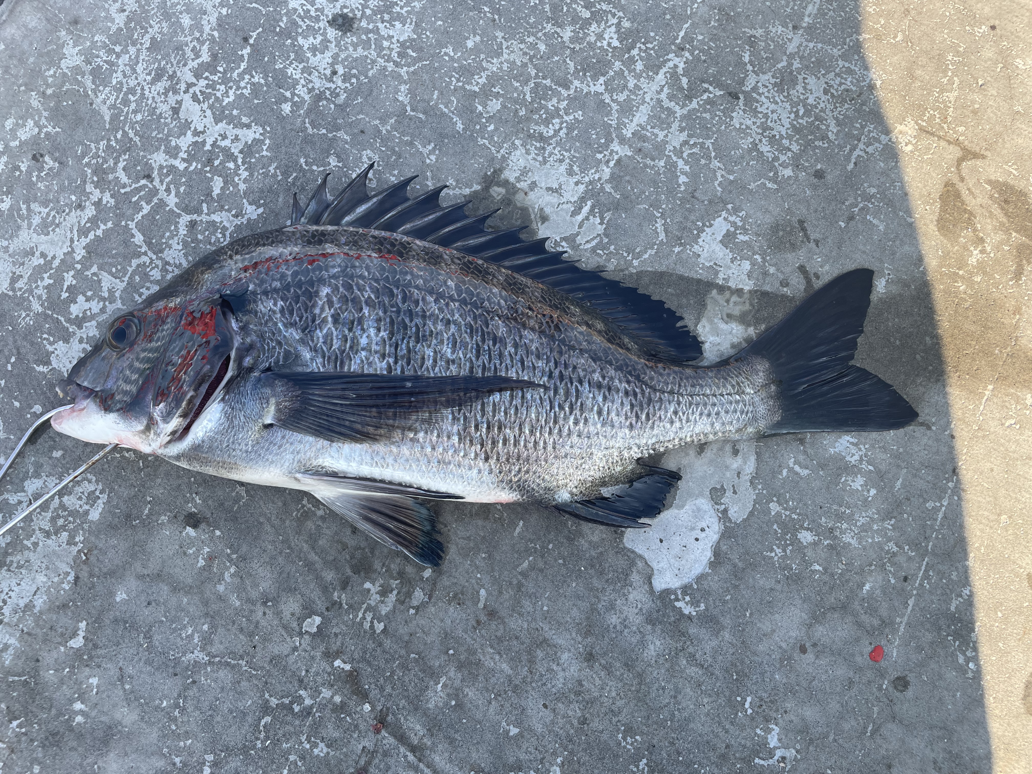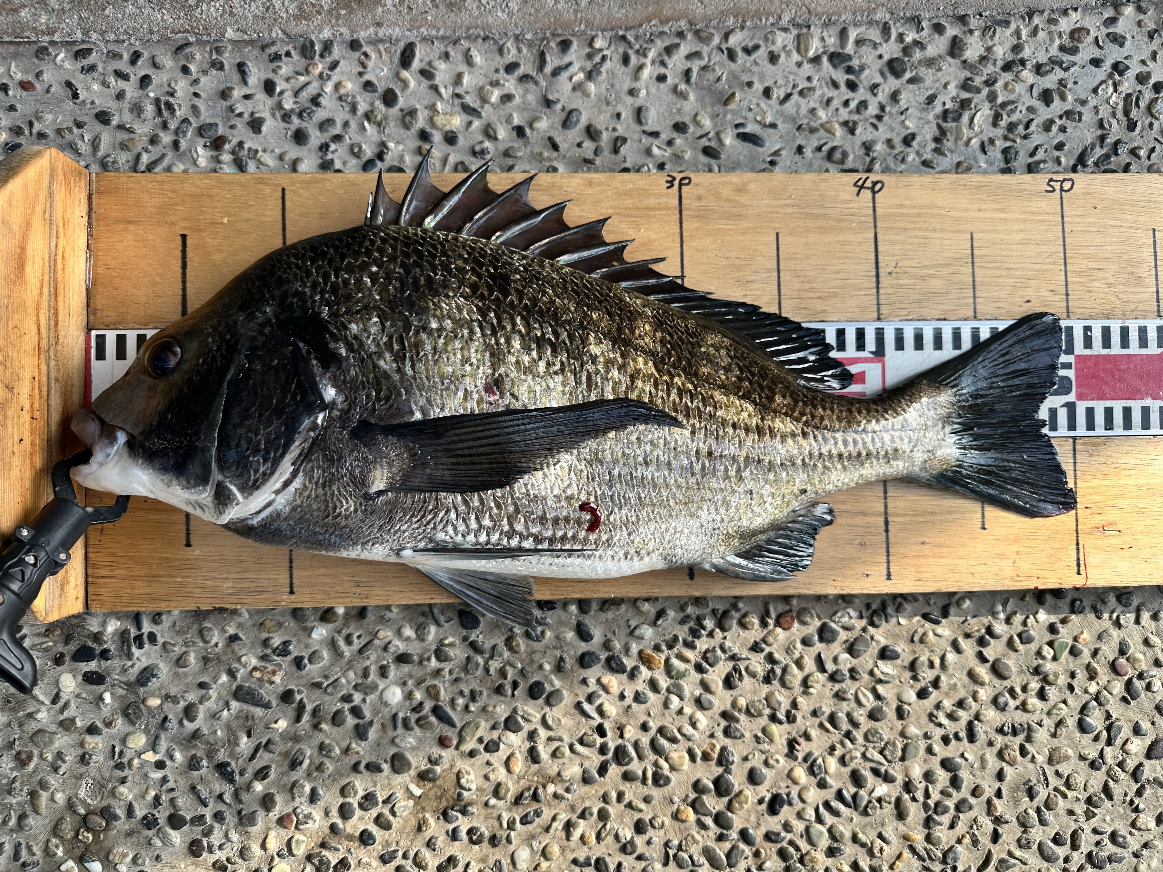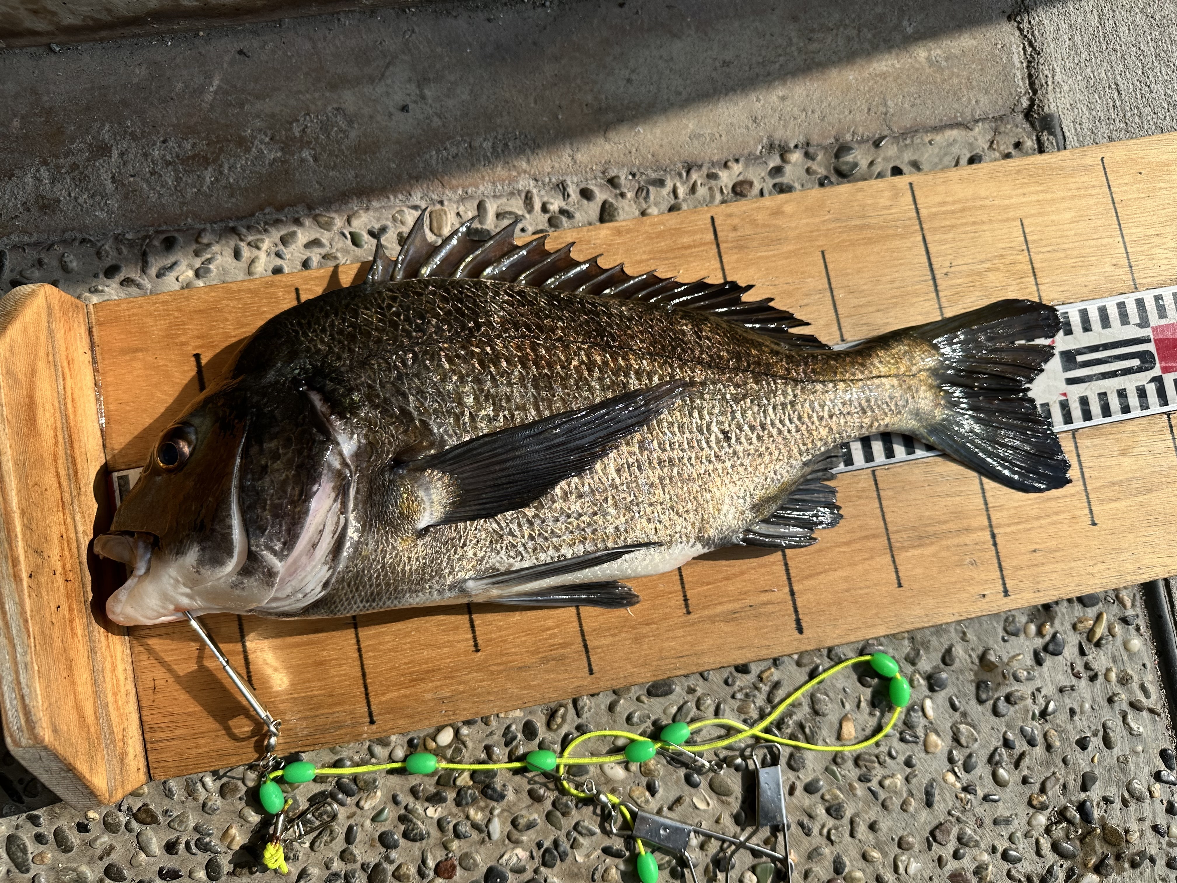 イワシを餌にズボ釣りで50㎝のチヌが釣れました。