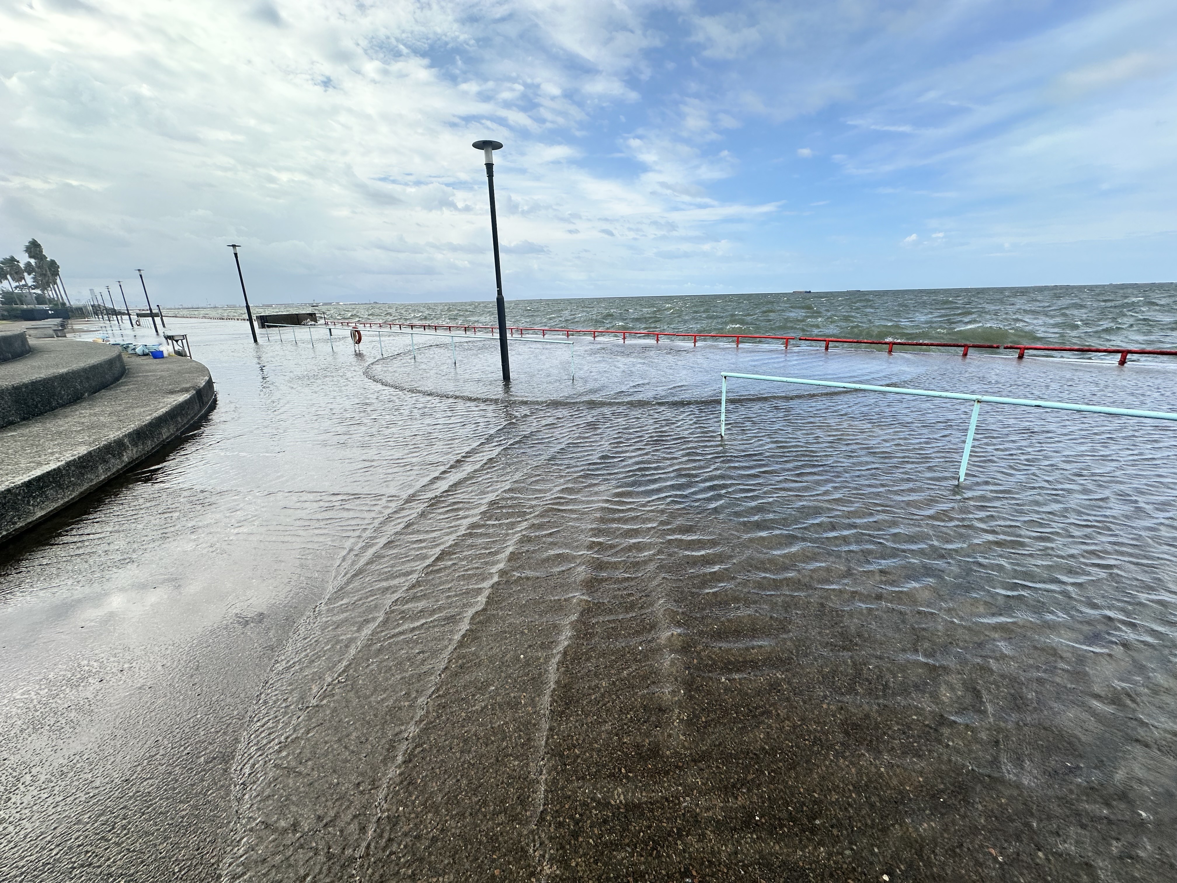 開園時、風あり。波もざわついています。