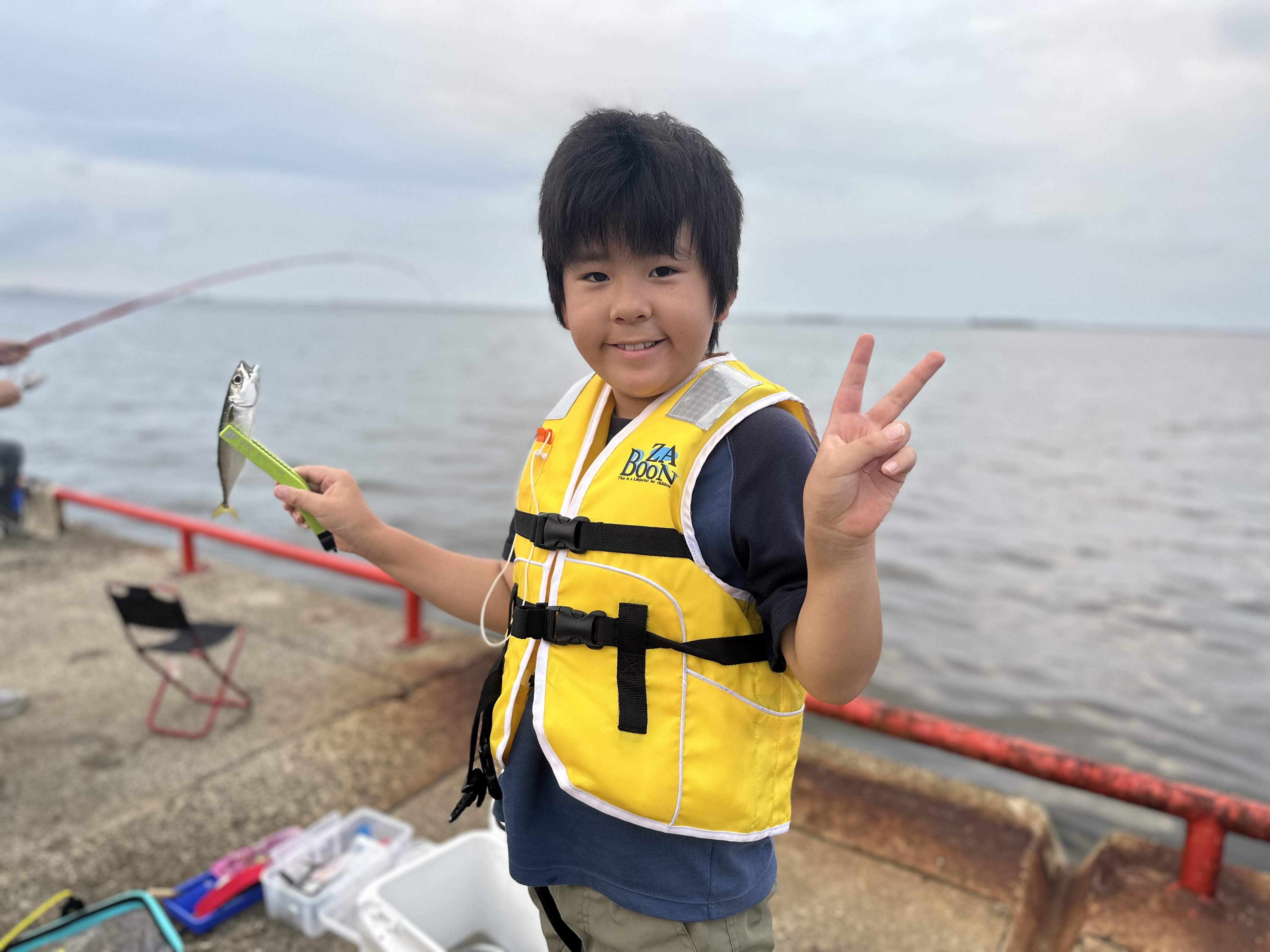 数は少ないですが、早朝にアジを釣ったお子様もいました!