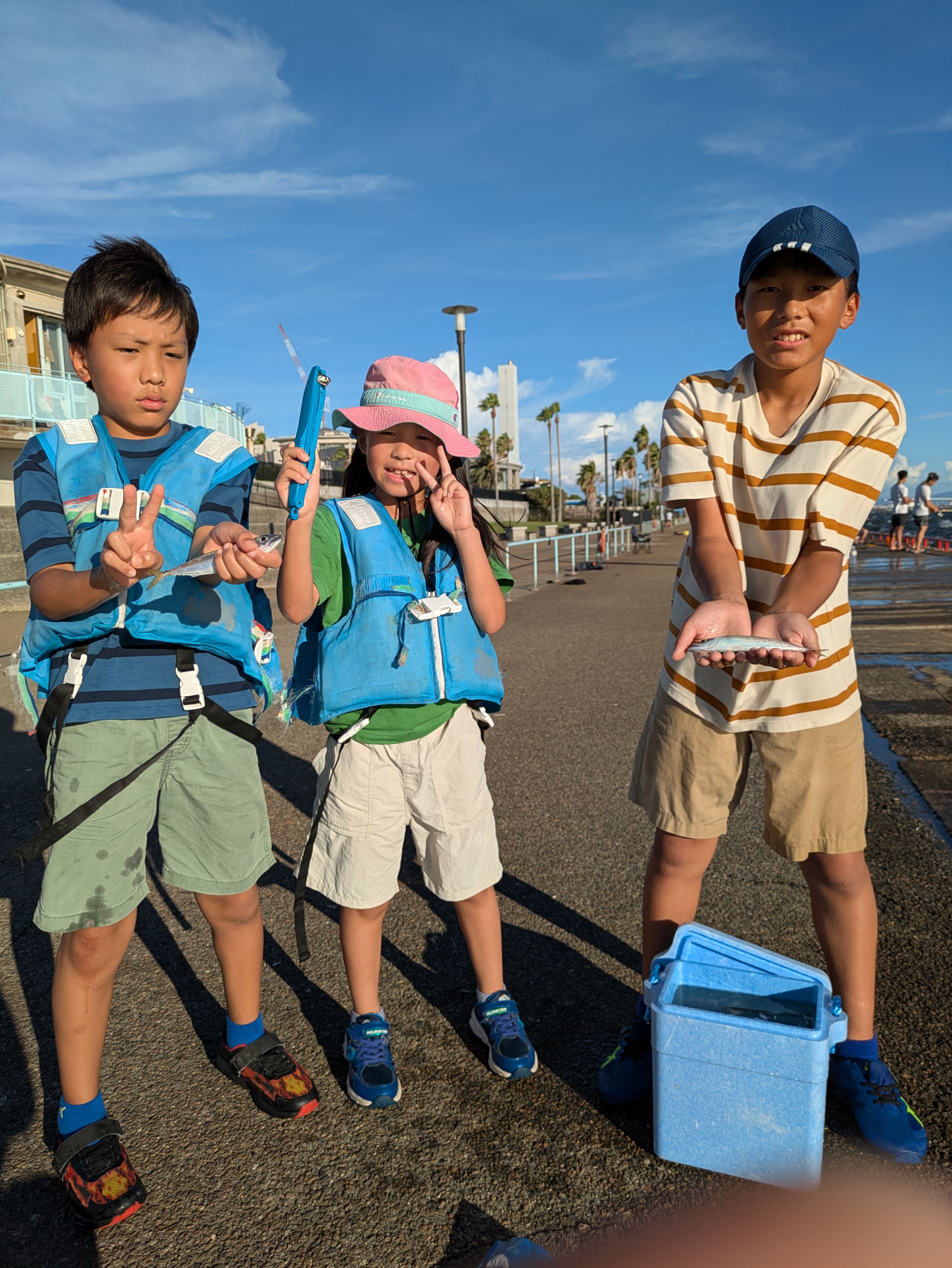 また、釣れた魚はバケツなどに長い時間入れとかずクーラーに海水と氷でしっかり冷やしてくださいね。(こどもさん、泳いでる魚観たらすぐに冷やしてあげてください)