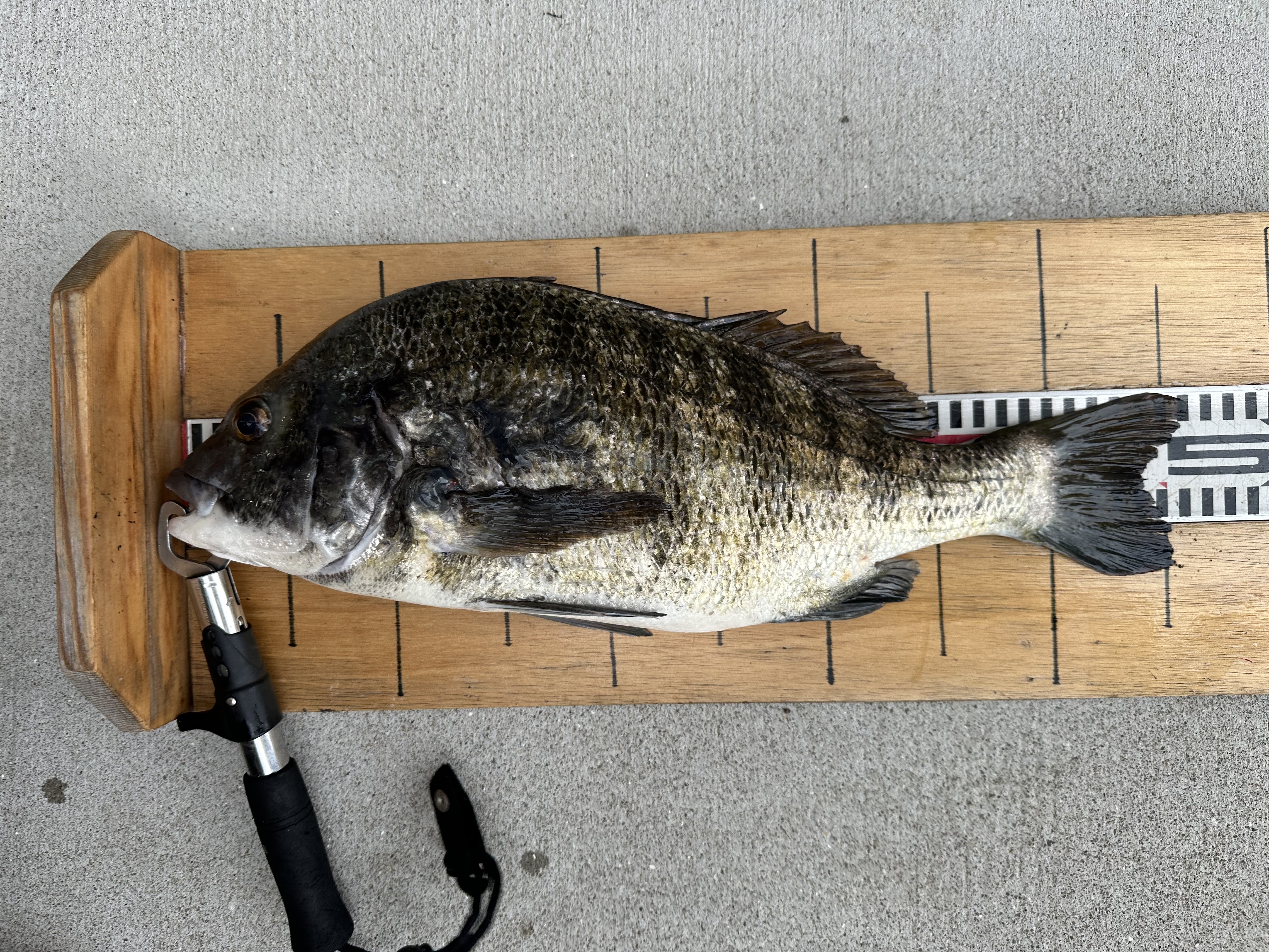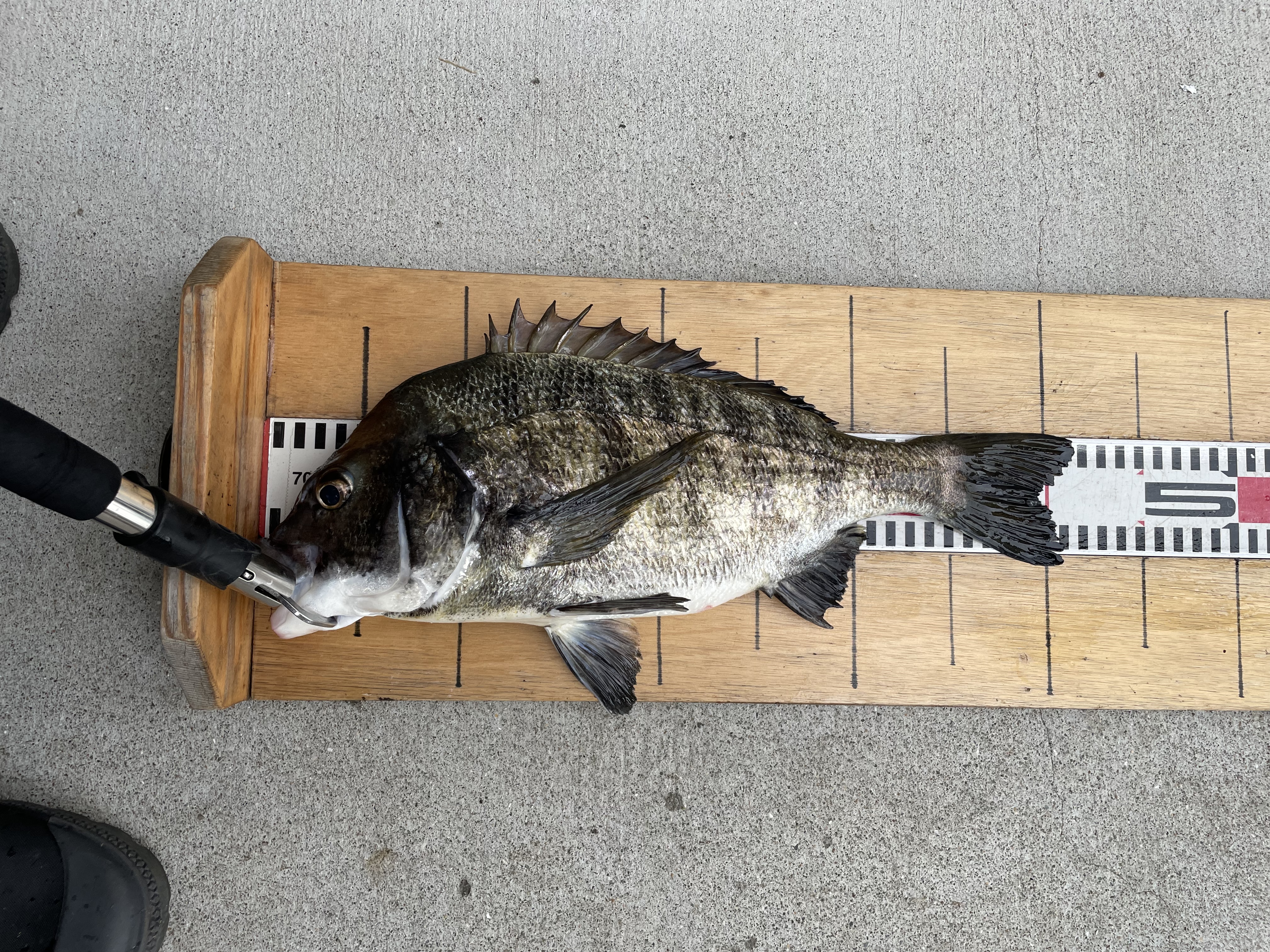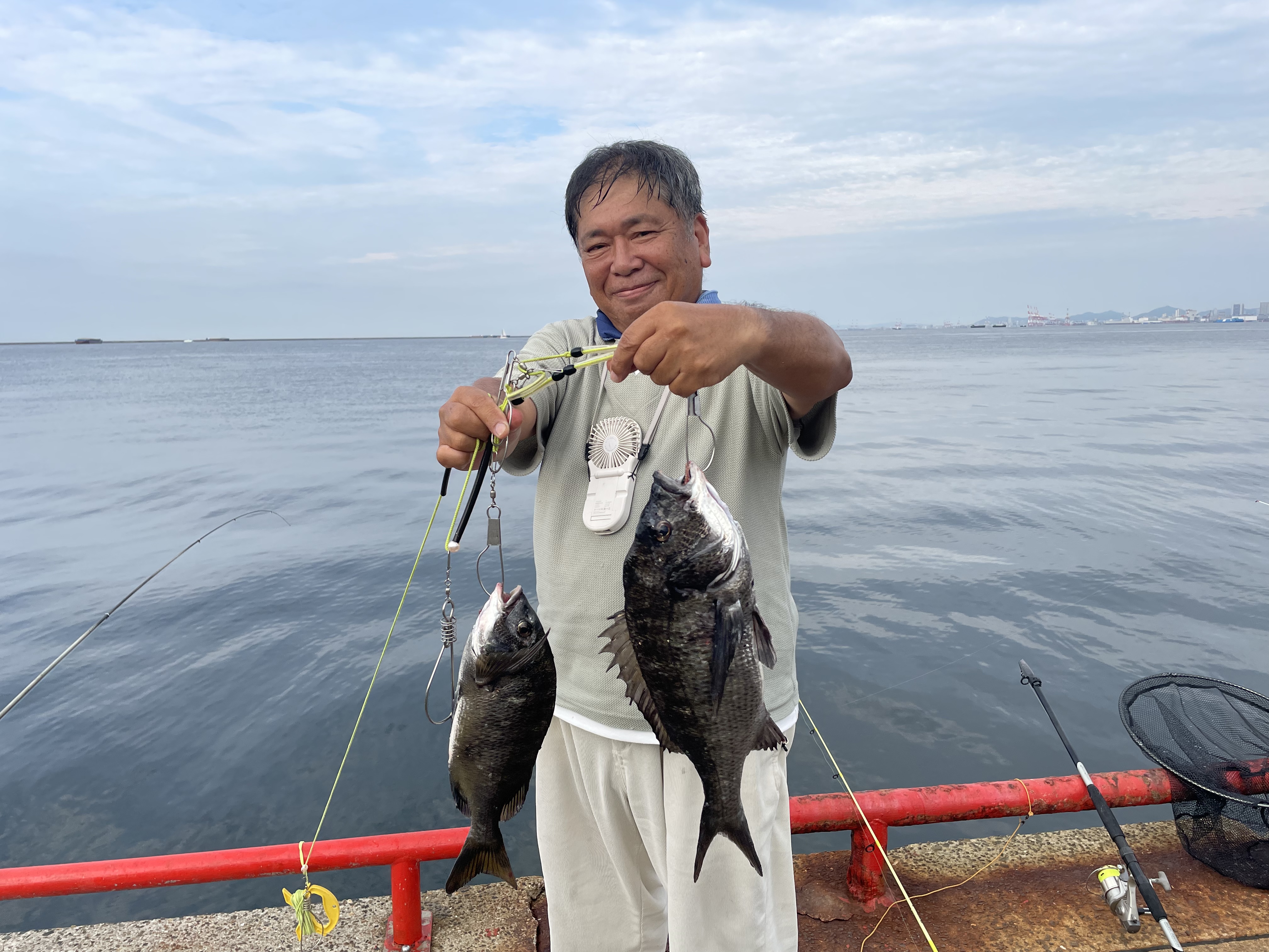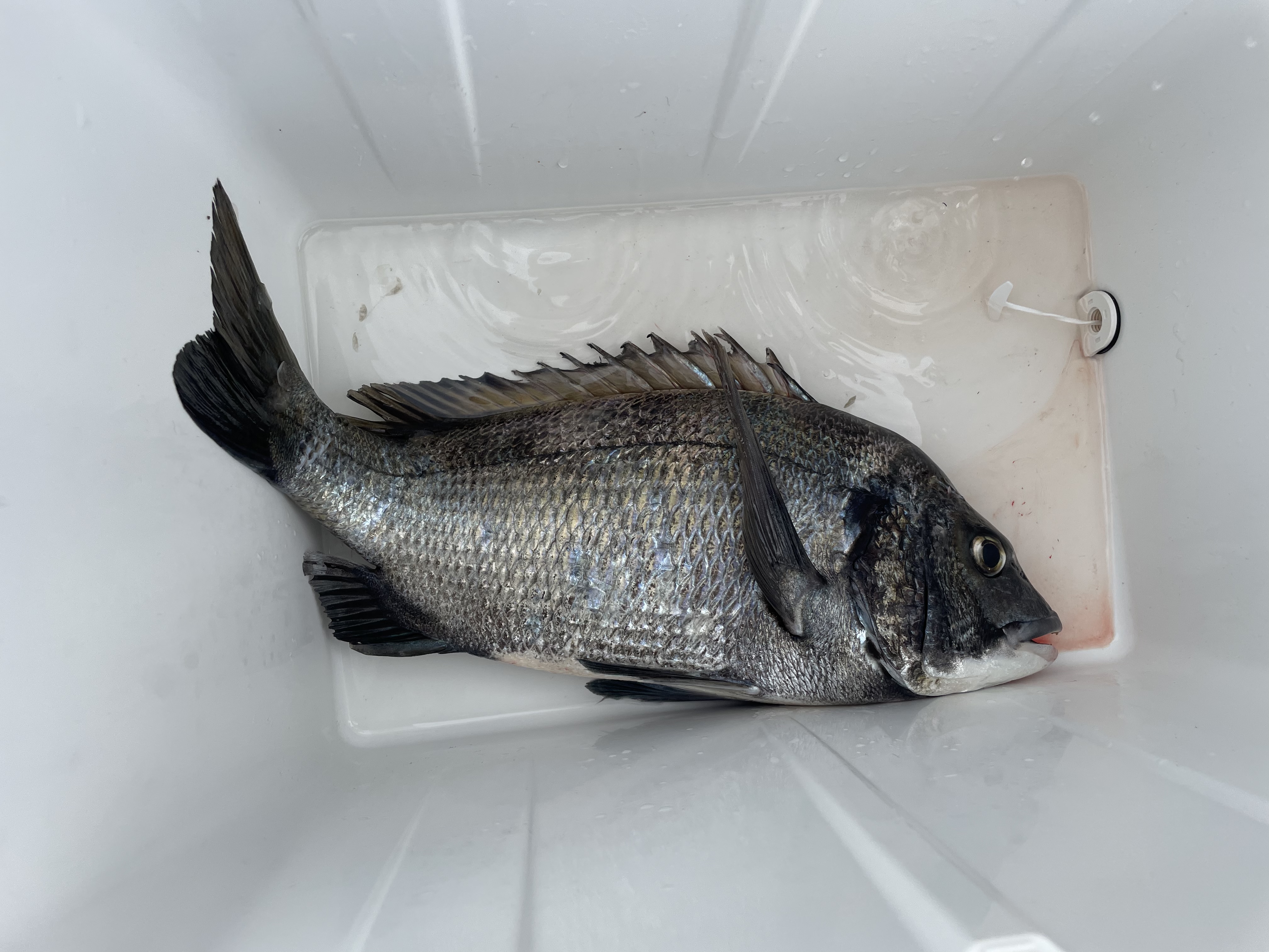 チヌは落とし込み(赤イソメ餌)で2枚あがっております。 -