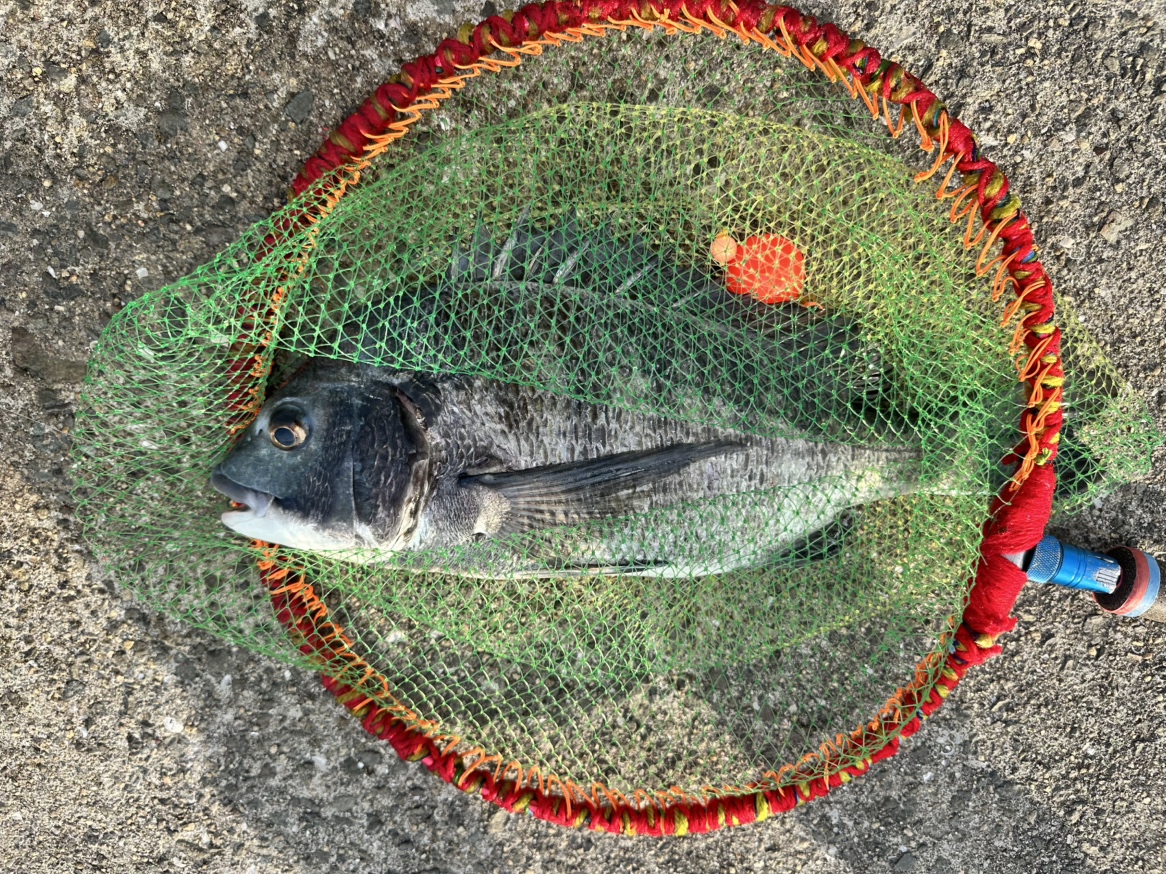 ズボ釣でサバの頭を餌にチヌが釣れていました。