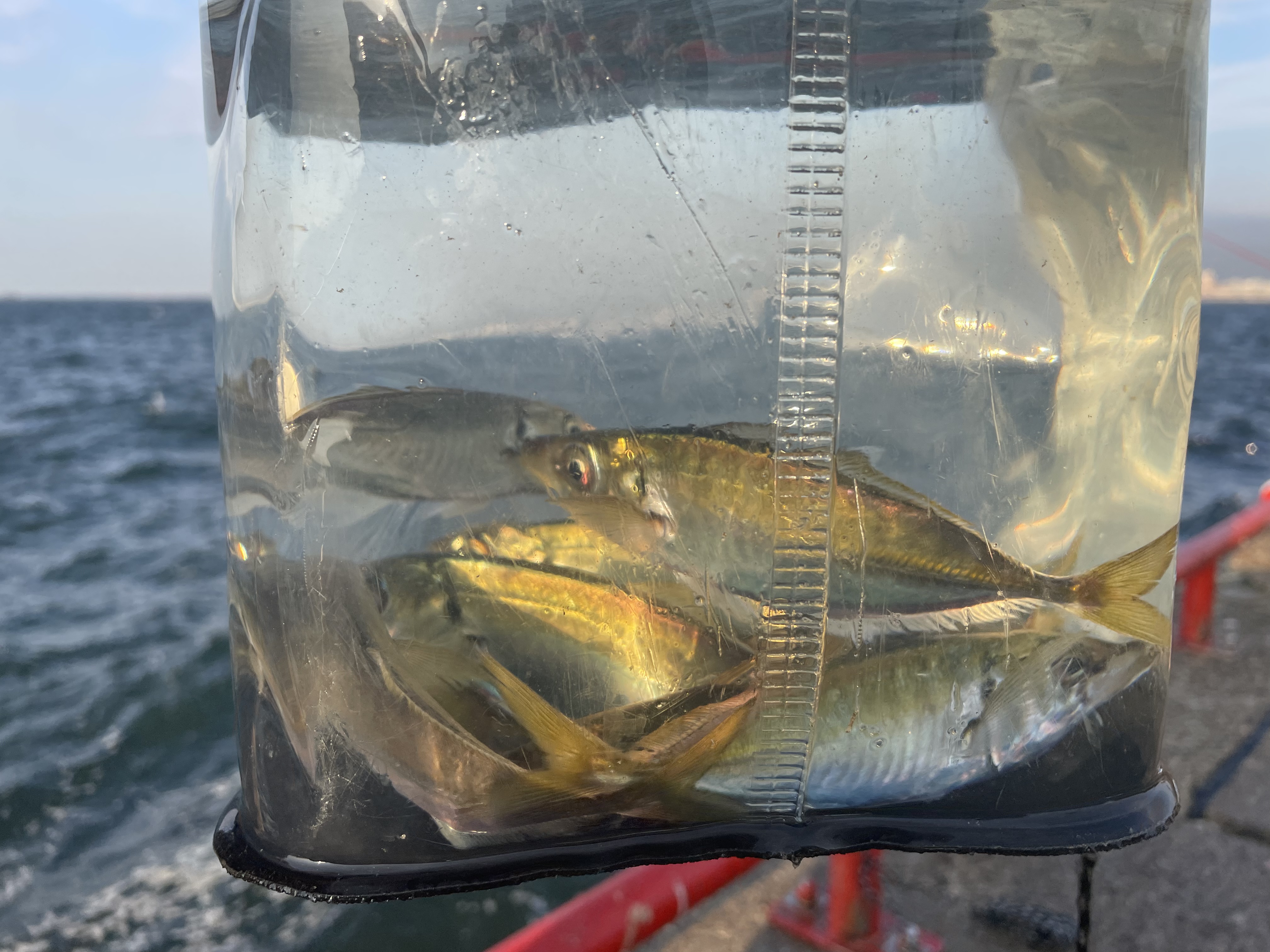17時を過ぎました。肌寒くなってきました。午後は3時過ぎから底で小アジが少し上がっていました。カタクチイワシも混じることがありました。