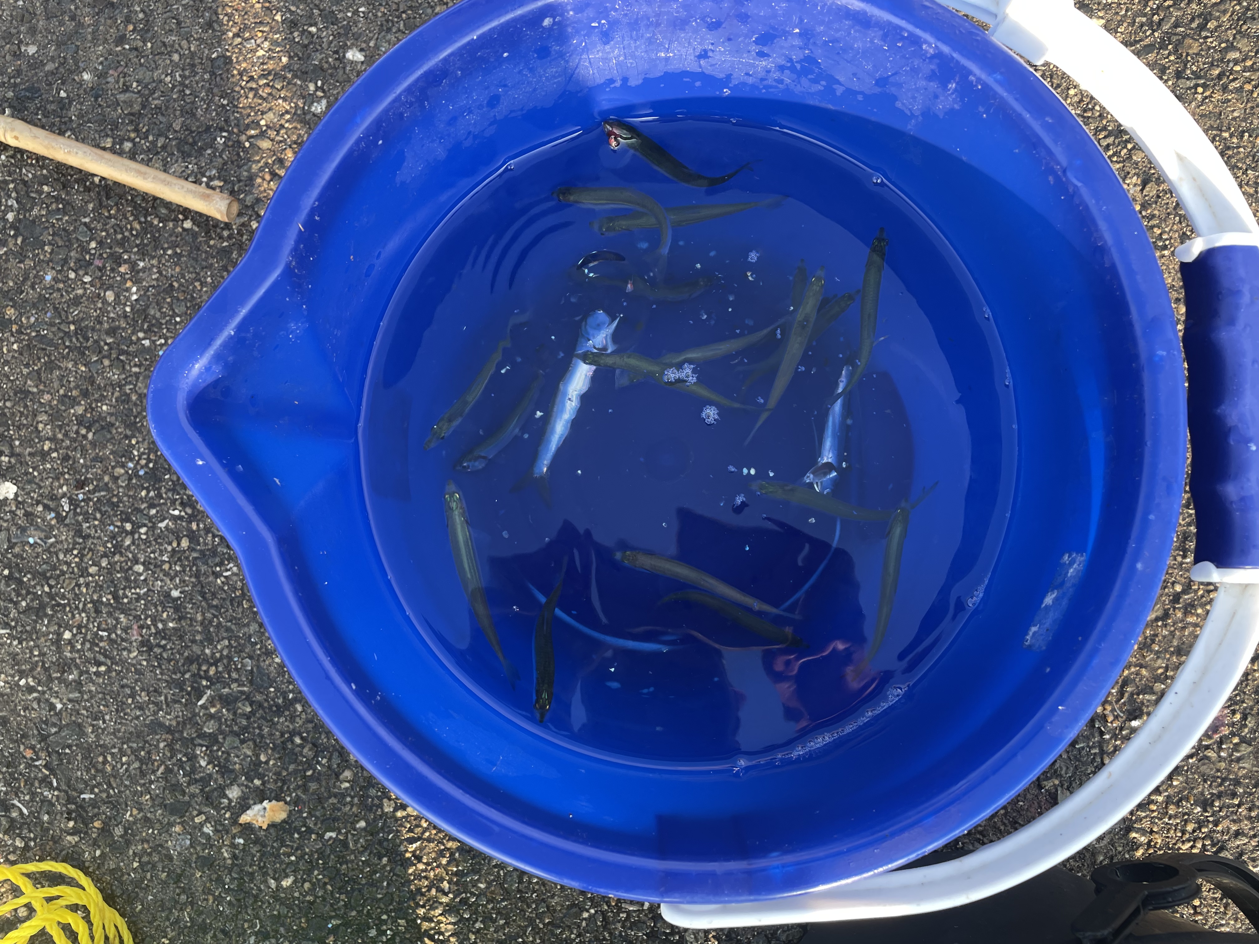 サヨリはお昼前に少し釣れ始めました。午後に期待ですね。 -