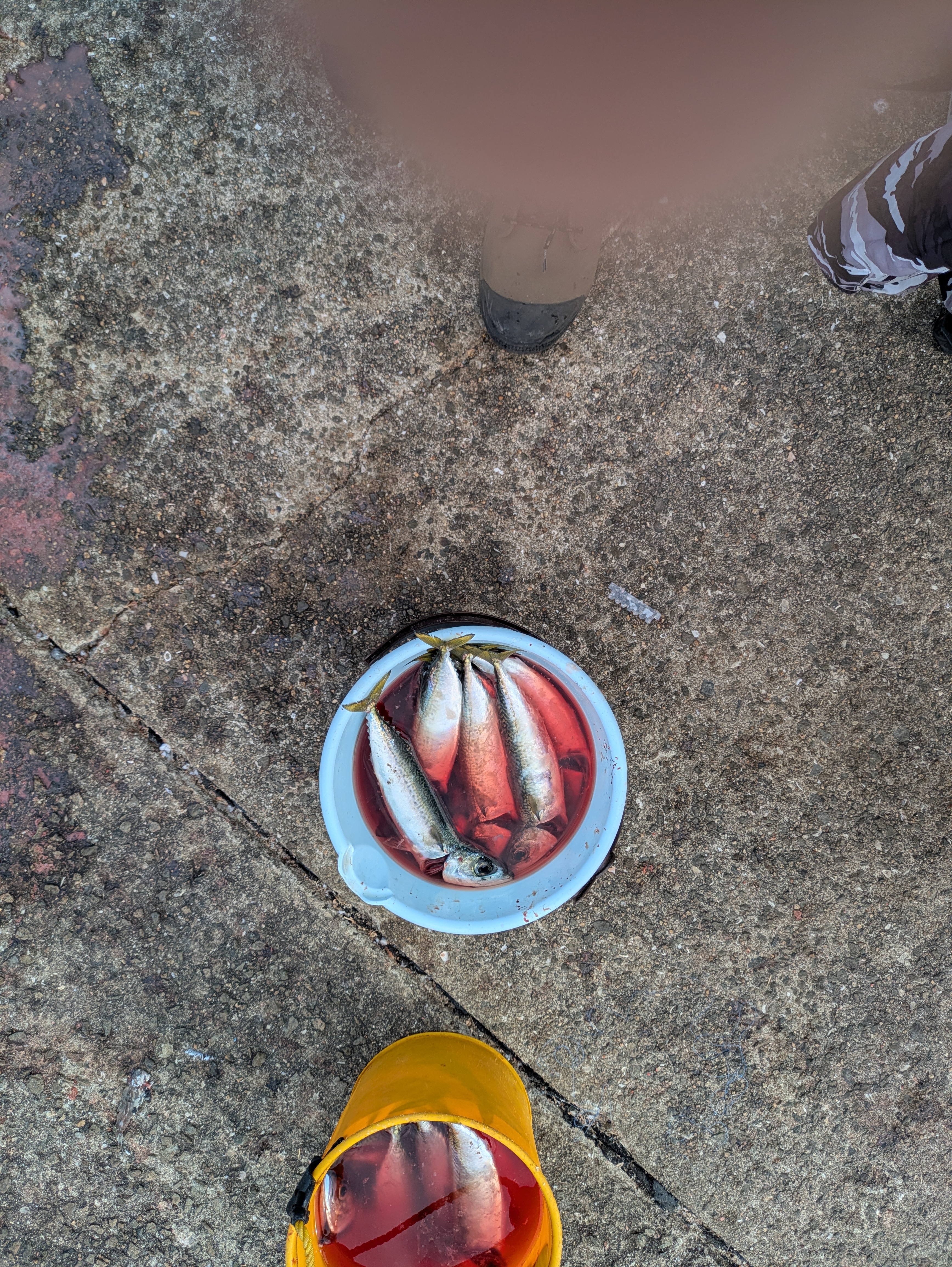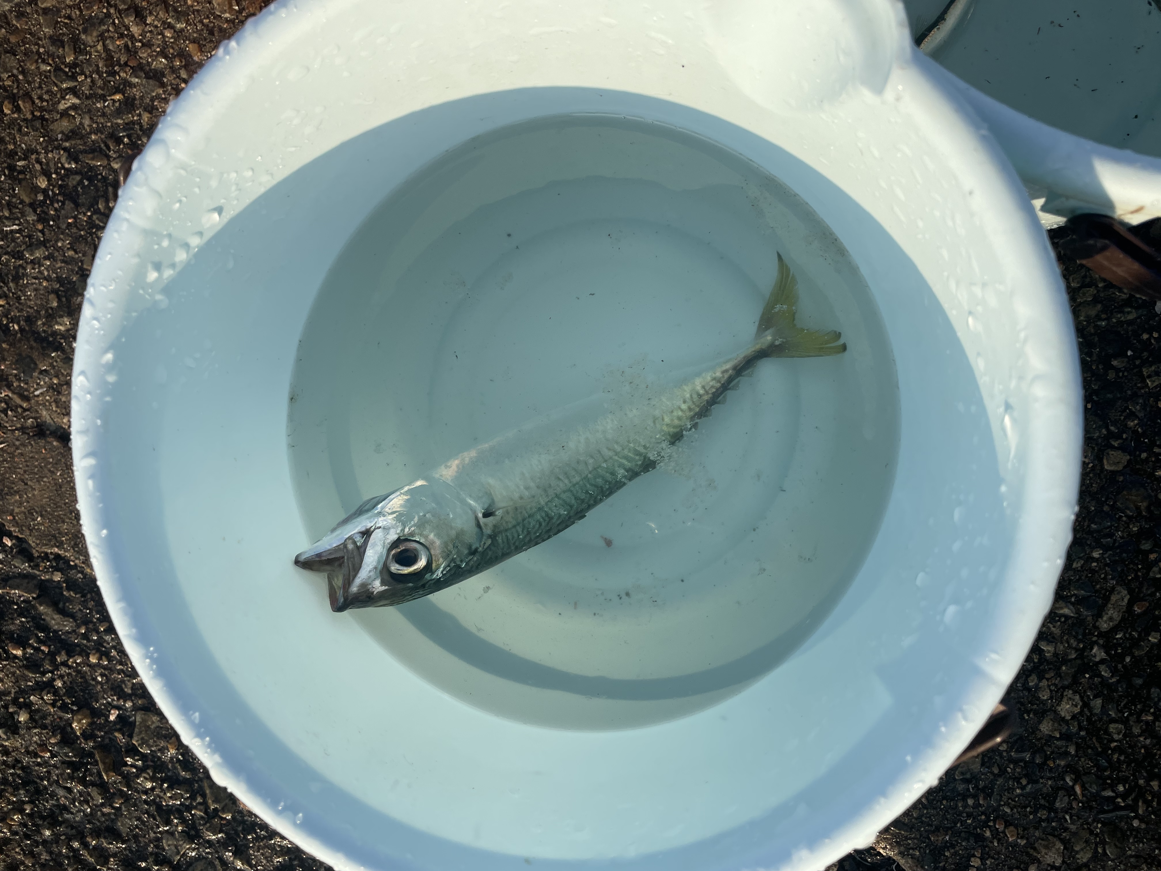 早朝にサビキでアジが釣れましてその後、カタクチイワシ、サッパがぽつりぽつりと釣れています。