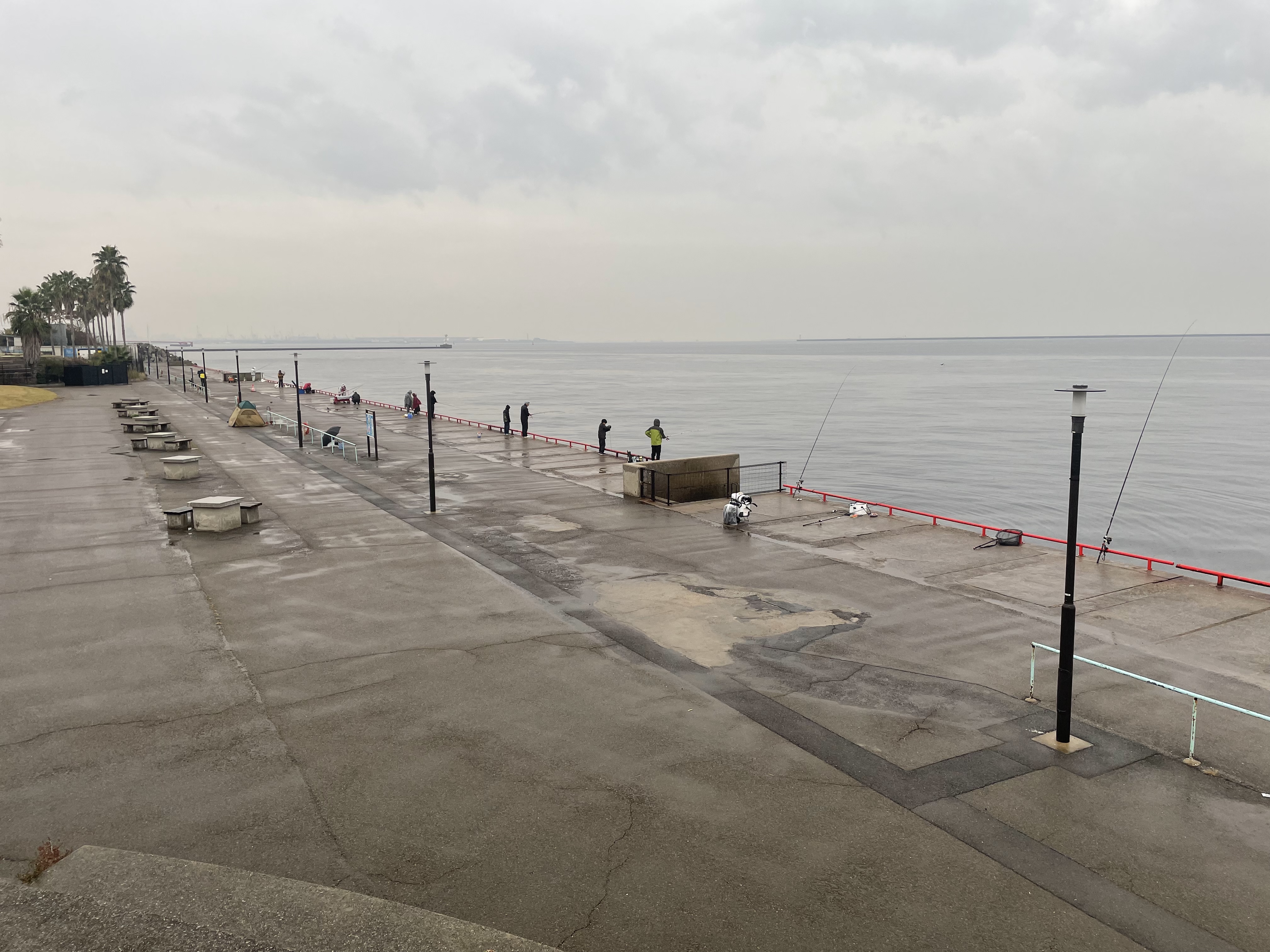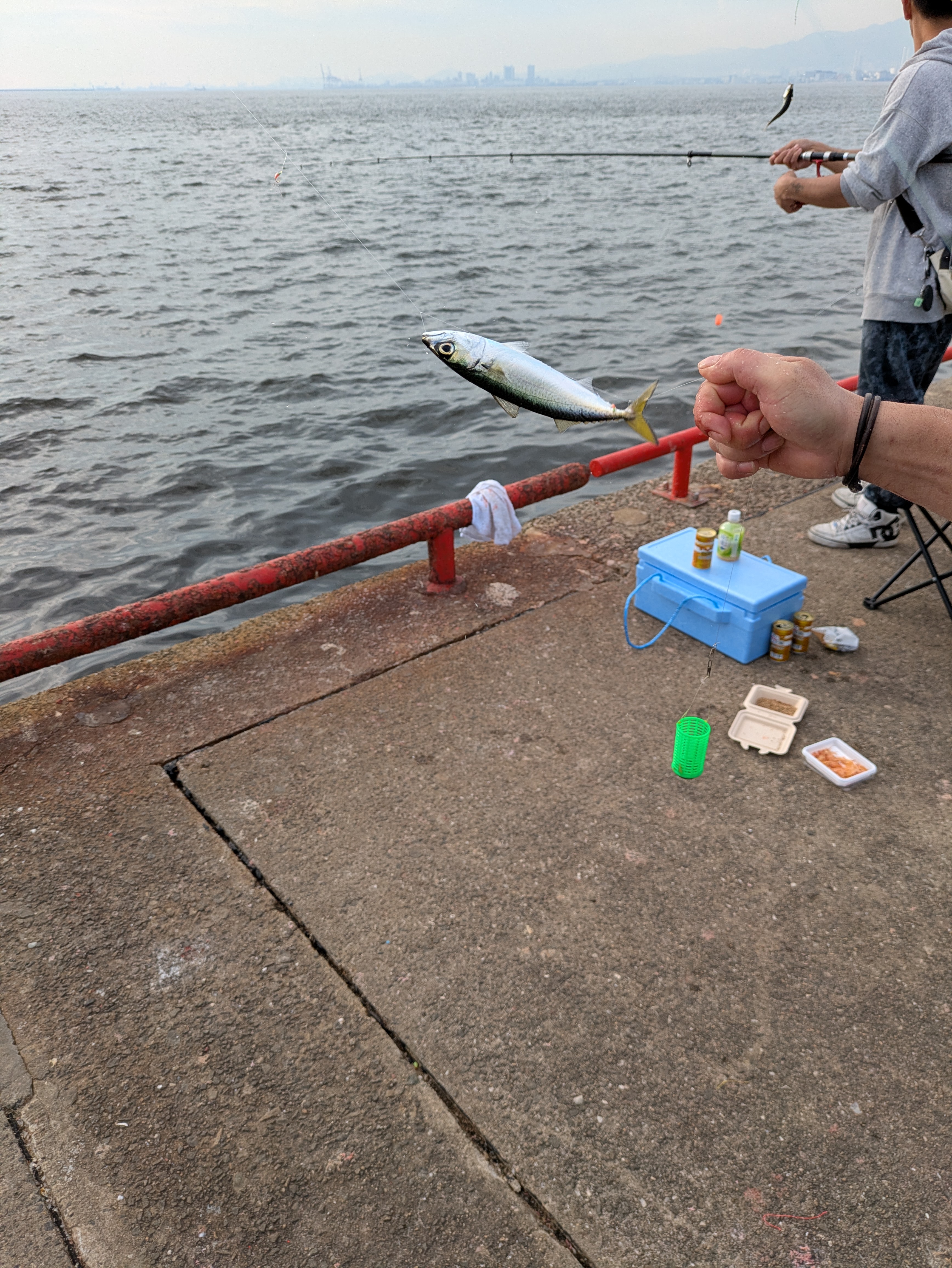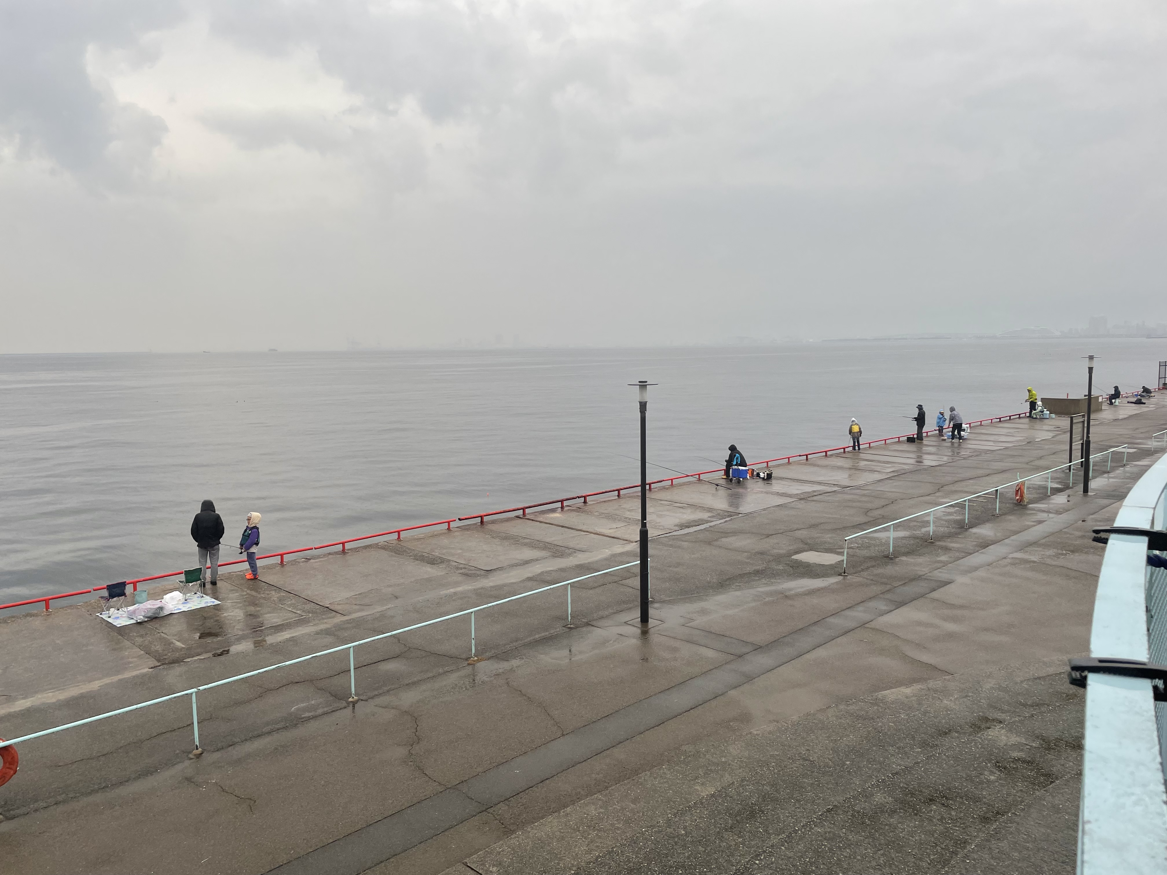 雨模様の鳴尾浜ですが、夜明け前にアジの回遊があり多少釣れましたがカタクチイワシやサッパはほとんど釣れていません。サバも姿を見られず。
